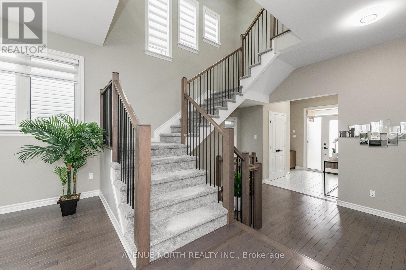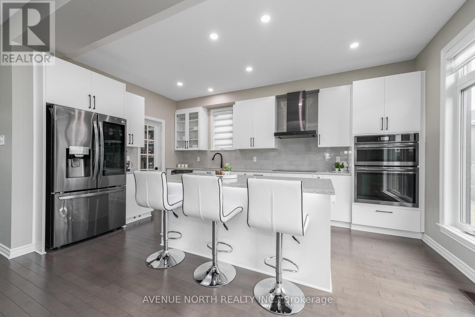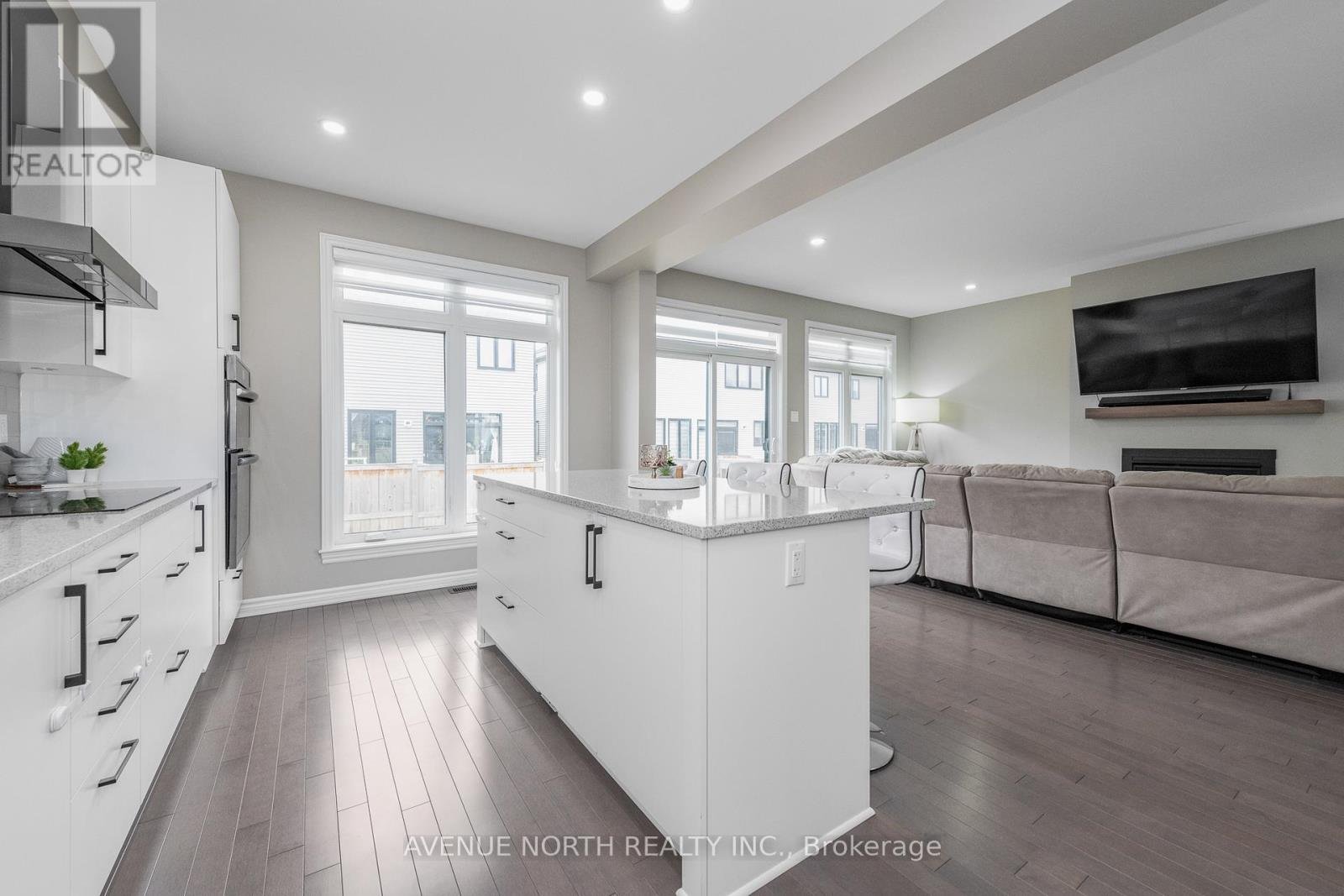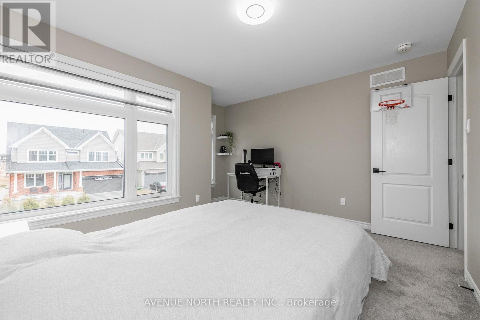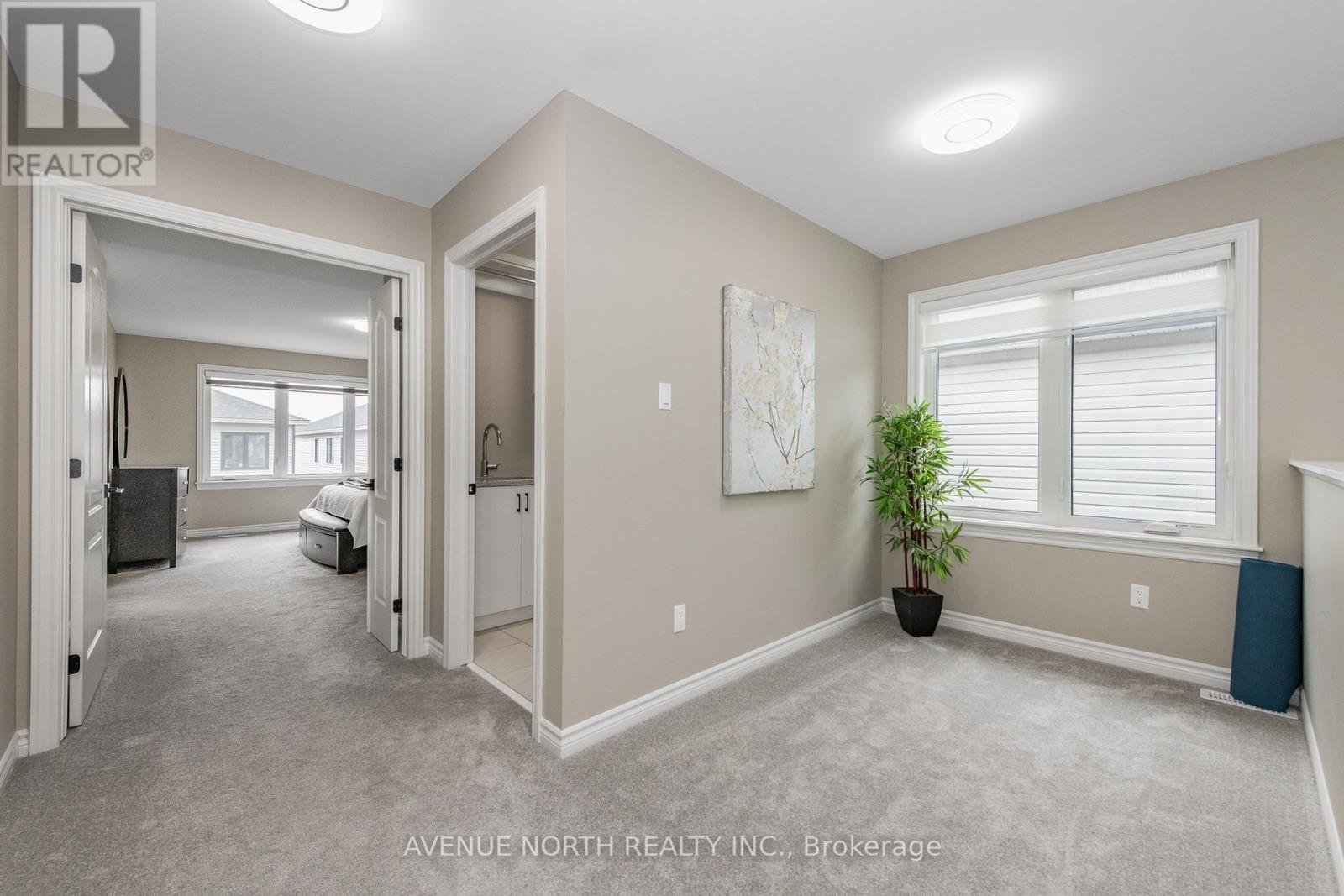 Tamarack home, 2022-built with 4 beds/4 baths and offering over 3,100 sq ft of living space (with 3 FULL baths on 2nd floor!) situated across from a park. The main level features 9' ceilings, upgraded engineered hardwood floors, an open-concept layout, and modern kitchen with quartz counters, stainless steel appliances, built-in oven & microwave, high-end cabinetry and walk-in pantry. Cozy gas fireplace in living room, central vac with automatic dustpan, and custom zebra blinds throughout. Upstairs includes 4 spacious bedrooms with upgraded carpet, including a primary suite with walk-in closet and luxurious ensuite with double sinks, soaker tub, and separate shower. A guest bedroom features its own ensuite, with 3 full bathrooms on the upper level. Convenient second-floor laundry with sink and storage. Fully finished basement offers a large rec room, soft carpeting, and ample storage. Located across from a park and near top-rated schools, convenient shopping, restaurants and community amenities, with easy access to major routes for commuting.