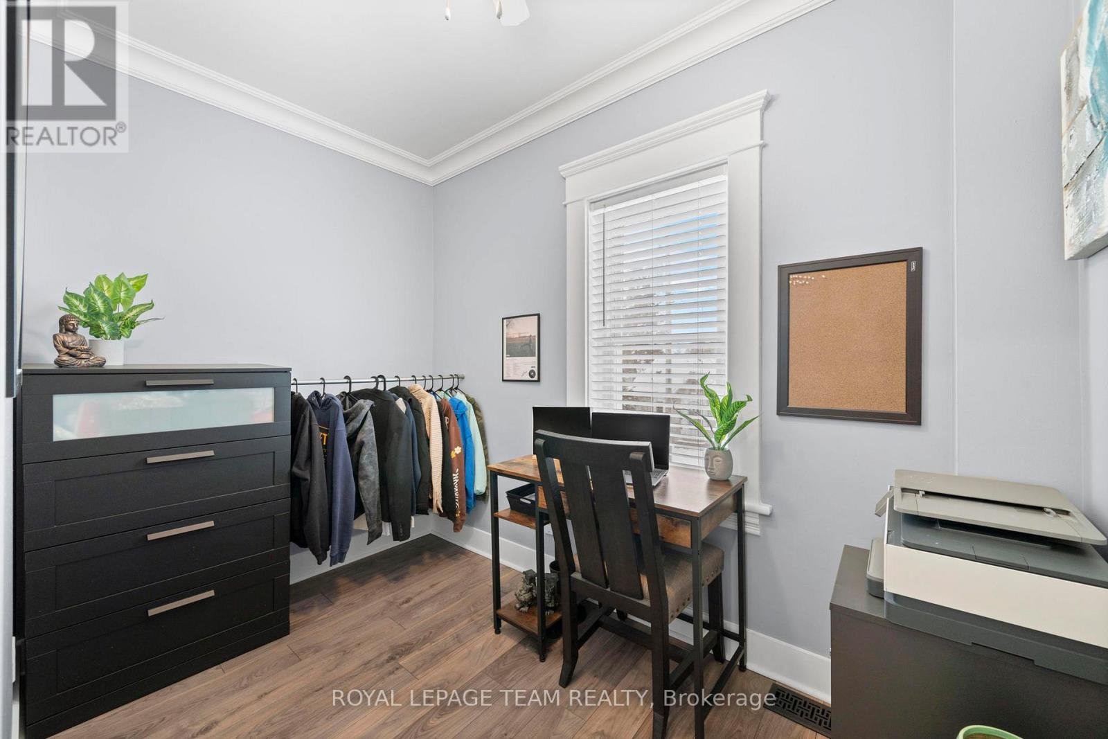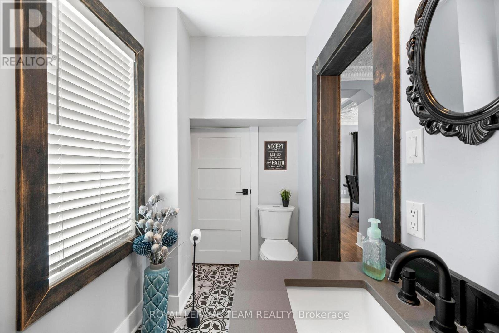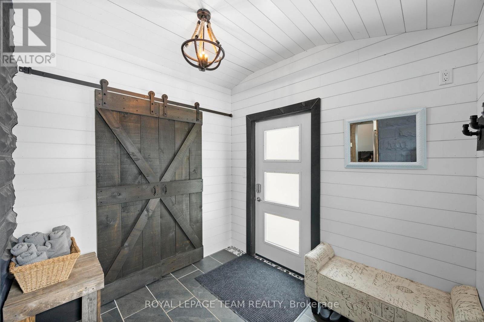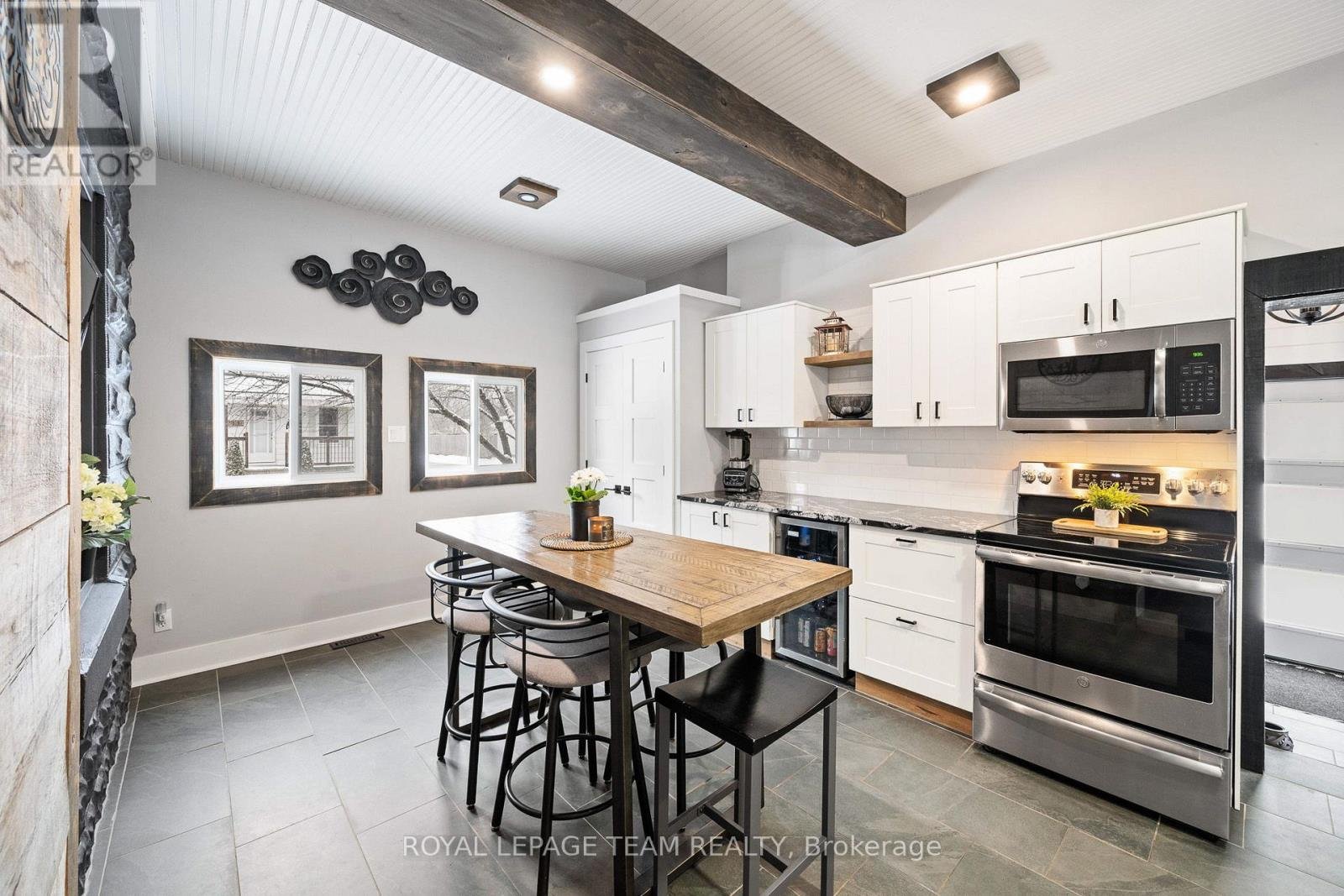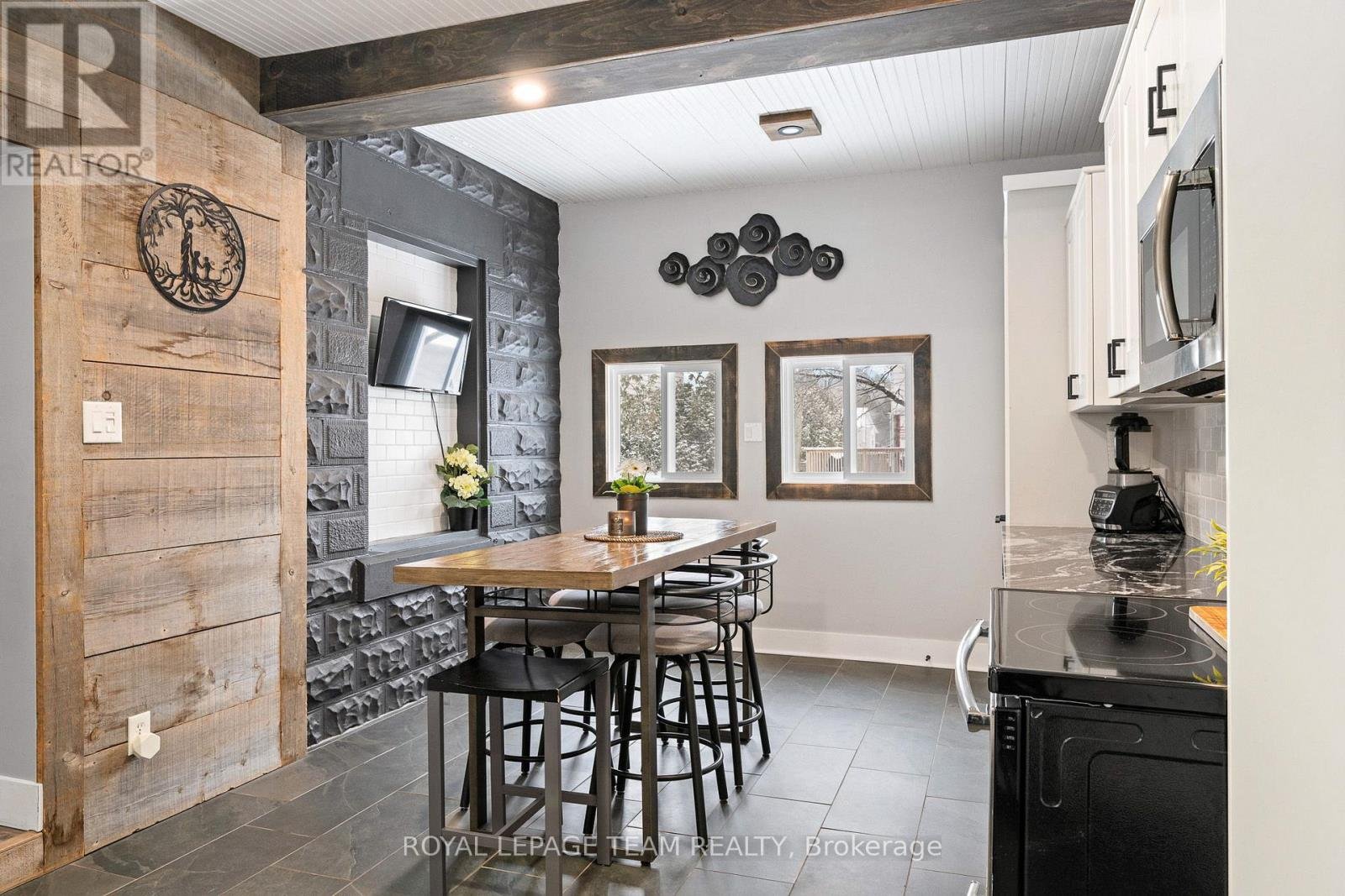 Beautifully renovated home blending modern upgrades with timeless character, ideally situated on a desirable corner lot. Extensive improvements since 2020 include all new flooring throughout, fresh neutral paint, updated lighting, and widened interior doorways with modern 4-panel doors and hardware. The main floor features a fully redesigned kitchen with GE stainless steel appliances, granite countertops, white shaker cabinetry, subway tile backsplash, LED pot lighting, and a 32" farmhouse sink. Original 1920 tin ceilings and crown moulding have been refinished in crisp white, adding charm and character. A convenient mudroom addition off the kitchen offers additional storage and access to the backyard, along with a stylish black steel entry door. Upstairs, the second floor includes a renovated full bathroom with new plumbing, a large porcelain tub with full-height tile surround, new vanity and toilet, plus a custom barn board accent wall. The primary bedroom features a newly created walk-in closet. The third floor offers additional living space with updated laminate flooring. Step outside to enjoy a fully fenced yard with double gate access from the street, perfect for trailers, equipment, or added convenience. A standout feature is the authentic original barn with loft, ideal for a workshop, hobby space, or at-home business setup. Additional updates include armour stone front steps, refinished staircases on all three levels, interior barn doors, updated half bath with full-size stackable laundry and new mechanicals including furnace (2024), hot water tank (2020, gas), air conditioning (2020) and sand point well (2025). Windows were previously updated (approx. 2013). Located within walking distance to the public school, post office, and general store, and just a 2-minute drive to the grocery store, this home offers the perfect blend of small-town convenience and modern living.All measurements as per Iguide Floorplan. Buyer to confirm all room sizes.