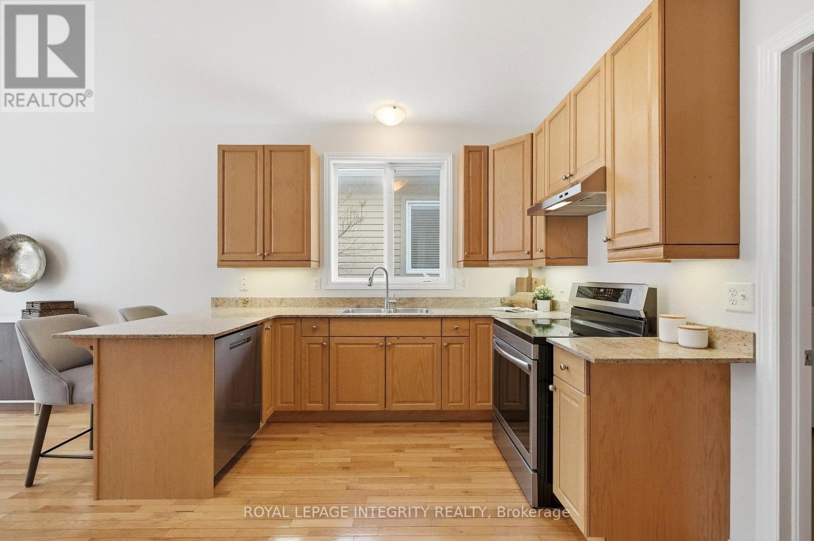 This updated bungalow offers 2+2 bedrooms, 2+1 full bathrooms, and 9 ft ceilings in a sought after Stittsville neighbourhood. The bright, open concept living and dining areas feature hardwood flooring, a gas fireplace, and whole home freshly painted (2026). The well appointed kitchen includes ample cabinetry and new appliances (2026), with direct access to the laundry/mudroom and double car garage. The partially finished basement adds two oversized bedrooms and generous storage space. The backyard features a large interlock patio, gazebo, and gas BBQ hookup. Recent upgrades within the past five years include the roof, furnace with HEPA filter, air conditioning, hot water tank, and all major appliances (2026). Ideally located near parks, public transit, the Trans Canada Trail, Cardel Rec Centre, and nearby shops, restaurants, and services.