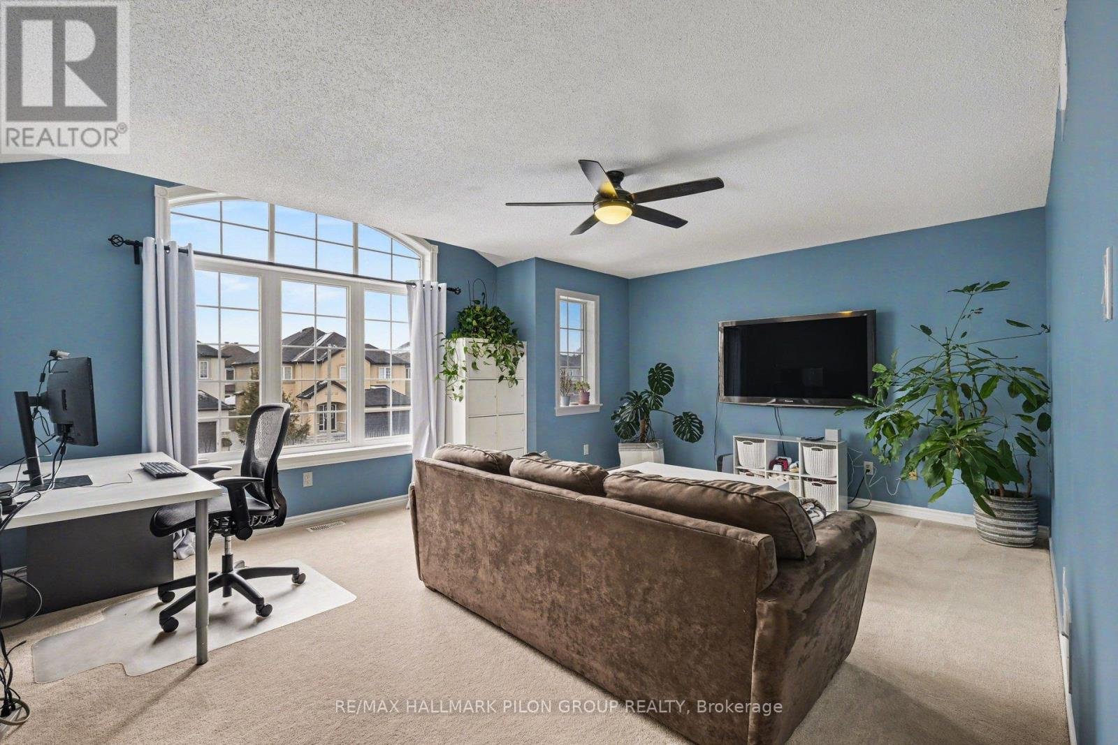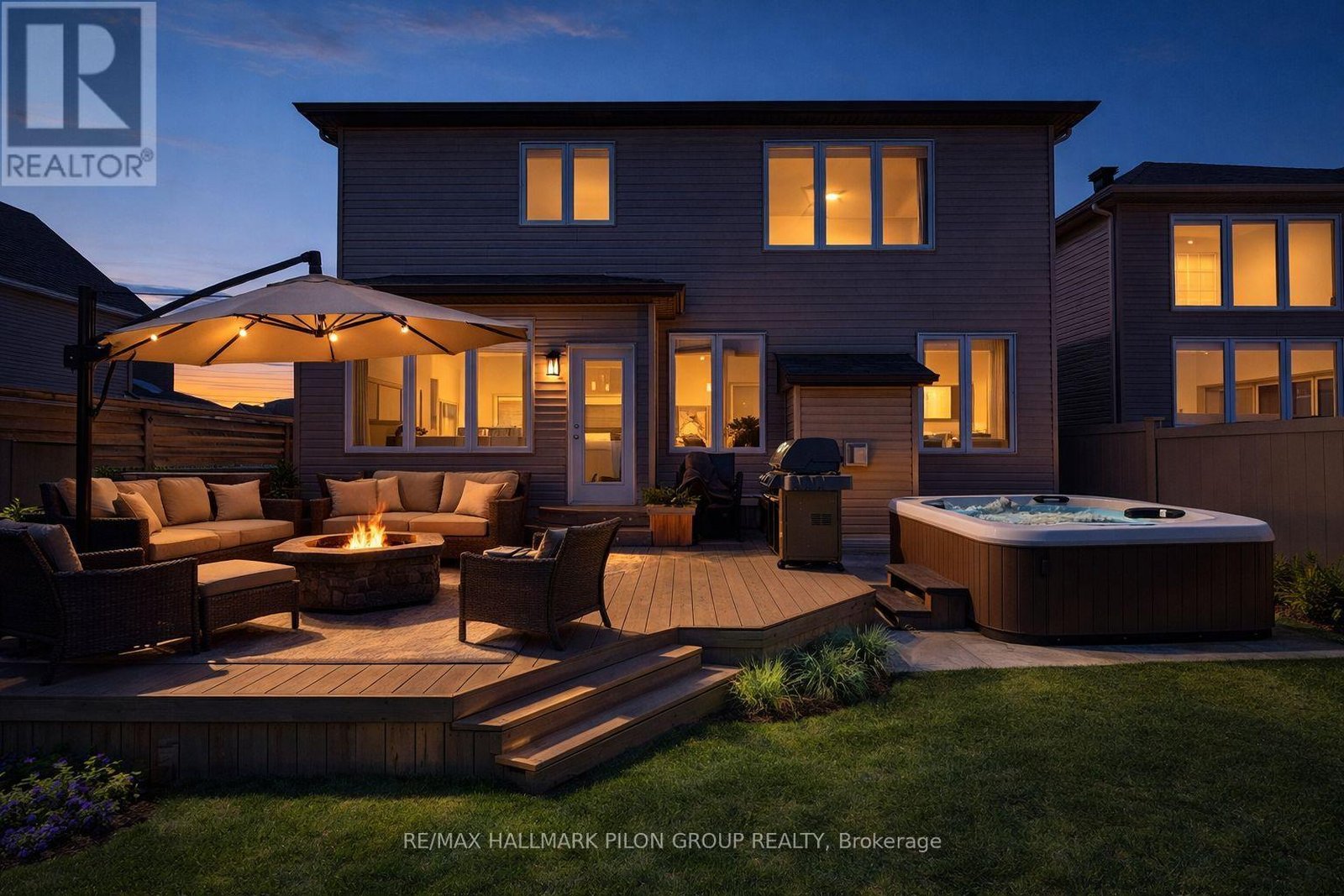Welcome to 1878 Montmere Ave, offering 4,500+ sq ft of finished living space in sought-after Notting Hill, Orléans. Situated on a premium lot siding onto a path w/ no direct side neighbour, this home offers added privacy, open views & a more spacious feel. Impressive curb appeal w/ stone & stucco façade, covered front porch & dbl garage. Bright tiled foyer w/ crown moulding & striking curved staircase open to above/below creates a grand first impression. Main flr den ideal for home office or study. Thoughtfully designed main lvl features formal dining rm w/ coffered ceiling, in-ceiling speakers, & spacious great rm w/ gas fireplace & wall of windows flooding the space w/ natural light. Hardwood throughout main living areas + tile in high-traffic spaces. Kitchen offers granite counters, oversized island w/ breakfast bar, walk-in pantry, decorative hood fan & full suite of SS appl incl built-in wall oven, microwave, cooktop & fridge. Bright eating area w/ patio door access to backyard and deck. Mudroom w/ built-in storage + main flr laundry & direct garage access. 2nd lvl offers 4 generous bedrms + loft-style family rm w/ vaulted ceilings & large arched window. Open-to-below design & wide hallway enhance space & flow. Primary retreat features WIC & 5pc ensuite w/ updated dbl vanity, soaker tub & glass shower. Fully finished basement w/ rec rm, fireplace, 2 bedrms, full bath, secondary kitchen & ample storage. Cork flooring adds warmth, durability & sound insulation. Ideal for in-law or multi-gen living or potential teen retreat. Private backyard w/ large deck, seating area, privacy wall & fully fenced yard offering both entertaining space & usable green area, perfect for families or pets. Close to top-rated schools, parks, walking paths, rec centres incl François Dupuis & Ray Friel, Millennium Park, shopping along Innes Rd & Place d'Orléans, transit & quick access to Hwy 174. Move-in ready, versatile layout & exceptional value in a prime family-friendly community.