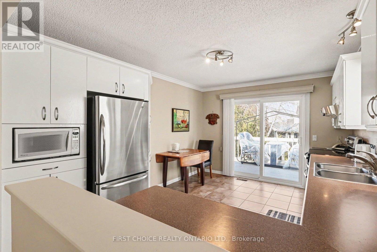 Beautiful 2+2 high ranch bungalow located on a quiet street in desirable Rockland. This well-maintained home features an inviting open-concept main floor with a spacious living and dining area, perfect for entertaining. The large kitchen offers ample cupboard and counter space, along with convenient access to the backyard-ideal for summer BBQs. The main level is completed by two generously sized bedrooms and a fully updated bathroom. Downstairs, the fully finished basement provides excellent additional living space, including a large recreation room, two full bedrooms, and a second full bathroom-perfect for guests or a growing family. There's also plenty of room for storage, laundry, and a workshop area. Outside, enjoy a double car garage, interlock driveway, and a fully fenced backyard featuring a spacious deck-great for relaxing or entertaining. Recent upgrades include: roof (2012), furnace (2018), front door (2022), freshly painted throughout, and hot water tank (2013, rental). Ideally located within walking distance to parks and shopping, with quick and easy access to Highway 174. Pride of ownership throughout-this home is move-in ready and easy to show.