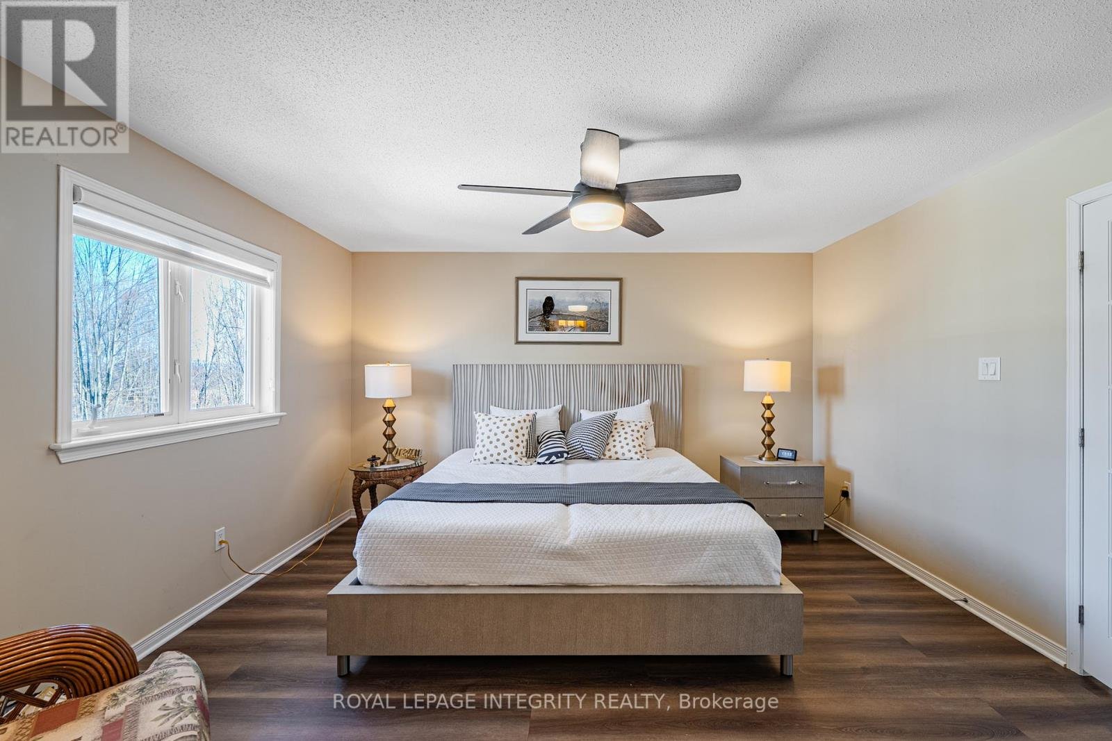 Beautifully upgraded Holitzner-built townhome located in the highly desirable Morgan's Grant community in Kanata North. This home stands out with its rare positioning beside a wooded trail and mature trees, offering no direct neighbour on one side and enhanced privacy with a bright, open feel.The main level features a functional open-concept layout with hardwood flooring throughout (no carpet except on the stairs), a spacious living and dining area, and a stylish kitchen with quality finishes and ample cabinetry.Upstairs offers three well-sized bedrooms, including a comfortable primary suite with ensuite bath, along with the convenience of second-floor laundry. The fully finished basement provides additional flexible living space ideal for a family room, home office, or gym.Extensively upgraded in 2025 and 2026, including new roof, epoxy garage floor, new add on to deck, gazebo, updated lighting, fresh paint, and significant exterior improvements such as a repaved driveway, landscaping, and more.The backyard is a true highlight - fully landscaped and thoughtfully designed, featuring a large deck, gazebo, hot tub, and shed, creating a perfect outdoor retreat for relaxing or entertaining.Located on a quiet, family-friendly street close to parks, schools, transit, shopping, and Kanata's high-tech sector.A rare opportunity to own a well-upgraded home with exceptional outdoor space, premium positioning, and long-term value.
