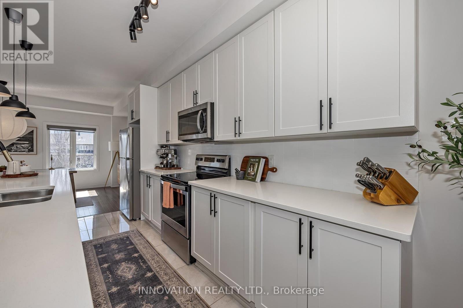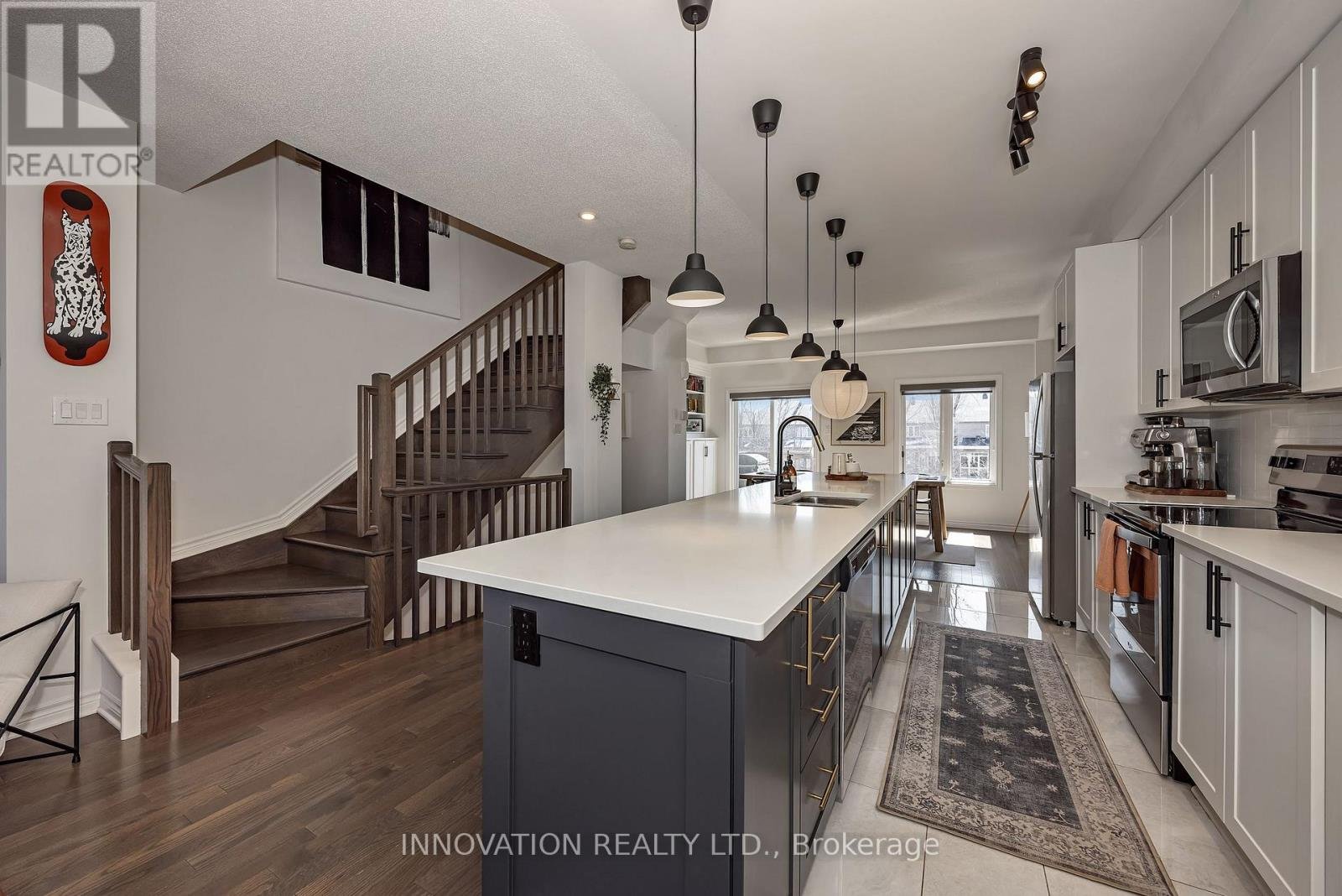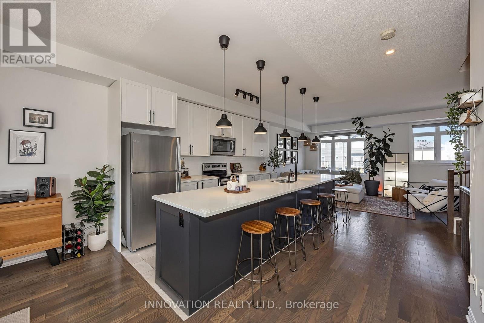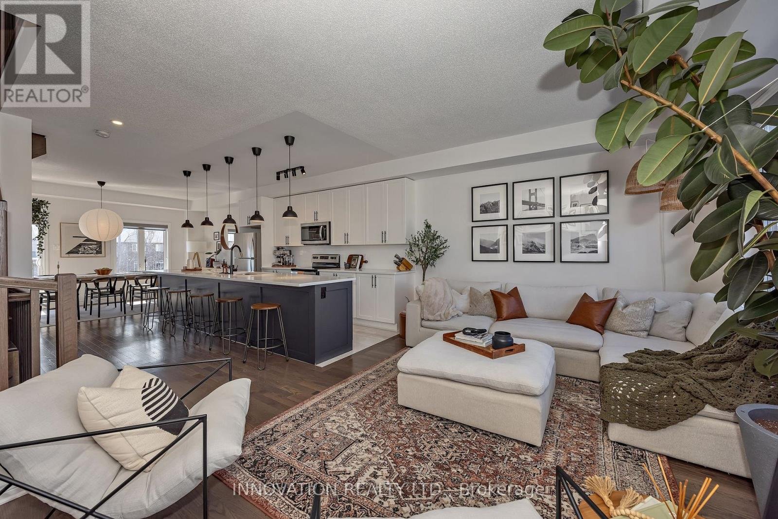 Welcome to this striking, design-forward three-storey townhome, built in 2019 and meticulously upgraded to impress. Offering 3 Bedrooms and 3 Bathrooms, this residence delivers a bold blend of modern style and refined comfort. The entry level sets the tone with a sleek tiled foyer leading into a versatile, sun-filled space-perfect as a home office or lounge. Rich hardwood floors elevate the room, which opens seamlessly to a private backyard retreat featuring a new '25 deck and elegant gazebo-your own urban escape. The 2nd level is nothing short of showstopping. A bright, open-concept layout showcases a chef-inspired Kitchen anchored by an sprawling Breakfast bar with seating for 6-8, quartz countertops, stainless steel appliances, made for entertaining in style. Hardwood floors run throughout, complemented by custom built-in dining cabinetry and a sophisticated electric fireplace that defines the living space. Step out onto the balcony and unwind with rare, unobstructed views of a mature, tree-lined ravine that is serene, private, and simply stunning. Upstairs, the 3rd level offers 3 generously sized Bedrooms, including a luxurious Primary Bedroom retreat complete with dual walk-in closets and a beautifully finished 3 pc ensuite Bath. Additional Bedrooms provide flexibility for family, guests, or a polished home office. The unfinished Basement offers a blank canvas - ideal for a media lounge or fitness studio. Ideally located close to schools, shopping, and everyday amenities, this home also features a private road with ample visitor parking plus bonus electric car charger in garage! A rare opportunity to own a turnkey, style-driven home in an exceptional setting-where modern living meets natural beauty. 24 hour irrevocable on all Offers