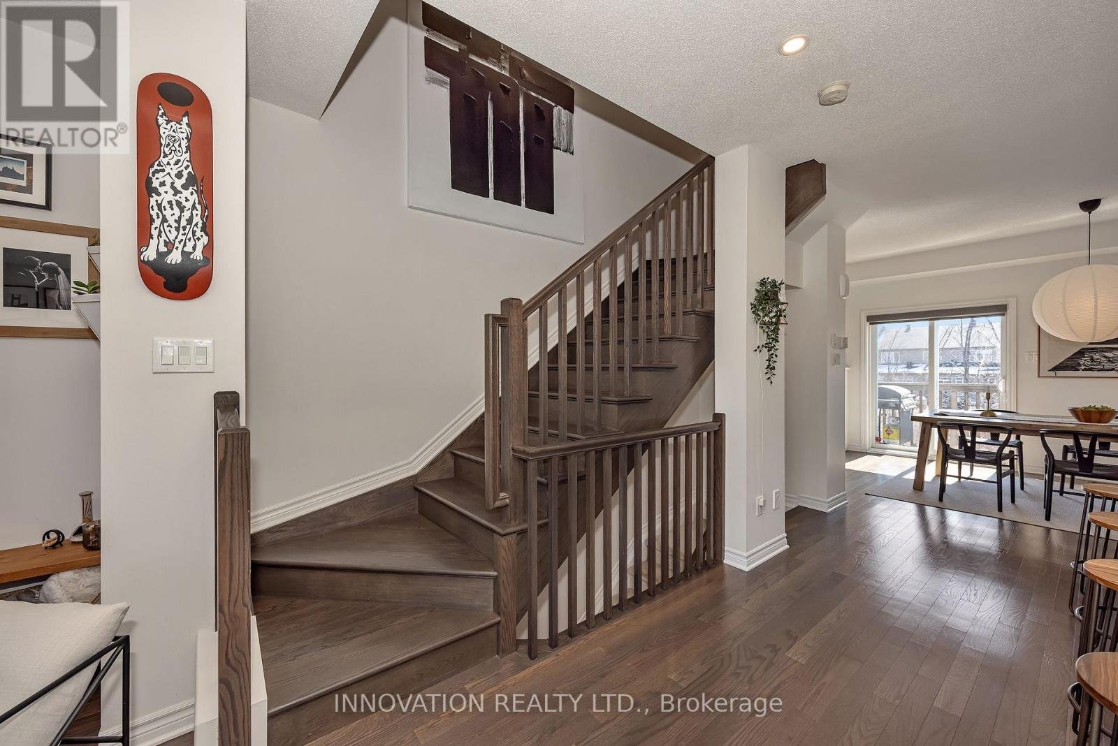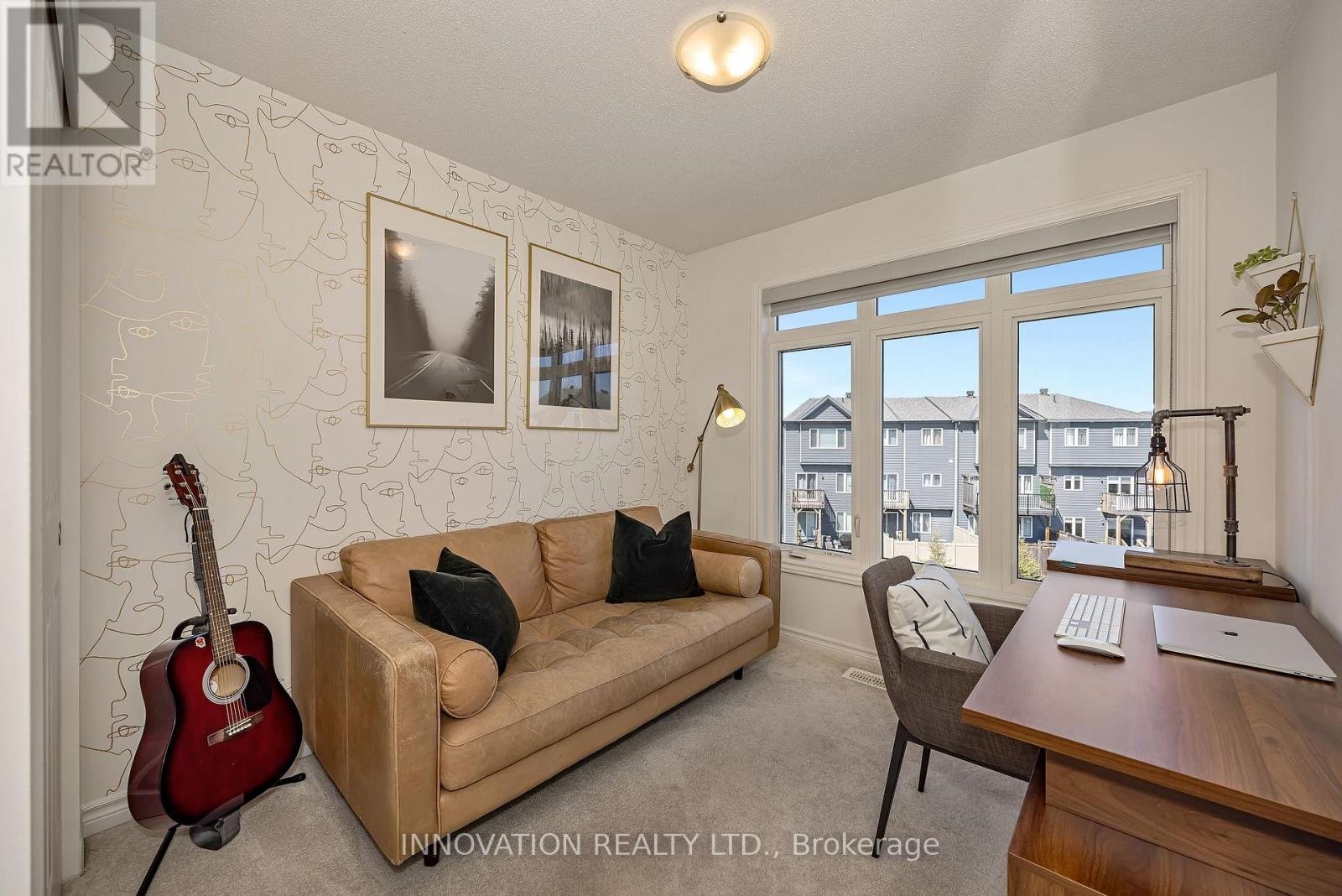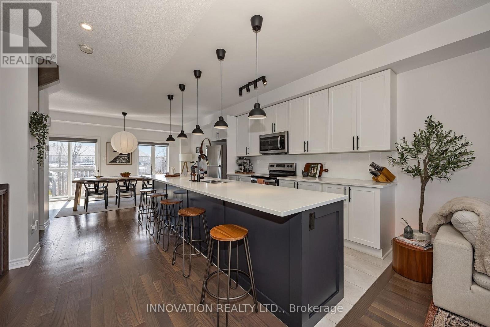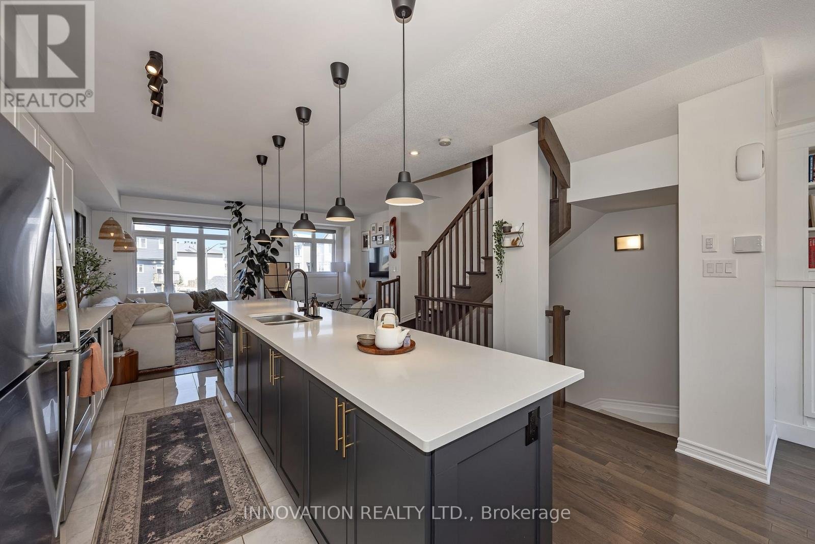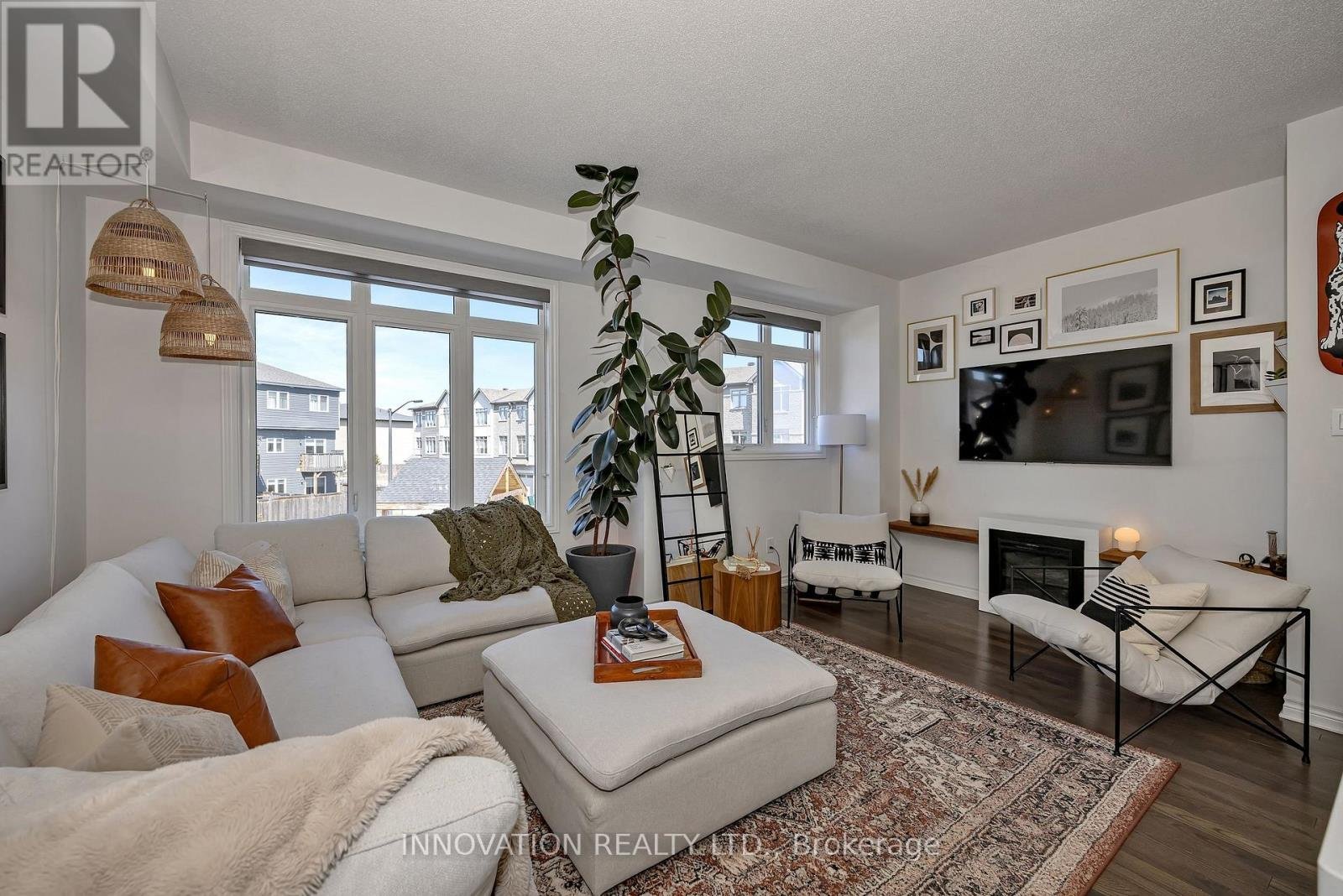 Welcome to this striking, design-forward three-storey townhome, built in 2019 and meticulously upgraded to impress. Offering 3 Bedrooms and 3 Bathrooms, this residence delivers a bold blend of modern style and refined comfort. The entry level sets the tone with a sleek tiled foyer leading into a versatile, sun-filled space-perfect as a home office or lounge. Rich hardwood floors elevate the room, which opens seamlessly to a private backyard retreat featuring a new '25 deck and elegant gazebo-your own urban escape. The 2nd level is nothing short of showstopping. A bright, open-concept layout showcases a chef-inspired Kitchen anchored by an sprawling Breakfast bar with seating for 6-8, quartz countertops, stainless steel appliances, made for entertaining in style. Hardwood floors run throughout, complemented by custom built-in dining cabinetry and a sophisticated electric fireplace that defines the living space. Step out onto the balcony and unwind with rare, unobstructed views of a mature, tree-lined ravine that is serene, private, and simply stunning. Upstairs, the 3rd level offers 3 generously sized Bedrooms, including a luxurious Primary Bedroom retreat complete with dual walk-in closets and a beautifully finished 3 pc ensuite Bath. Additional Bedrooms provide flexibility for family, guests, or a polished home office. The unfinished Basement offers a blank canvas - ideal for a media lounge or fitness studio. Ideally located close to schools, shopping, and everyday amenities, this home also features a private road with ample visitor parking plus bonus electric car charger in garage! A rare opportunity to own a turnkey, style-driven home in an exceptional setting-where modern living meets natural beauty. 24 hour irrevocable on all Offers