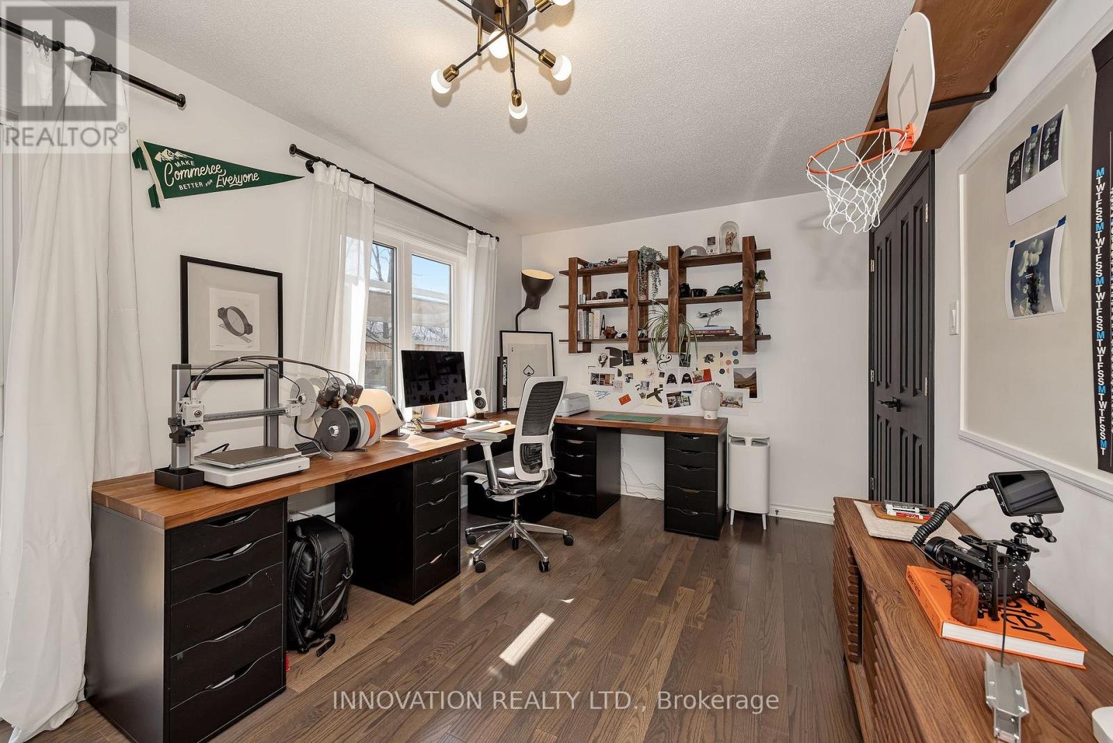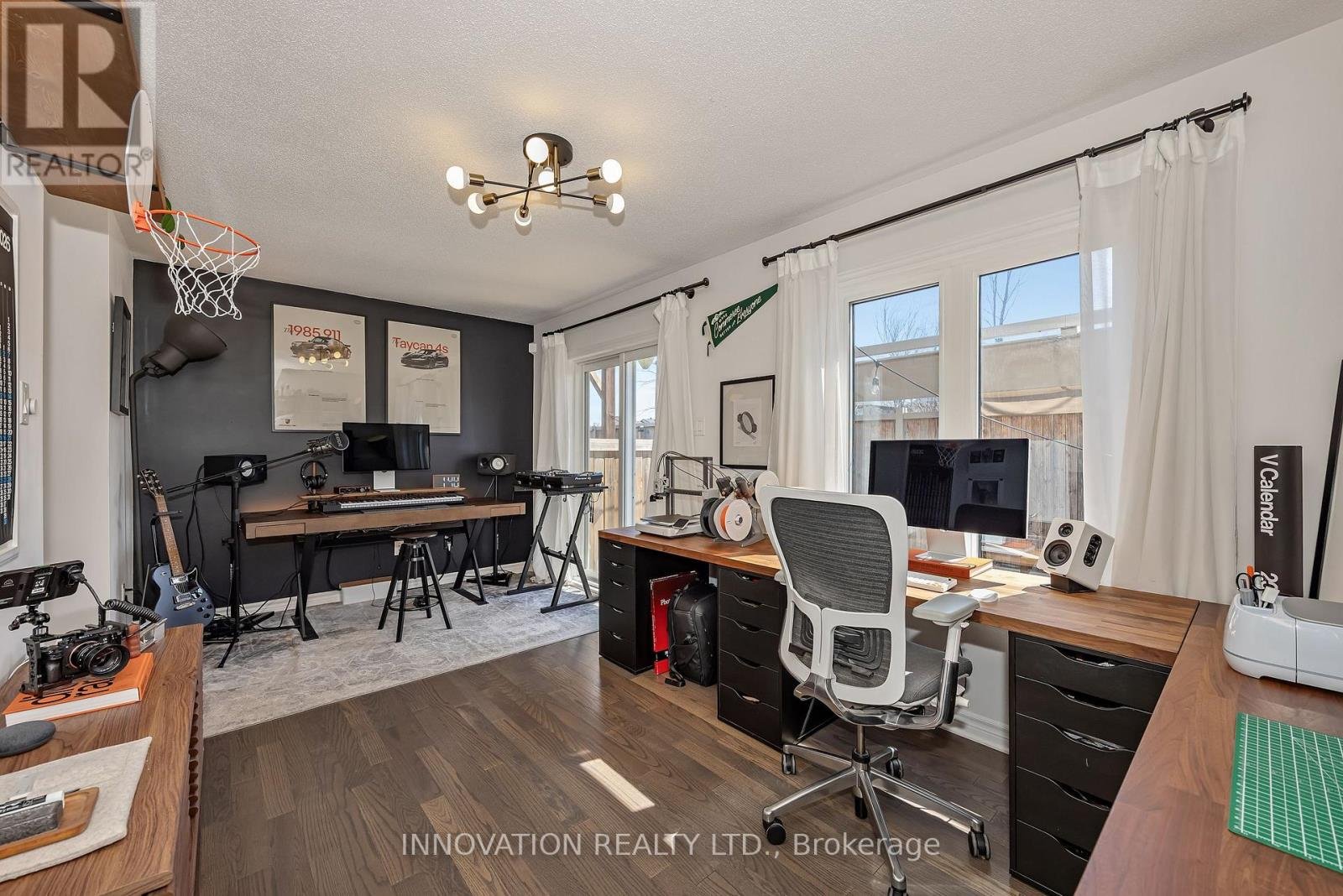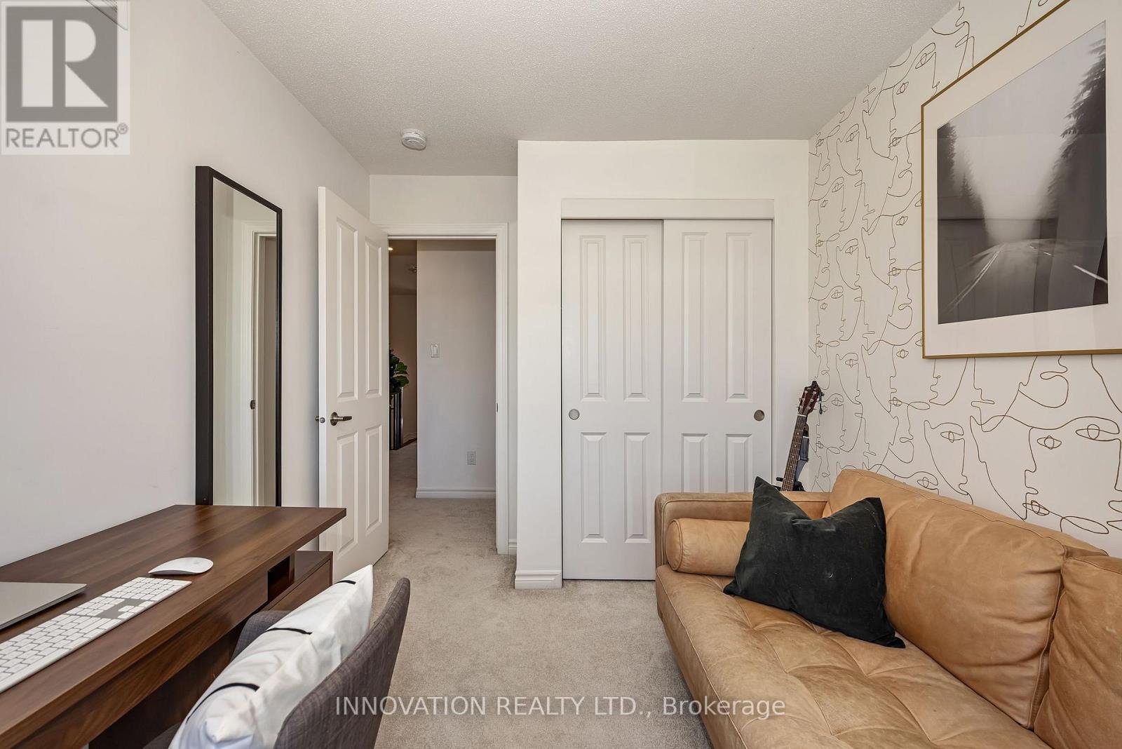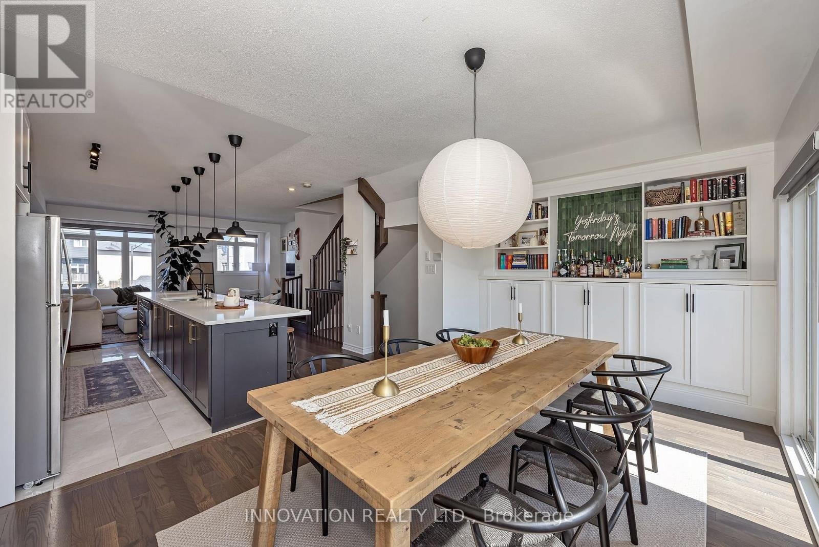 Welcome to this striking, design-forward three-storey townhome, built in 2019 and meticulously upgraded to impress. Offering 3 Bedrooms and 3 Bathrooms, this residence delivers a bold blend of modern style and refined comfort. The entry level sets the tone with a sleek tiled foyer leading into a versatile, sun-filled space-perfect as a home office or lounge. Rich hardwood floors elevate the room, which opens seamlessly to a private backyard retreat featuring a new '25 deck and elegant gazebo-your own urban escape. The 2nd level is nothing short of showstopping. A bright, open-concept layout showcases a chef-inspired Kitchen anchored by an sprawling Breakfast bar with seating for 6-8, quartz countertops, stainless steel appliances, made for entertaining in style. Hardwood floors run throughout, complemented by custom built-in dining cabinetry and a sophisticated electric fireplace that defines the living space. Step out onto the balcony and unwind with rare, unobstructed views of a mature, tree-lined ravine that is serene, private, and simply stunning. Upstairs, the 3rd level offers 3 generously sized Bedrooms, including a luxurious Primary Bedroom retreat complete with dual walk-in closets and a beautifully finished 3 pc ensuite Bath. Additional Bedrooms provide flexibility for family, guests, or a polished home office. The unfinished Basement offers a blank canvas - ideal for a media lounge or fitness studio. Ideally located close to schools, shopping, and everyday amenities, this home also features a private road with ample visitor parking plus bonus electric car charger in garage! A rare opportunity to own a turnkey, style-driven home in an exceptional setting-where modern living meets natural beauty. 24 hour irrevocable on all Offers