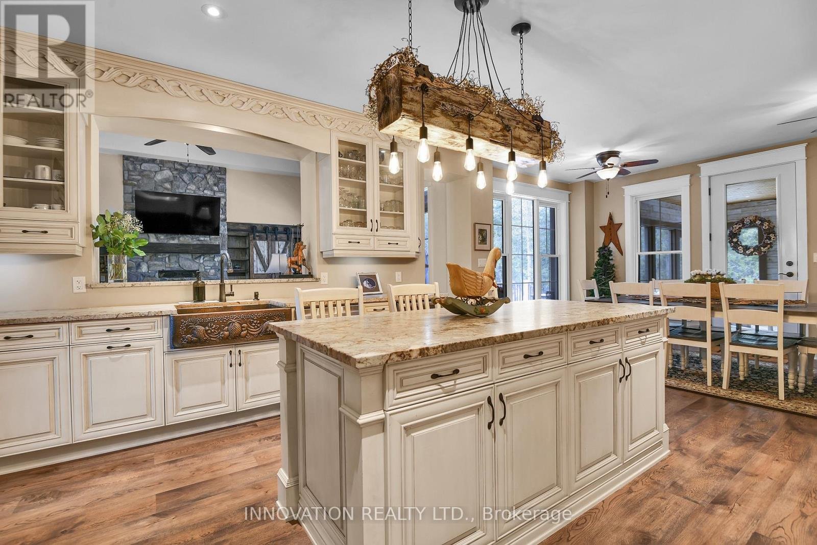 A VERY SPECIAL PROPERTY. This highly customized home was carefully crafted by the home owners with no detail overlooked. High ceilings in the primary living spaces have interesting detail with slopes and contrasting material to draw the eye upward. This is a true 4 bedroom large footprint bungalow. The primary Bedroom and two others each has an Ensuite bathroom. This Kitchen is beautiful, detailed, and very much a chef's delight. The Great Room is just that! Grand in scale but warmed by the woodburning fireplace to keep the home cozy. Formal dining room at the front of the house has southfacing views. Screened porch is a must for a rural property to extend the seasons. Unspoiled lower level is wide open, to allow your imagination to roam as to how you might want to use this space with very high ceilings. Oversized 3 bay garage. Foundation is ICF for the best insulation a foundation can have. The site is 4.31 acres of woods with trails throughout. Location is very important - MacLarens Landing residents have an opportunity to share in a private neighbourhood beach for only $50 per year. Less than 15 minutes to Arnprior with many amenities, 20 minutes to Kanata North. Treat your family to this welcoming community and a home with true lifestyle possibilities.