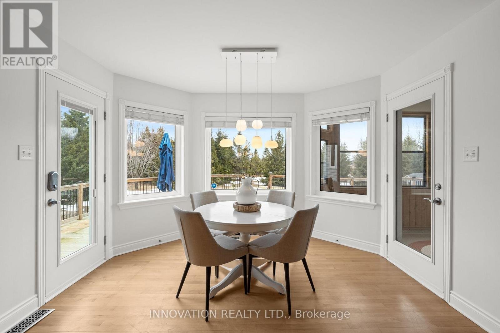 Set on a breathtaking 2-acre treed lot, this exceptional LandArk-built residence offers the perfect blend of luxury, privacy, and refined living with many upgrades. Thoughtfully designed with impeccable craftsmanship, this home features rich maple flooring throughout the main level and an elegant layout ideal for both everyday living and grand entertaining.The chef's kitchen is beautifully appointed with granite countertops, custom maple cabinetry, and a premium induction oven, seamlessly flowing into a bright and inviting space. The stunning dining room showcases vaulted ceilings and comfortably accommodates up to 14 guests, perfect for hosting unforgettable gatherings. Retreat to the expansive primary suite, complete with a large ensuite and an oversized walk-in closet, while all additional bedrooms offer generous proportions and comfort. The fully finished lower level elevates the home further with a private theatre, dedicated gym, and an additional bedroom and full bath both with heated flooring ideal for guests or extended family. Outdoors, the property is equally impressive, featuring a fenced orchard, a relaxing hot tub, and a newly built workshop (2021). A Generac generator (2019) ensures peace of mind year-round. A rare offering that combines elegance, function, and serene natural surroundings this is estate living at its finest.
