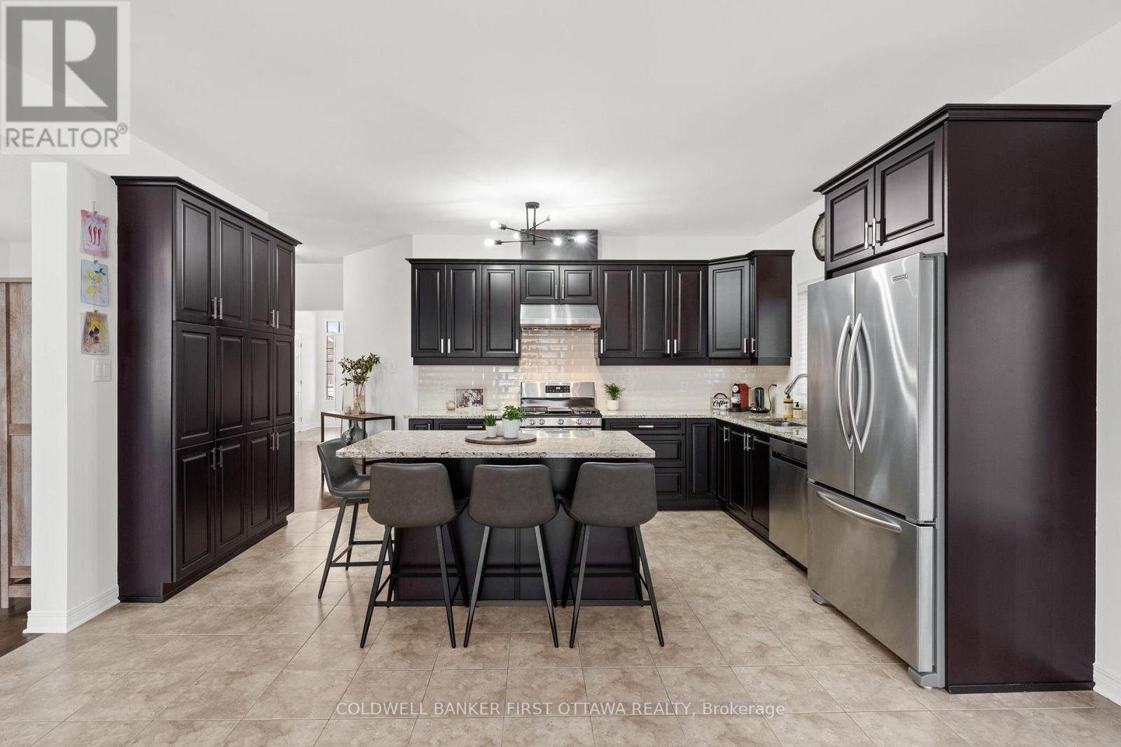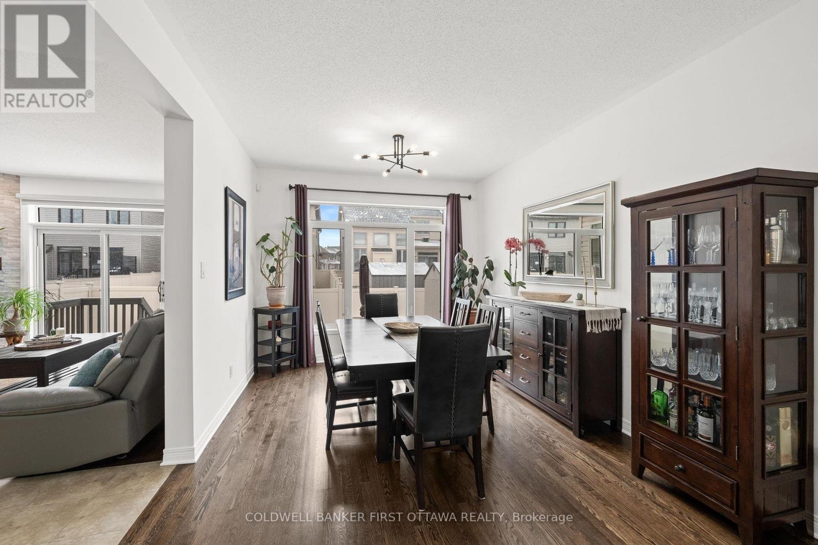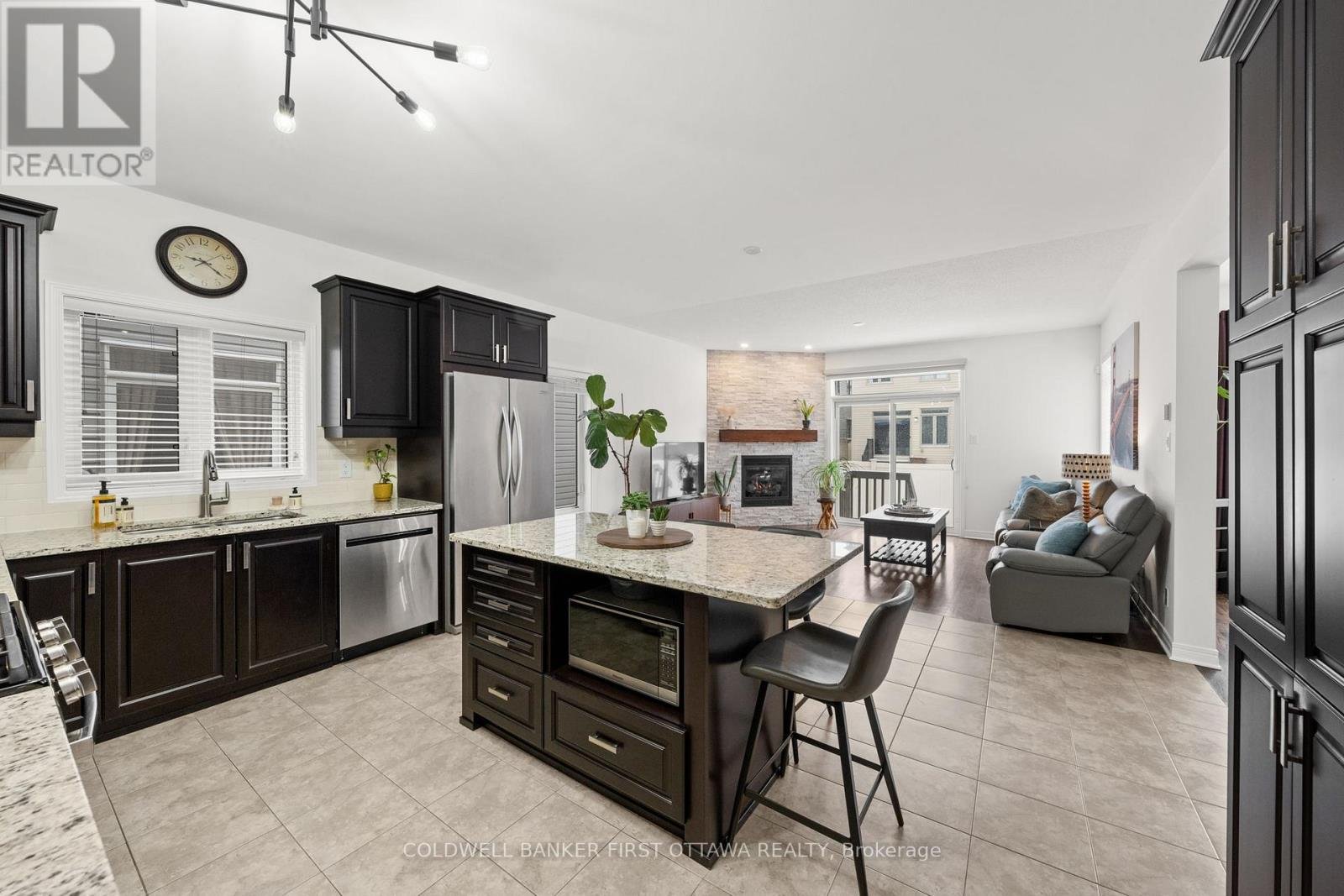 Welcome to this beautifully upgraded (too many to list) & designed Claridge Oslo model set on a premium (backyard) 50ft wide lot in the heart of Riverside South. Meticulously maintained home, by the original owners, offers extensive builder upgrades & thoughtful owner improvements, a true turn-key experience. Step inside to 9ft ceilings, rich Hardwood floors throughout + Staircases to 2nd & Lower Levels & a bright, functional layout for everyday living & entertaining. Living & dining areas filled w/ natural light from windows at the side & rear, while the separate great rm feat. gas fplc w/ stone surround, solid wood mantle & added pot lights for an, inviting atmosphere. The upgraded kitchen is stylish & functional & offers solid maple cabinetry w/ crown moulding, granite countertops, lg L-shaped island w/ breakfast bar seating (4), built-in microwave, extended pantry wall & SS appl. incl. 2026 gas range/DW & pro-style hood fan. Patio drs provide direct access to the fully PVC fenced backyard, complete w/ patio ,storage sheds & plenty of space to relax or entertain outdoors. The hwd staircase leads to the 2nd lvl w/ 3 spacious bds. The primary retreat offers oversized windows, a WIC w/ built-in shelving & a 5pc ensuite feat. dual vanity, soaker tub & an enlarged glass shower w/ tile surround & waterproofing system. Two add'l bds offer generous closet space & a full bath, while an oversized linen closet adds everyday practicality. The LL offers egress windows & excellent potential for future finishing w/ a rough-in for a bath, dedicated laundry area, convenient cold storage, Seasonal Wardrobe + Pantry Shelving, all included! Notable feat. incl. A/C, furnace humidifier, on-demand hot water, alarm system, central vac + accs, insulated & finished dbl garage w/ overhead storage, PVC fence, updated lighting, fresh paint, Stove + DW (26') & much more. Steps to parks, schools, transit incl. OC Transpo Park|Ride, LRT stations Limebank & Bowesville. Quiet & No thru Crescent!