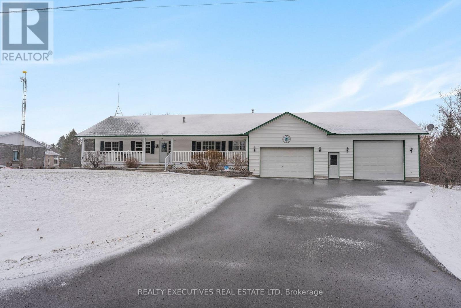 Welcome to this beautifully maintained raised bungalow nestled on a private, oversized lot in the charming community of Vernon, Ontario. Offering comfort, functionality, and exceptional space, this home is perfect for families, hobbyists, or anyone seeking peaceful living within easy reach of the city. A large paved driveway leads to the impressive detached garage and a lovely interlocking stone walkway guiding you to the inviting full-length front porch-the perfect spot to enjoy your morning coffee or unwind while watching the sunset. Car enthusiasts, hobbyists, and business owners will love the massive garage, featuring both a standard door and an oversized high-clearance door ideal for larger vehicles, trucks, or tractors. With abundant space for repairs, a workshop, or even a future golf simulator, the possibilities are endless. The garage also offers convenient direct access to the main floor laundry room and basement. Inside, this home showcases true pride of ownership. The welcoming foyer opens into a warm and comfortable living space highlighted by a sunken living room with gas fireplace, a bright kitchen with island, and a spacious dining area perfect for family gatherings and entertaining. The main level offers three private bedrooms, including a primary retreat with walk-in closet and ensuite bathroom, along with a 3-piece main bath and the convenience of main floor laundry. The lower level features large windows that flood the space with natural light, offering excellent potential to create additional living space, recreation areas, or a home office tailored to your needs. Generator with generlink. Ideally located just 35 minutes from Ottawa, this property provides the perfect balance of peaceful country-style living with convenient city access.A fantastic opportunity to own a spacious, well-cared-for home in a wonderful community.
