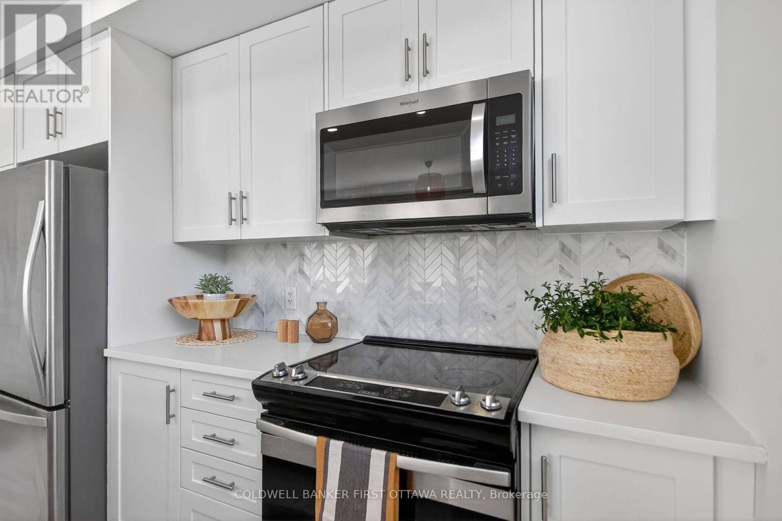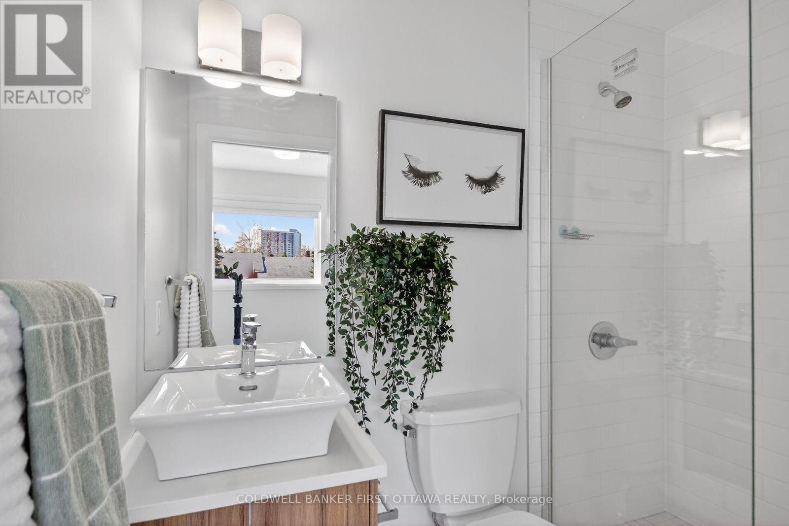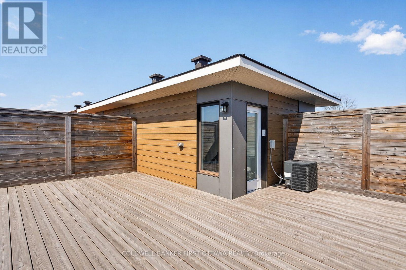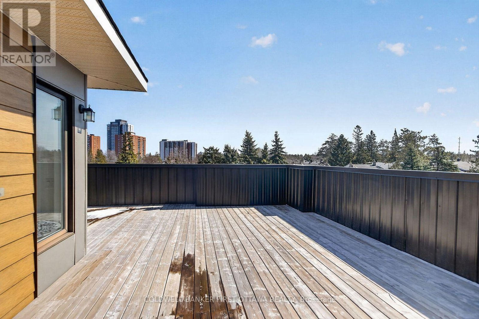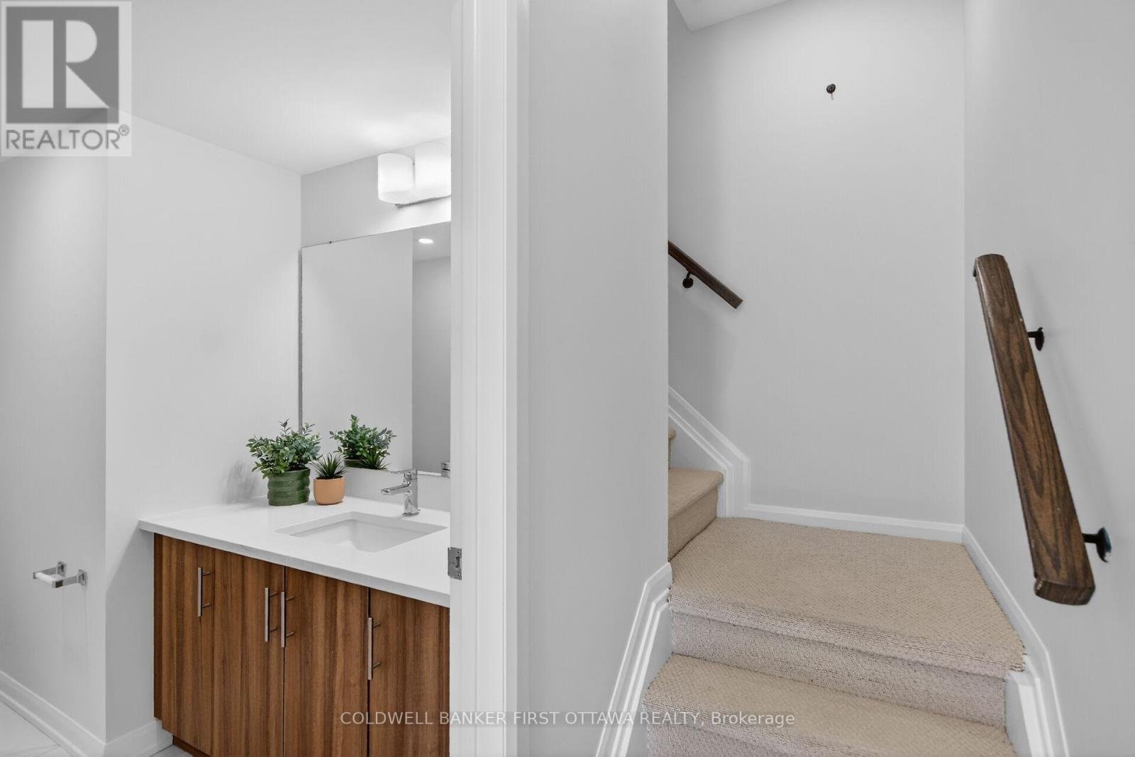 This stunning modern end-unit townhome is filled with natural light and offers an exceptional blend of style, functionality, and urban convenience. Ideally located with effortless access to transit and everyday amenities, it is perfectly suited for contemporary living. The sun-filled interior begins at the entry level with a versatile den-ideal as a home office, fitness space, or cozy retreat and a convenient powder room. Wide-plank hardwood flooring accents the second level, where expansive windows flood the open-concept living and dining area with light, creating a warm and inviting atmosphere. Upgraded automated blinds included. The sleek kitchen is beautifully appointed with stunning countertops, stainless steel appliances, pot lights and designer accent lighting with a large island-perfect for entertaining, casual dining, and gathering with family and friends. Upstairs, three well-proportioned bedrooms provide flexible living arrangements, including a primary suite complete with its own private ensuite bath. A standout feature of this home is the fantastic private rooftop terrace-an ideal extension of your living space. Enjoy sweeping views, all-day sun, and the perfect setting for entertaining, relaxing, or unwinding under the stars. Located in a highly desirable neighbourhood close to Algonquin College, Britannia Beach, Queensway Carleton Hospital, and Highways 416 and 417. Home was freshly painted 2026. Monthly Assoc Fee $121.71 Move right in and enjoy your summer!