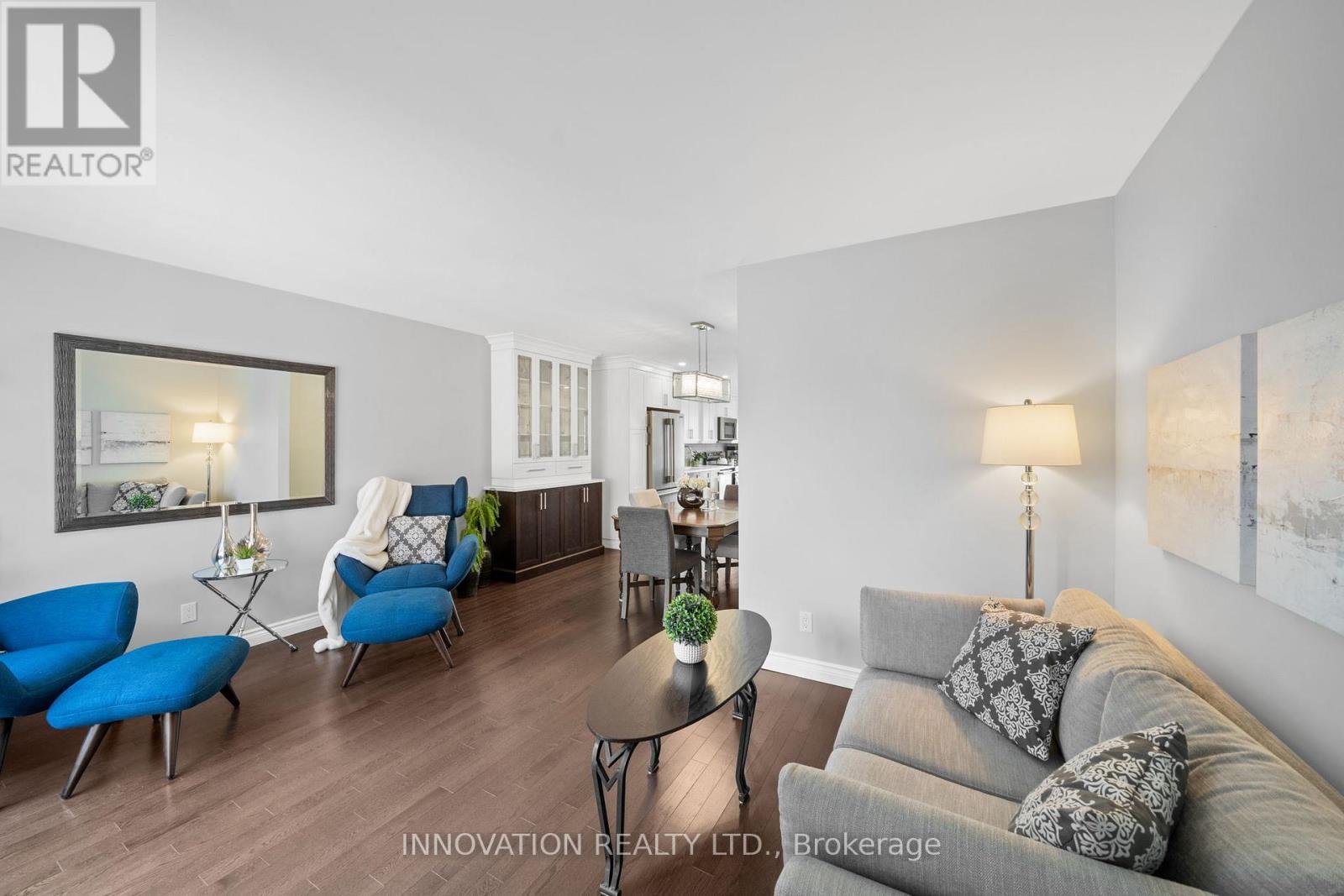 This beautiful and inviting home offers an exceptional blend of comfort, functionality, and charm in a prime location-just steps to shopping, parks, schools, trails, and everyday amenities. Bright and spacious with an excellent open-concept layout, it features a wonderful flow between the living room, dining room, and kitchen-perfect for both everyday living and effortless entertaining. The adjacent family room adds warmth and style with a beautiful fireplace feature wall, creating the perfect space to relax or gather. The stunning renovated kitchen is the heart of the home, showcasing elegant white cabinetry, quartz countertops, a stylish backsplash, and a functional island with seating for four. Enjoy ample storage, generous counter space, and convenient access to the backyard-ideal for seamless indoor-outdoor living.The home offers well-sized bedrooms, including a primary retreat complete with a walk-in closet and a private 3-piece ensuite. The finished lower level provides excellent additional living space with a large den, cork flooring, and plenty of storage-perfect for a home office, recreation area, or guest space. Mature trees beautifully frame the property, leading to a double car garage and interlock walkway. A durable steel roof adds long-term value and peace of mind with its exceptional longevity. You'll love everything this home has to offer.