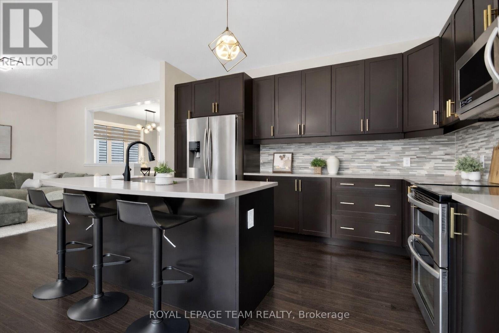 Welcome to this stunning single family home, built in 2013 and ideally located in a highly desirable family-friendly neighborhood. Thoughtfully designed with both style and functionality in mind, this single family home offers spacious living and modern finishes throughout. The main floor features gleaming hardwood floors and impressive 9-foot ceilings, creating a bright and inviting atmosphere. Enjoy a versatile main floor den perfect for a home office alongside a formal dining room ideal for hosting family gatherings and special occasions. The spacious kitchen is the heart of the home, complete with ample floor to ceiling cabinetry, separate island with breakfast bar, quartz countertop, stainless steel appliances and bench window seating with a beautiful view overlooking the professionally landscaped backyard. Step outside to the outdoor retreat featuring an interlock patio, charming gazebo, and a dedicated dog run, perfect for relaxing or entertaining. A convenient 2 pce powder room, and inside access to double car garage complete the main level. Second level, you'll find four generously sized bedrooms plus a versatile loft space with cathedral ceilings currently used as a home theatre. Second level also offers a well-appointed 4-piece family bathroom and the convenience of second-floor laundry. Primary suite is a true retreat, featuring a walk-in closet and a private 5-piece ensuite with separate shower, soaker tub and double sinks. The spacious, unspoiled lower level offers endless potential, ready to be customized to suit your needs whether it be a recreation room, gym, or additional living space. This exceptional home blends comfort, style, and practicality. Book your showing today!