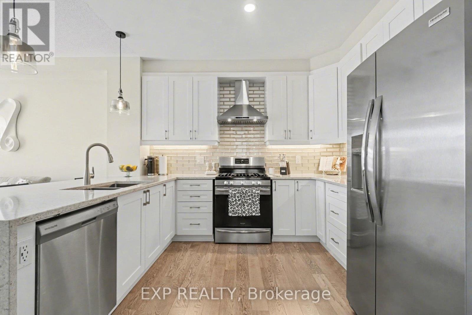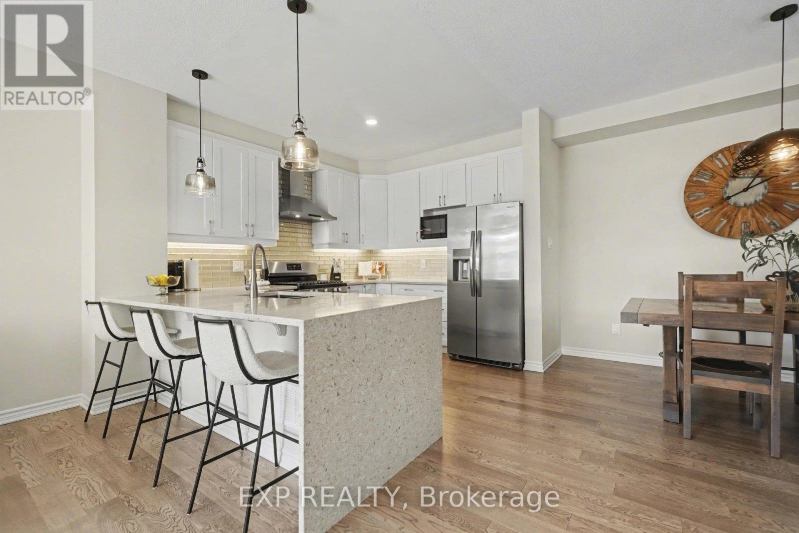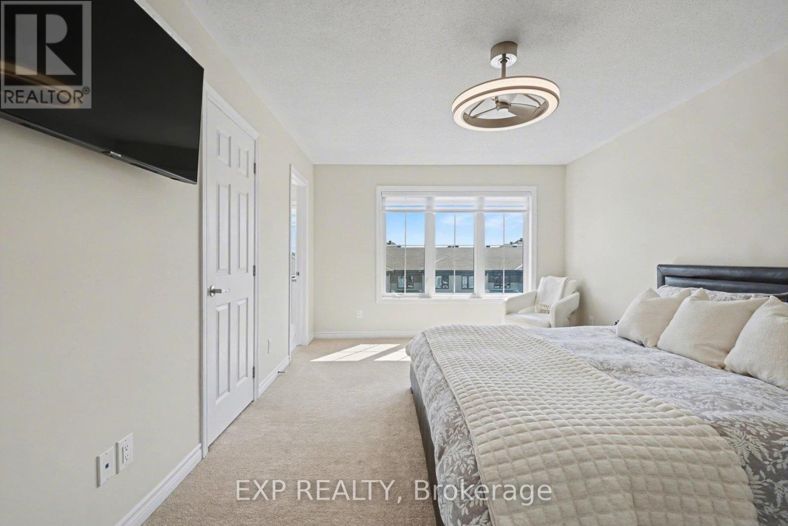 Welcome to this beautifully designed 3-storey end-unit townhouse in Half Moon Bay. This 3 bedroom 4 bathroom home is a rare find - given that every bedroom has it's own private 4-piece ensuite and walk-in closet! Providing optimum comfort and privacy for families, guests, or even tenants.The versatile layout includes a main-level bedroom suite; perfect for guests, a home office, or multigenerational living. The second level features a bright, open-concept living space with large windows that fill the home with natural light, enhanced by its premium end-unit location. The modern kitchen is equipped with quartz countertops, a custom backsplash, soft close cabinets, and a full suite of stainless steel Frigidaire appliances; including a gas stove. The kitchen seamlessly flows into into the dining and living areas and comes equipped with a breakfast bar. The main living area features sliding door access to beautiful, large, south-eastern facing deck that receives plenty of sun; it's a perfect place to grab some fresh air with your morning coffee. A convenient powder room completes this level, making entertaining a breeze. On the third floor, you'll find two additional spacious bedroom suites, each with their own ensuite and walk-in closet, offering a functional and private layout for everyday living. This home also features an attached 1-car garage, an widened driveway, and a low-maintenance landscaped front yard. Ideally located within walking distance to schools, parks, and recreation centres, and with easy access to public transit-including bus route #75, which connects the home to key Barrhaven hubs as well as eventually making it's way to Tunney's Pasture, making commuting into the city hassle free. Don't miss out on this rare opportunity to own a thoughtfully designed home in one of Barrhaven's most desirable neighbourhoods. OPEN HOUSE SUN APRIL 19th, 2-4p.m. Average monthly utilities are - Gas: $66, Water: $46, Hydro: $57, Tankless Heater Rental: $55