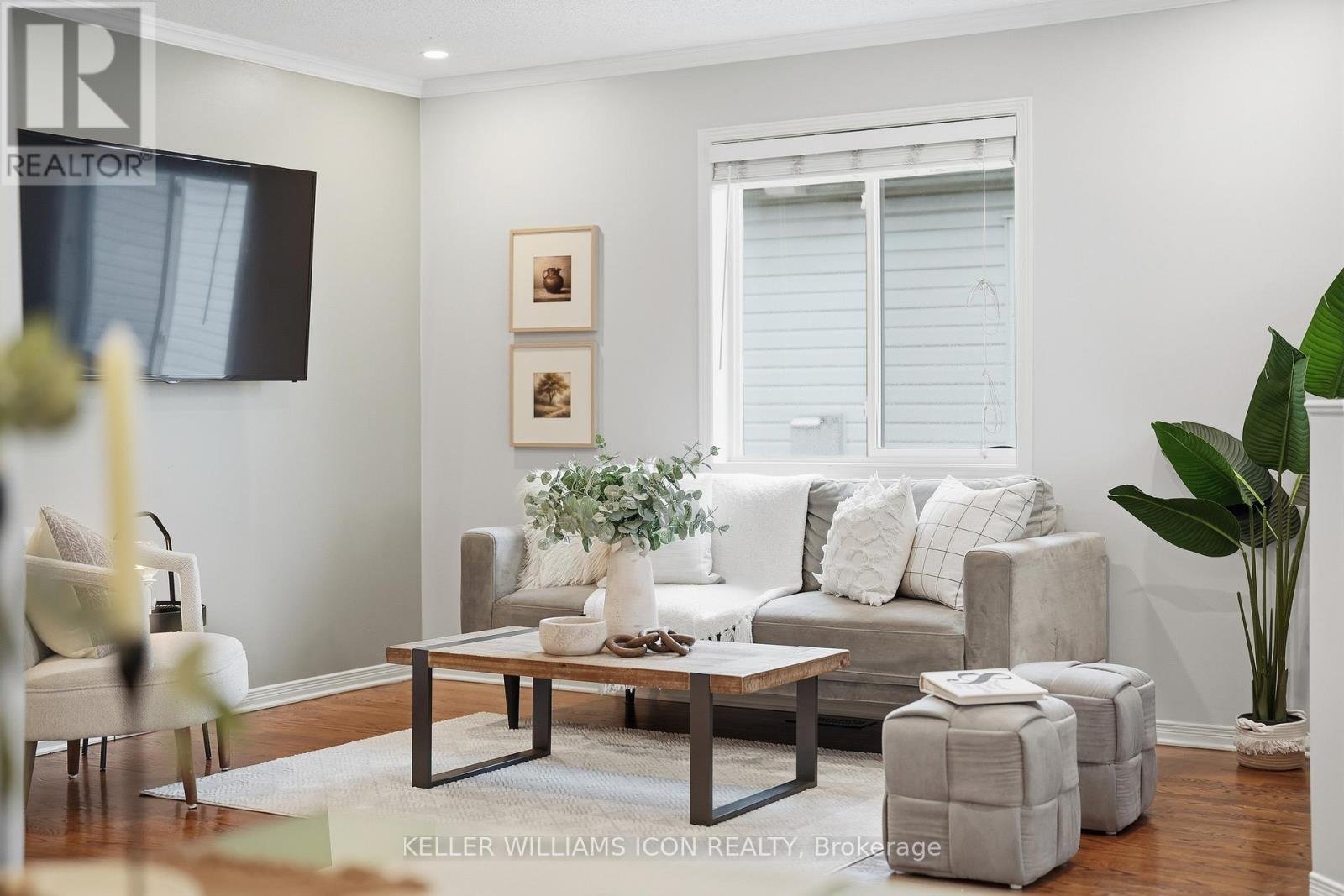 AMAZING LOCATION & MOVE-IN READY! Ideally situated in KANATA, just minutes to HWY 417, and within walking distance to SHOPPING, TRANSIT, PARKS, AND THE TRANS CANADA TRAIL. Close to KANATA CENTRUM, TANGER OUTLETS, CANADIAN TIRE CENTRE, and all major amenities-offering an unbeatable lifestyle of convenience.This beautifully maintained SEMI-DETACHED RAISED BUNGALOW offers a VERSATILE LAYOUT IDEAL FOR FAMILIES OR MULTI-GENERATIONAL LIVING. The sun-filled main level features CATHEDRAL CEILINGS, rich hardwood flooring, and SOUTH & WEST-FACING WINDOWS that flood the space with natural light throughout the day.The OPEN-CONCEPT KITCHEN, LIVING, AND DINING AREA is perfect for everyday living and entertaining, featuring STAINLESS STEEL APPLIANCES, AMPLE CABINETRY, AND A LARGE ISLAND-IDEAL FOR FOOD PREP AND FAMILY GATHERINGS. The main level also includes a spacious PRIMARY BEDROOM WITH WALK-IN CLOSET AND PRIVATE BALCONY, along with a SECOND BEDROOM WITH LARGE WINDOWS. A 3-PIECE FULL BATH with BRAND NEW TOILET & SINK completes this level.The BRIGHT WALKOUT LOWER LEVEL expands your living space with a cozy FAMILY ROOM WITH GAS FIREPLACE, an additional BEDROOM, a NEWLY RENOVATED FULL BATHROOM, and a LAUNDRY/UTILITY ROOM WITH AMPLE STORAGE, along with INSIDE ACCESS TO THE DOUBLE GARAGE-ideal for an in-law or teen suite setup.Step outside to enjoy a PRIVATE, FULLY FENCED BACKYARD WITH DECK, INTERLOCK, AND STORAGE SHED, perfect for outdoor living.The property also offers a DOUBLE GARAGE + DRIVEWAY PARKING FOR UP TO 4 ADDITIONAL VEHICLES.Recent updates include:fridge (2022), stove (2025), bathrooms updated (2024-2026), lower level bathroom (2025), freshly painted (2026), pot lights (2026), fire alarm (2026).A RARE OPPORTUNITY TO OWN A BRIGHT, FLEXIBLE, AND WELL-LOCATED HOME IN ONE OF KANATA'S MOST CONVENIENT COMMUNITIES.