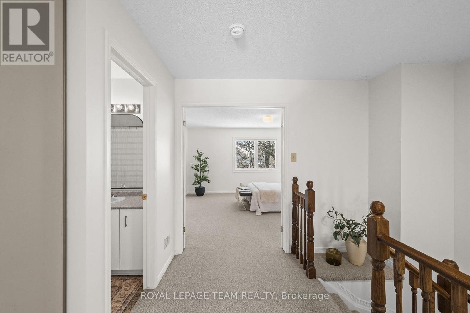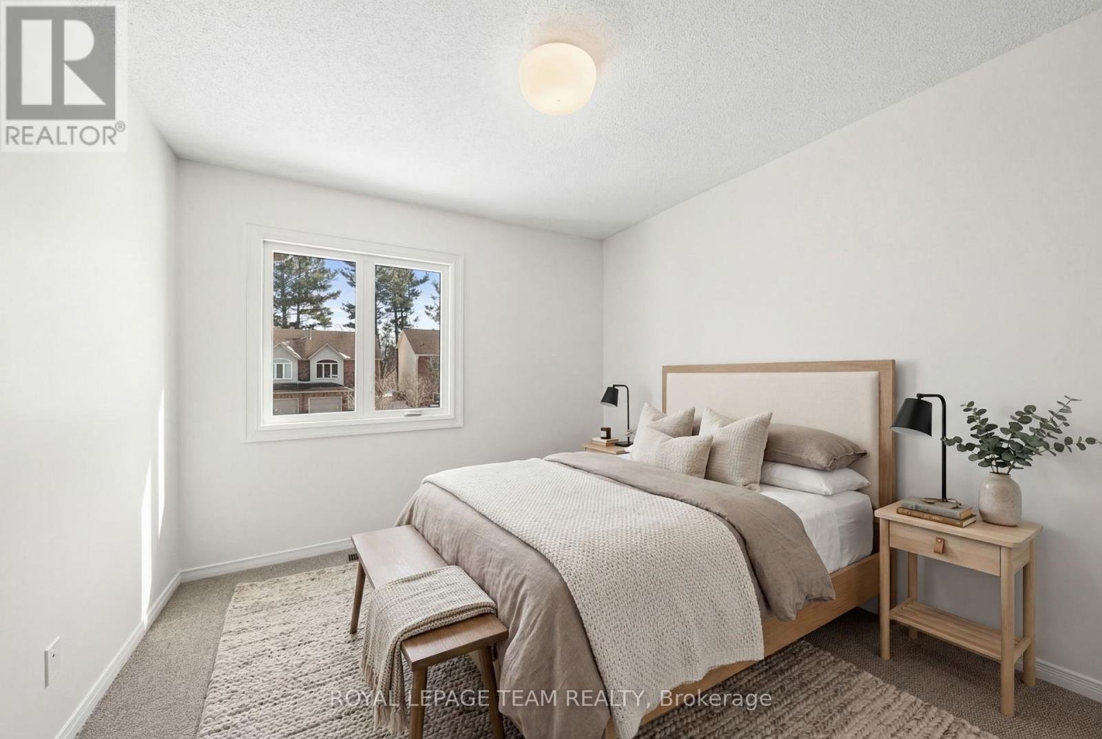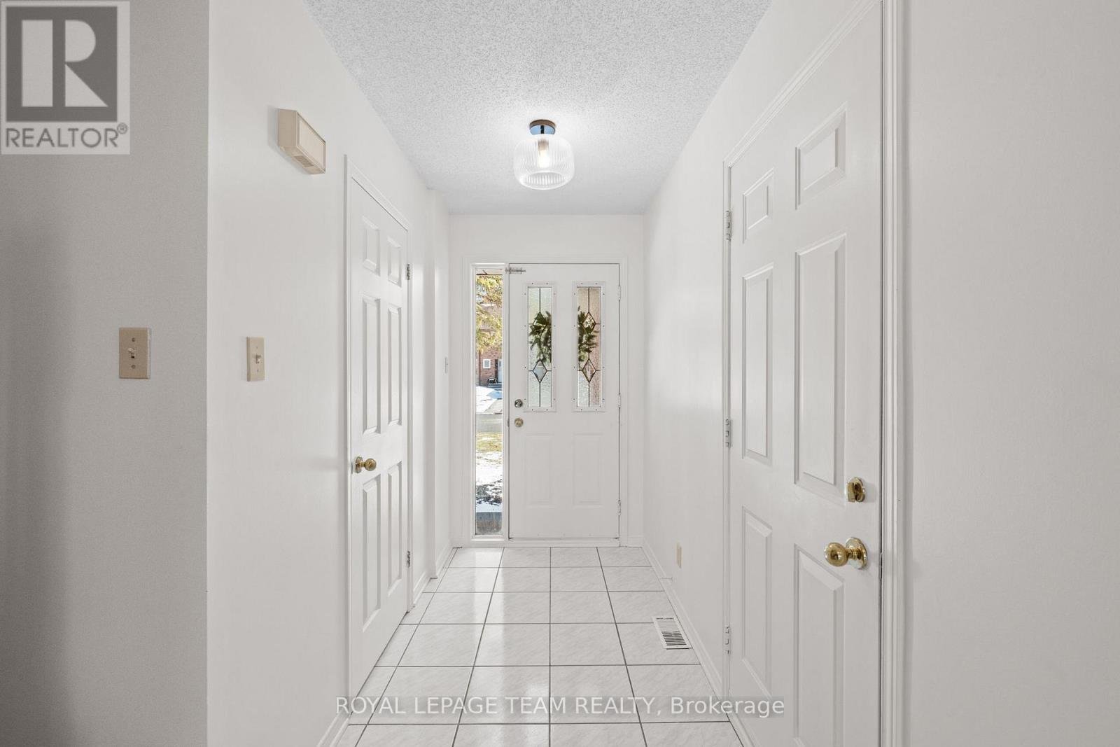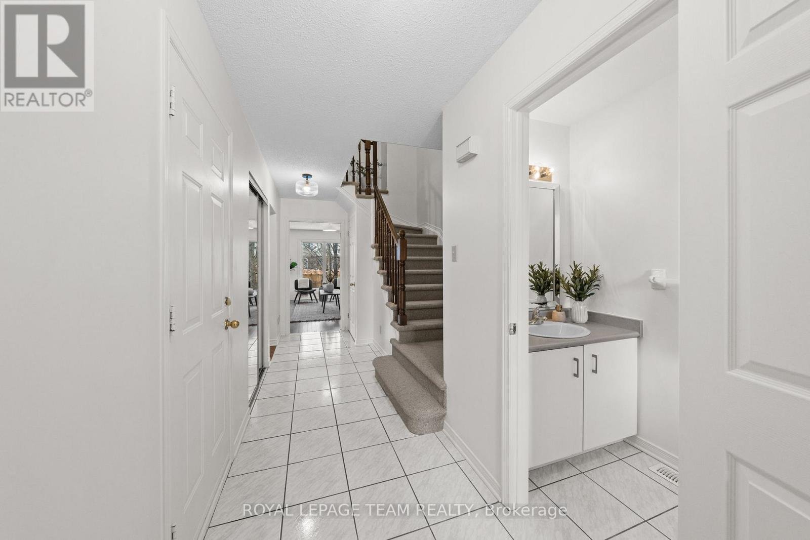 Located on a quiet, family-friendly crescent in sought-after Bridlewood, close to NCC trails, parks, the Eva James Community Centre, shopping, and everyday amenities, this bright 3 bedroom, 2.5 bathroom end unit townhome sits on an impressive ~130 ft deep lot and features stylish 2026 upgrades throughout. Freshly painted, the home offers a warm, welcoming feel from the moment you step inside, with a tiled foyer and convenient powder room leading into the sun-filled living room showcasing new hardwood floors (2026), a modern light fixture, and large windows overlooking the backyard. The dining room features a statement chandelier and patio door access to the deck, flowing seamlessly into a breakfast nook and beautifully updated kitchen with new quartz countertops (2026), tiled backsplash, white cabinetry, deep sink, pantry storage, and brand new stainless steel appliances, including a stove, fridge, and dishwasher (2026). The second level offers new carpet and a spacious primary retreat through grand double doors, complete with a walk-in closet and newly updated ensuite (2026) featuring a quartz countertop and new bathtub with tile surround. Two additional bright bedrooms and a full bathroom with tub/shower combo complete the level. The finished lower level adds valuable living space with new carpet, a cozy recreation room with gas fireplace, wood mantle and built-in shelving. Down the hall, you'll find a deep storage closet and a separate utility and laundry room with potential for future finishing. Outside, enjoy a sun-filled backyard with mature trees and the added benefit of side yard space, ideal for outdoor play, relaxing, and family enjoyment. A fantastic opportunity in a prime location, this is a move-in ready home you won't want to miss! 24 hours Irrevocable on all offers, preferred. Some rooms are virtually staged.