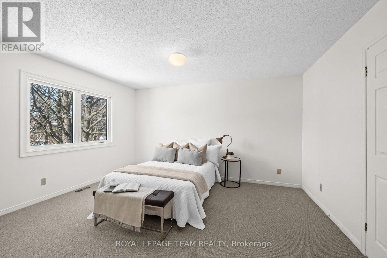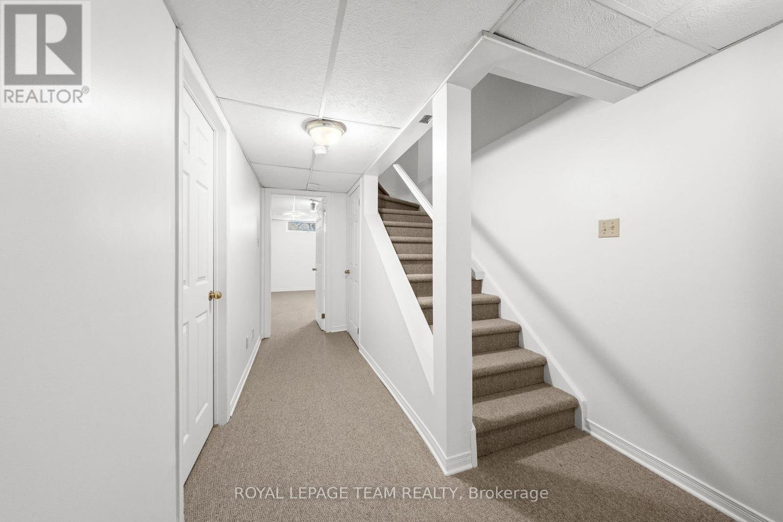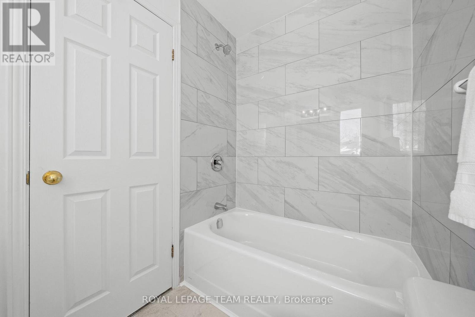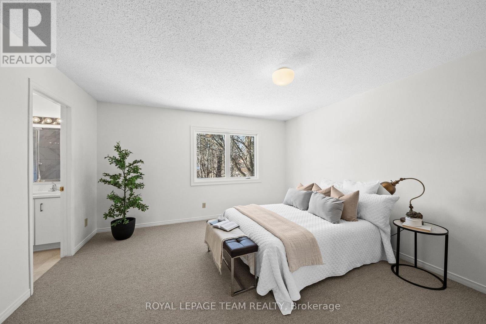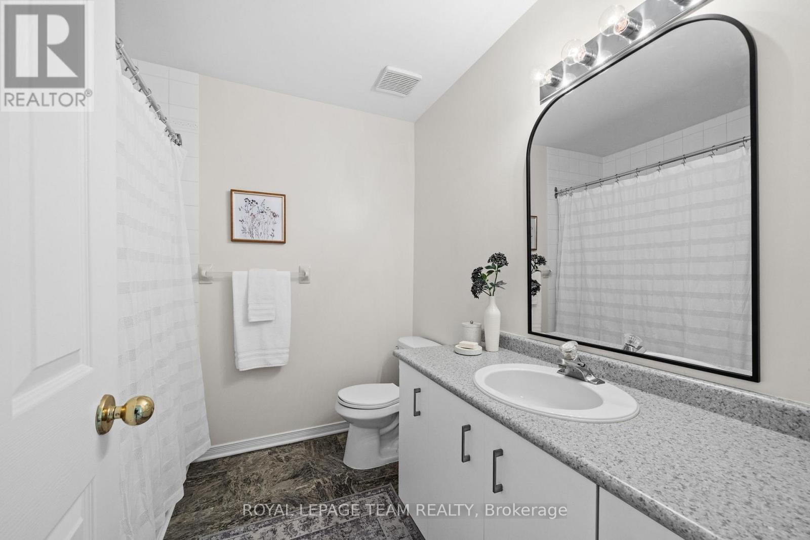 Located on a quiet, family-friendly crescent in sought-after Bridlewood, close to NCC trails, parks, the Eva James Community Centre, shopping, and everyday amenities, this bright 3 bedroom, 2.5 bathroom end unit townhome sits on an impressive ~130 ft deep lot and features stylish 2026 upgrades throughout. Freshly painted, the home offers a warm, welcoming feel from the moment you step inside, with a tiled foyer and convenient powder room leading into the sun-filled living room showcasing new hardwood floors (2026), a modern light fixture, and large windows overlooking the backyard. The dining room features a statement chandelier and patio door access to the deck, flowing seamlessly into a breakfast nook and beautifully updated kitchen with new quartz countertops (2026), tiled backsplash, white cabinetry, deep sink, pantry storage, and brand new stainless steel appliances, including a stove, fridge, and dishwasher (2026). The second level offers new carpet and a spacious primary retreat through grand double doors, complete with a walk-in closet and newly updated ensuite (2026) featuring a quartz countertop and new bathtub with tile surround. Two additional bright bedrooms and a full bathroom with tub/shower combo complete the level. The finished lower level adds valuable living space with new carpet, a cozy recreation room with gas fireplace, wood mantle and built-in shelving. Down the hall, you'll find a deep storage closet and a separate utility and laundry room with potential for future finishing. Outside, enjoy a sun-filled backyard with mature trees and the added benefit of side yard space, ideal for outdoor play, relaxing, and family enjoyment. A fantastic opportunity in a prime location, this is a move-in ready home you won't want to miss! 24 hours Irrevocable on all offers, preferred. Some rooms are virtually staged.