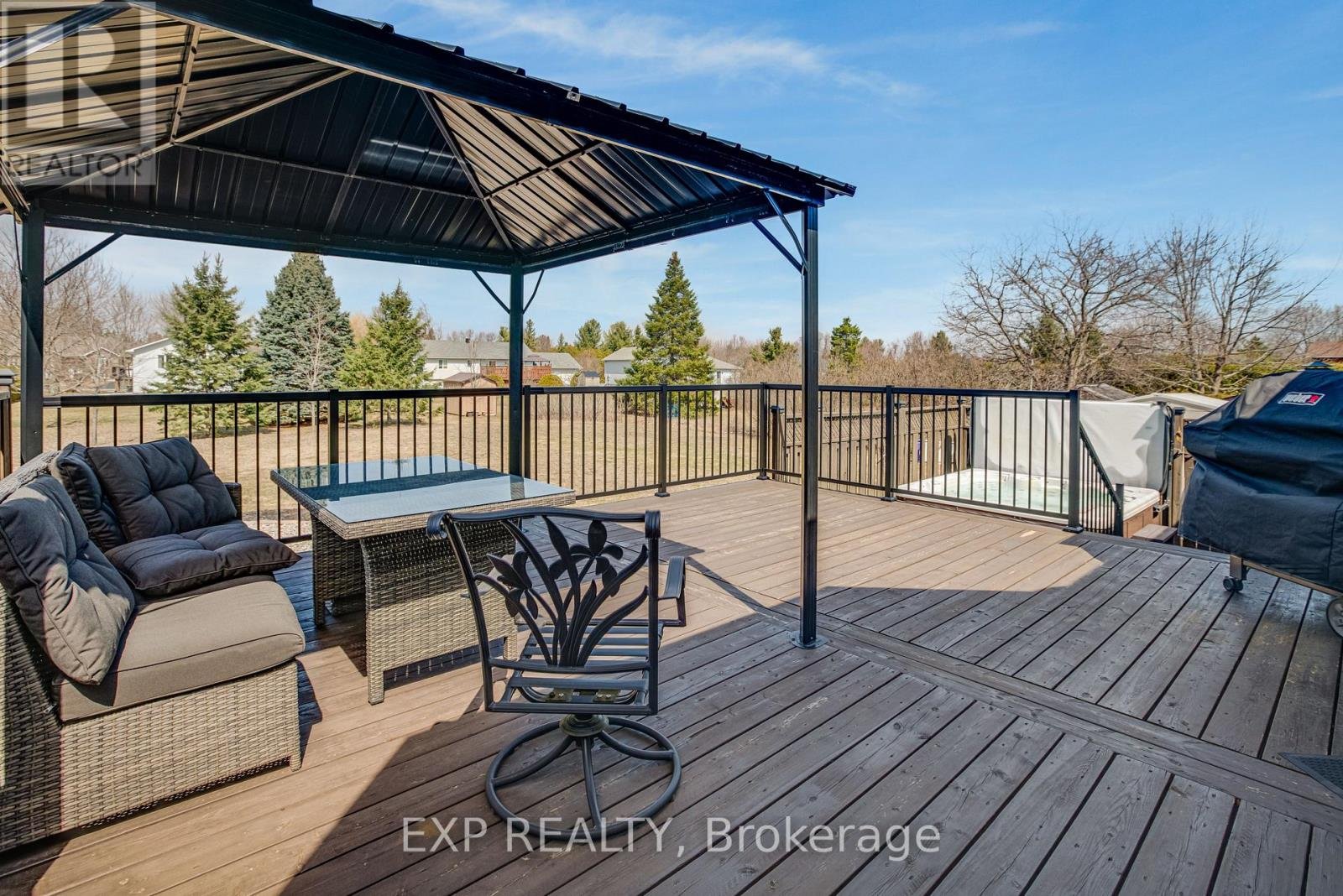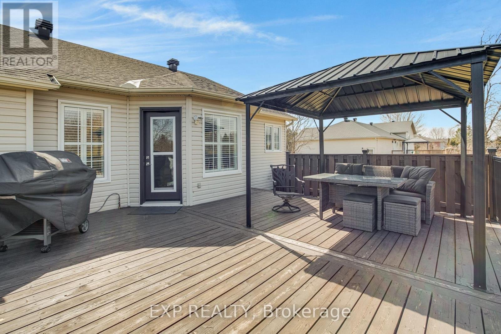 Welcome to this stunning luxury bungalow nestled in the highly sought-after community of Greely, where comfort, elegance, and space come together beautifully.From the moment you step inside, you're greeted by a grand, inviting foyer that sets the tone for the rest of the home. A versatile front living room with impressive architectural columns offers endless possibilities-perfect as a formal sitting area, home office, or even an easily convertible bedroom.The heart of the home features a warm and inviting family room with a natural gas fireplace and soaring cathedral ceilings that flow seamlessly into the dining area and kitchen. The gourmet kitchen is a dream for any home chef, offering abundant counter space, a reverse osmosis system on tap, ample storage, and a large pantry for ultimate convenience. Entertaining is effortless with easy access to the patio, BBQ area, and garage, complete with a practical mudroom and closet.Throughout the main floor, you'll find impeccable hardwood flooring, elegant crown molding, and California shutters, adding timeless sophistication to every space.The spacious primary suite is a true retreat, featuring two walk-in closets and a beautifully renovated ensuite bathroom. An additional bedroom and full bathroom complete the main level.Downstairs, the fully finished basement expands your living space with an extra bedroom, a convenient cheater ensuite, a stylish wet bar, and a massive storage/mechanical room-perfect for entertaining or hosting guests.Set on a nearly half-acre lot in a quiet, family-friendly neighborhood, the outdoor space is just as impressive. Enjoy relaxing evenings in the hot tub, unwind under the gazebo, and take advantage of the peaceful surroundings.Ideally located close to parks, schools, and amenities, and just 25 minutes from Ottawa, this exceptional property offers the perfect balance of tranquility and convenience.A rare opportunity you won't want to miss-come experience it for yourself.