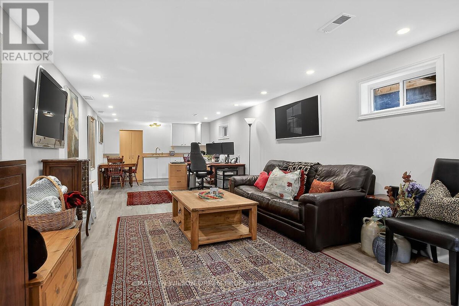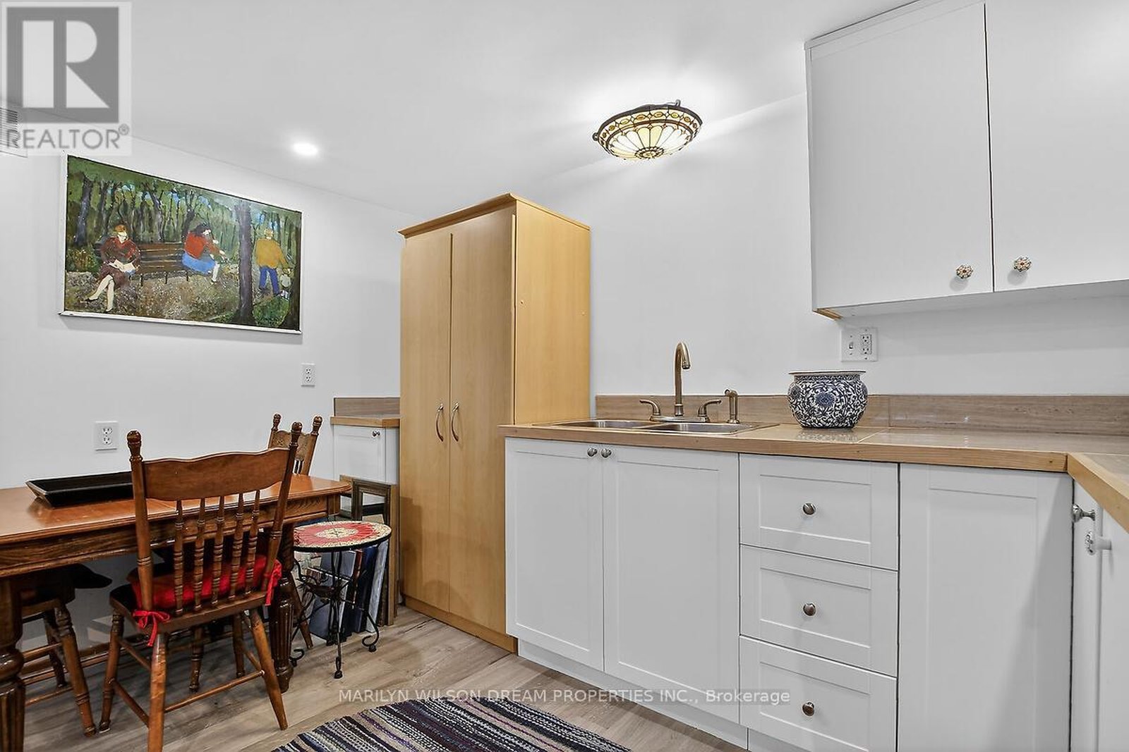 Exquisite bungalow located on quiet street and boasting no rear neighbours. Tastefully updated and exceptionally well maintained. This pristine home offers a blend of style, comfort & functionality. 3 bedrooms and 2 full baths. Hardwood throughout the main level. Floor to ceiling windows flood the home with light. Spacious living room with fireplace. Two bedrooms with attractive black framed windows. Main bath completely redone in 2025 including heated floors & towel rack. Generous sized kitchen with black-framed doors to backyard deck. Ample rich cabinetry with intelligent storage solutions for a clutter-free aesthetic. Granite counters, breakfast bar, stainless appliances & double sink. Bright dining area conveniently located off of kitchen. Side entrance to fully finished lower level with self-contained unit. Large recreation/family room, full eat-in kitchen, bedroom and full bath. Luxury vinyl flooring & an abundance of recessed lighting. Laundry located at bottom of stairs. Cedar closet off storage/workshop area. Very private rear yard. Deck and stone pathways create a seamless, elegant outdoor flow. Deck runs the entire length of the home. Custom pergola offers shade and style-perfect for outdoor lounging or dining. 2 sheds & workshop with power. Professionally landscaped grounds with mature trees and blooming flowers. Irrigation system front & back maintains greenery with ease. Architectural exterior lighting highlights the home's features after dark. Other upgrades include attic insulation, rear fence in 2025, deck stained in 2025, wood soffits with pot lights, etc. Located in a very popular Ottawa neighbourhood offering tree-lined streets and a family-friendly atmosphere. Minutes to numerous hospitals, schools, parks, shopping plazas, transit, etc. A quick commute to downtown Ottawa & easy access to the highway. Pride of ownership is evident. 3 hours notice for showings please.