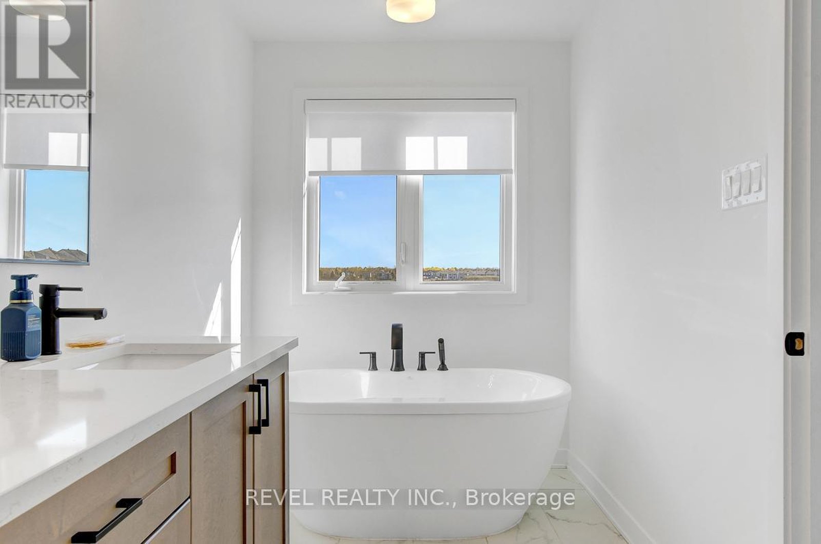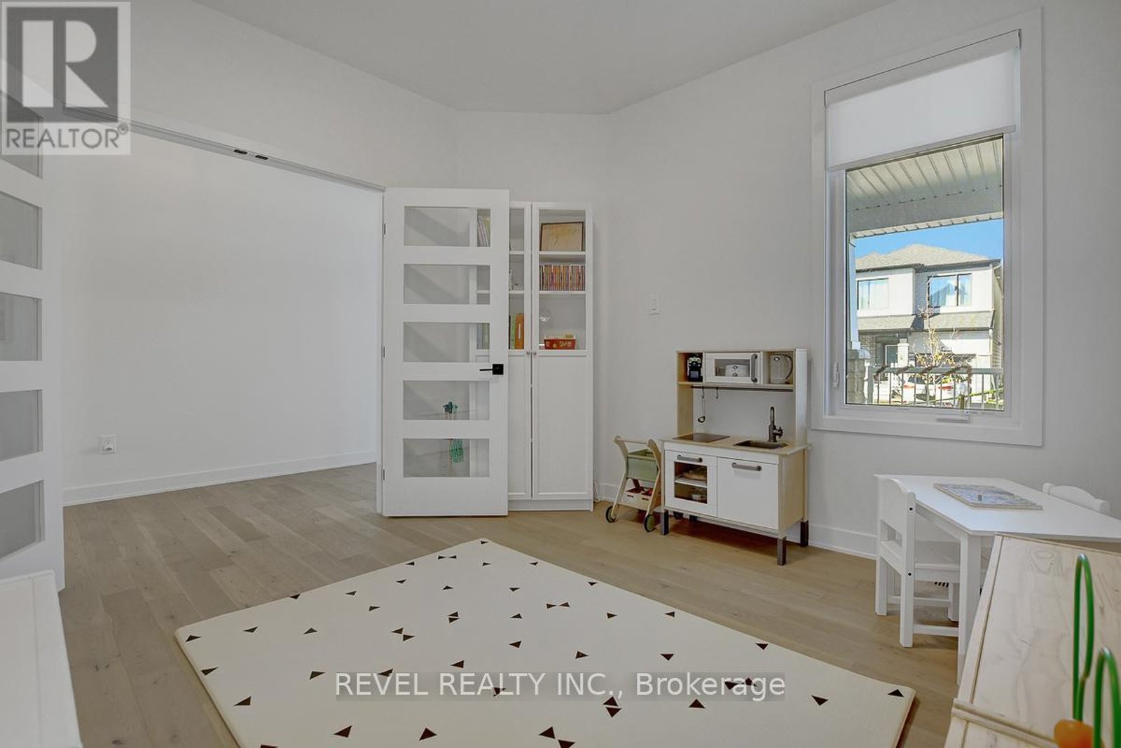 Welcome to 1022 Showman St, The Hickory by Mattamy. Over $200k in upgrades including premium lot. Beautifully designed 4-bedroom home offering 2,634 sq. Ft. of above-grade living space on a premium lot backing onto protected green space. Built in 2023, this home blends thoughtful upgrades with timeless design, delivering both style and functionality for modern family living. Stunning hardwood throughout the main and second levels. The main floor layout includes an enclosed front office and a separate formal dining room. At the heart of the home, the spacious great room features a vaulted ceiling and a gas fireplace, seamlessly connecting to a chef's kitchen with dining table, an enclosed pantry and a convenient mudroom entry from the garage. Upstairs, the primary suite offers a serene retreat with a luxurious 5-piece ensuite featuring a soaker tub and walk-in closet. Three additional bedrooms, two with walk-ins, along with an upper-level laundry room, complete this thoughtfully designed floor plan. Enjoy outdoor living at its best with an oversized custom deck, a heated saltwater above-ground pool, a fully fenced (PVC) yard, and a natural gas BBQ line. The large driveway provides parking for four vehicles, plus an additional two in the garage. The unfinished basement presents endless possibilities for future expansion. Central Vac rough-in and additional washer/dryer hookup in basement.