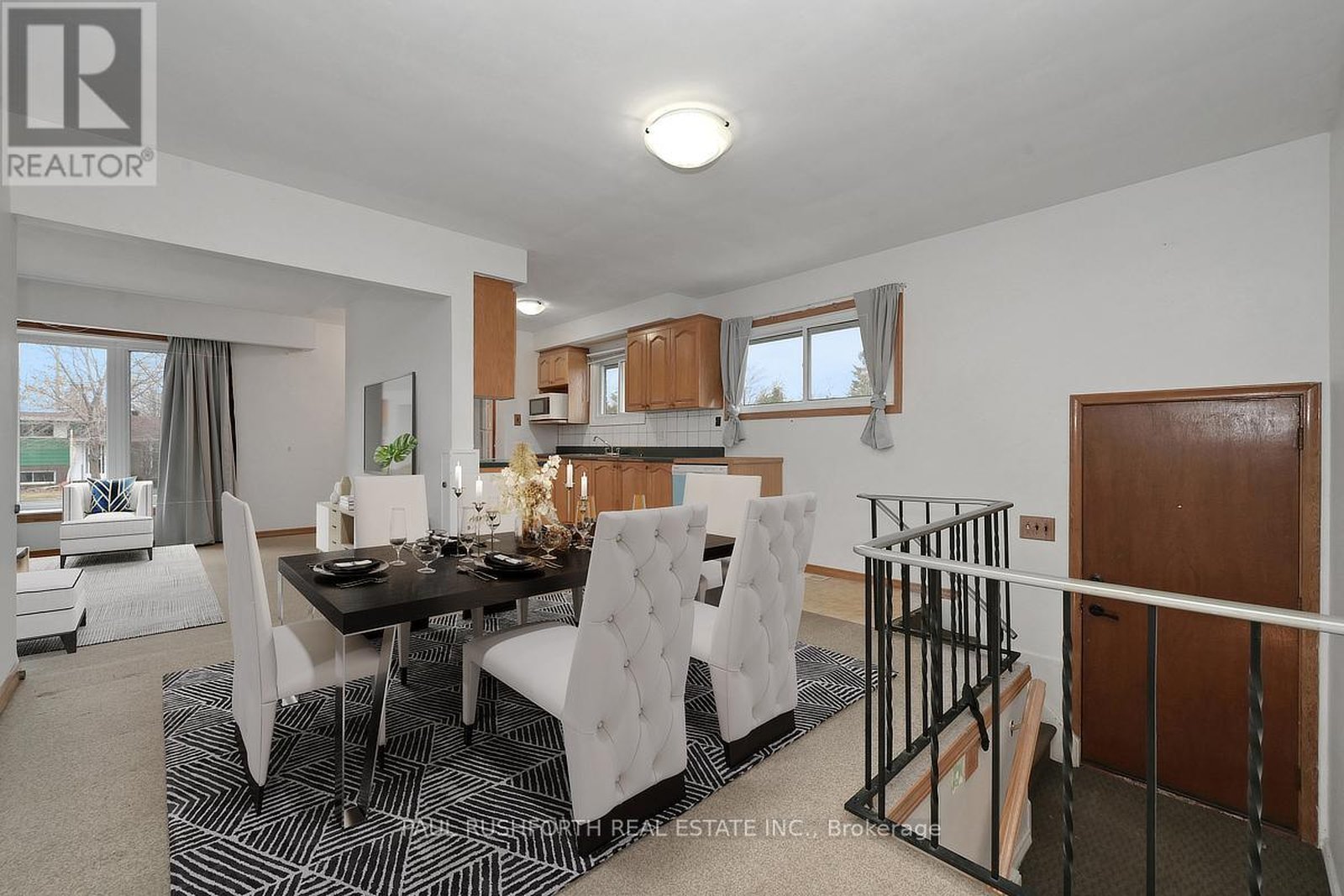 Opportunity knock!! Solid three bedroom bungalow with detached garage and no rear neighbours. This classic layout has a side door entrance to the lower level and lends itself well to an accessory apartment. The main floor offers a spacious living room, separate dining area, a galley kitchen, a full bath and three ample sized bedrooms. This design allows for all sorts of options. The lower level is partially finished, the ceiling is comfortably high for converting it to an apartment. On an oversized 50x120 lot with no side neighbour and backing onto green space including a community garden this classic bungalow is in a perfect location and offers loads of potential. Some photos have been virtually staged.