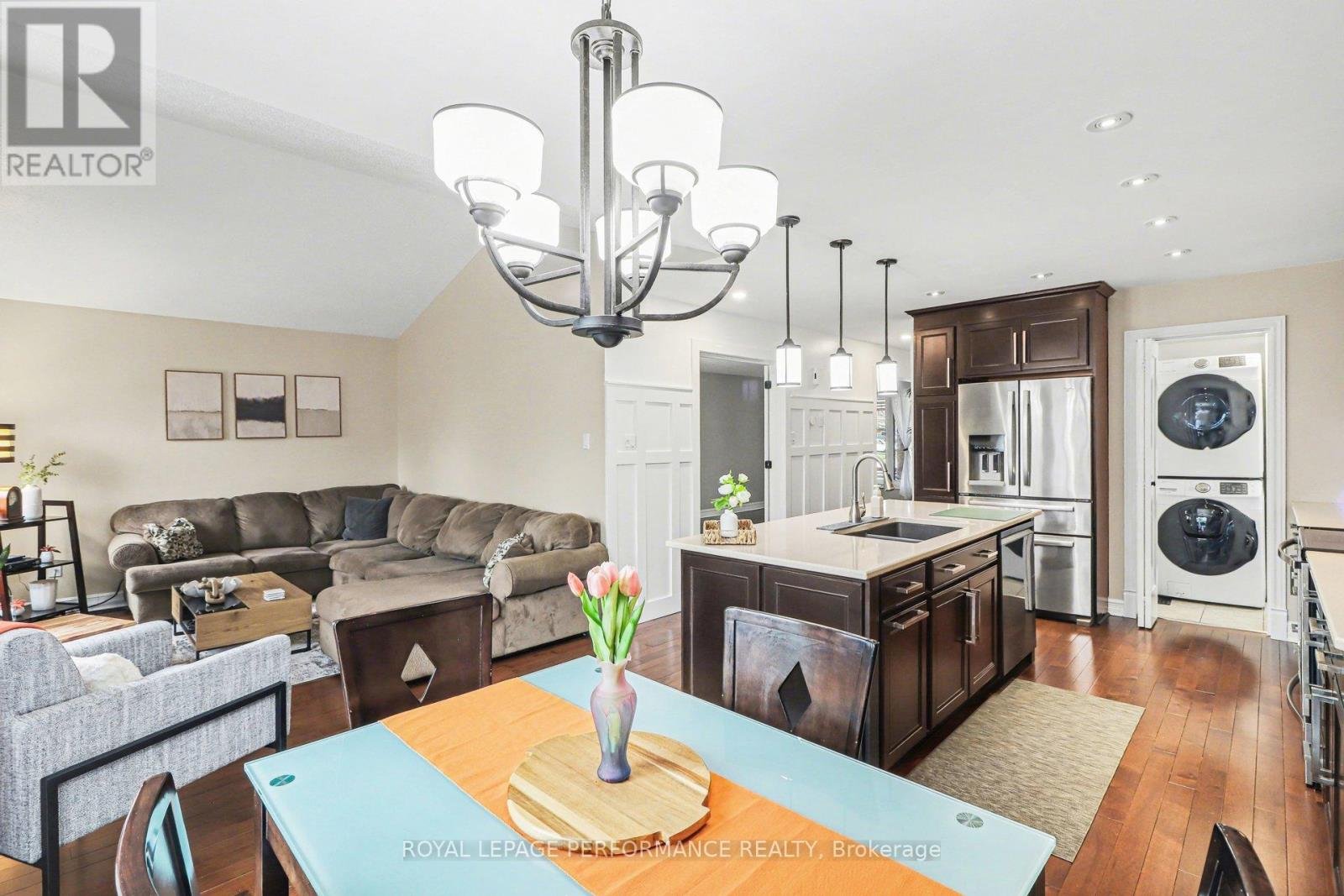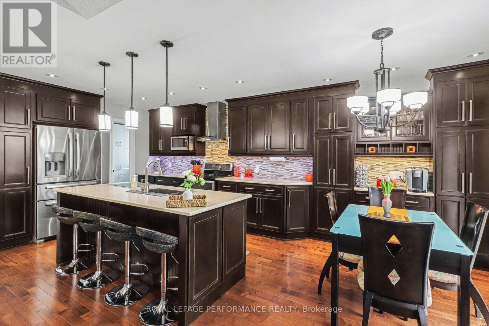Beautifully maintained & updated detached 4(+1) bedroom, 3.5-bathroom home with a double-car garage, offering over 2,600 sq. ft. of living space, ideally located on a quiet crescent in a desirable neighbourhood.A charming covered front porch welcomes you into this bright, inviting home, filled with natural light throughout the day. The main floor features a tiled foyer, two-piece powder room, elegant living and dining rooms with hardwood flooring, and a spacious family room centred around a cozy gas fireplace. The well-appointed kitchen offers ample modern cabinetry, quartz countertops, a centre island, and a sunny eating area-perfect for everyday living and entertaining.The second level boasts a generous primary bedroom with large windows, a walk-in closet, and a beautifully renovated five-piece ensuite. Three additional well-sized bedrooms and a full bathroom complete this level.The fully finished lower level adds valuable living space with a recreation room, additional bedroom, three-piece bathroom, and ample storage.Enjoy outdoor living in the fully fenced backyard featuring a patio and gazebo. Ideally located close to transit, schools, parks, shopping, restaurants, and more.Recent updates and renovations include many significant improvements over the years, including: kitchen (2014), powder room and foyer (2024), ensuite and basement bathroom (2026), furnace and A/C (2022), front door (2021), insulated garage door and front windows (2018), interlock, fence and carpet (2019), updated fireplace, and more.A beautifully updated, move-in-ready home that shows pride of ownership throughout-an opportunity not to be missed.