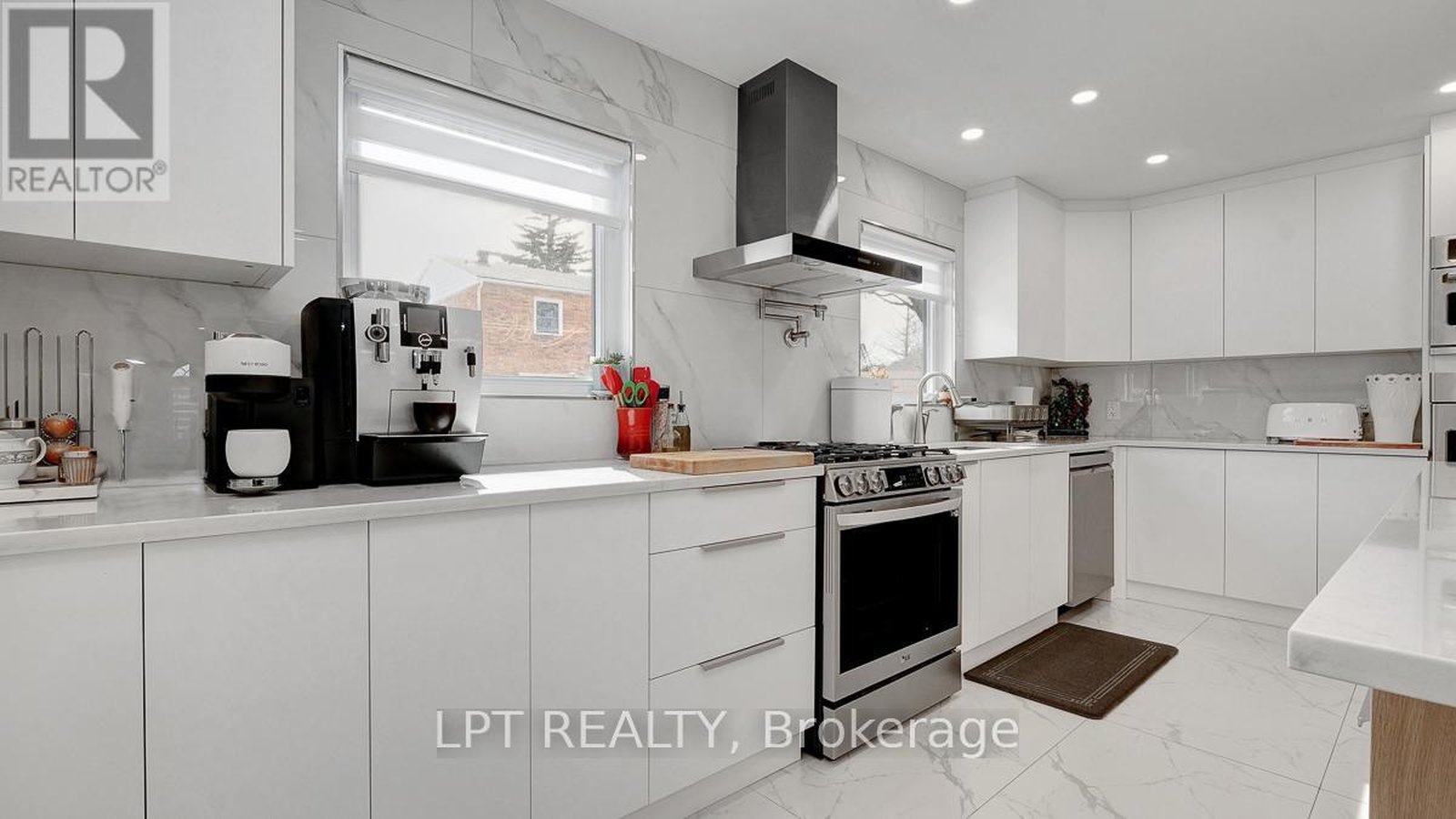 Located in sought after Playfair Park, this beautifully updated home is truly move-in ready. This spacious 4-bedroom, 4-bathroom home offers entertaining-sized living, dining, and kitchen areas throughout. A large entrance foyer welcomes you into a bright and spacious living area with gleaming hardwood floors and an additional sitting area. The windowed dining room, also featuring hardwood flooring, showcases a wood-burning fireplace with a custom granite surround and custom door. A true chef's kitchen is bright and open, boasting a large sink with pot filler faucet and a quartz topped centre island with abundant counter space and cabinetry. The centre island offers seating for four and includes storage cabinets, a wine rack, a recycle/garbage drawer, and a convenient pop-up phone charger with plug-ins. Quality appliances include a gas oven with 2 additional wall ovens, a restaurant-sized stainless steel refrigerator, and a dishwasher. The white tiled heated floors in the kitchen extend into the family room and laundry area. The bright family room overlooks the fully fenced backyard, which features partial PVC fencing, a low maintenance deck, and a gazebo - perfect for a gas BBQ. A Generac Generator is conveniently located at the side of the yard. The windowed family room also features 2 skylights, a wall air conditioning unit, pot lights, and built-in speakers. The laundry room includes an upgraded washer and dryer, a sink, and a convenient 2-piece powder room, with direct access to the double garage. The second floor features 4 spacious bedrooms, all with wall-to-wall closets, a 4-piece main bathroom, and a generous 4-piece tiled ensuite with double sinks o the primary bedroom. The fully finished basement offers a bar area, a 3-piece bathroom with shower, an office area, and ample storage space. Steps to Pleasant Park Public School and parks, and just minutes to the Ottawa Hospital.