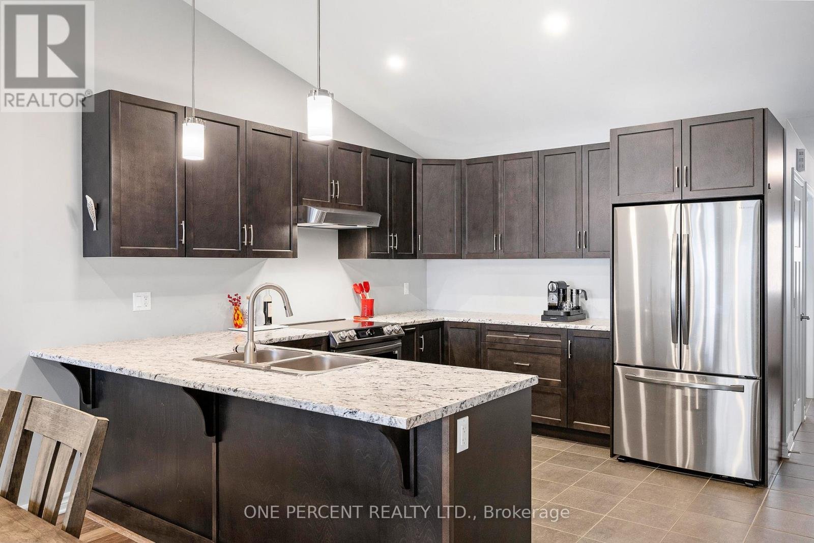 Built in 2023 in Marshall's Bay, this 3-bedroom, 3-bathroom semi-detached bungalow makes a strong first impression with stylish finishes, an open-concept layout, and vaulted ceilings that add a sense of space and light. The kitchen features stainless steel appliances and flows seamlessly into the spacious dining and living areas, making it easy to cook, host, and stay connected. A patio door off the living room extends the space outdoors, while the mudroom/laundry room just off the garage keeps the day-to-day running smoothly. The primary bedroom offers a proper retreat with a walk-in closet and a private ensuite, while a second bedroom and a full bathroom complete the main level, keeping everything you need within easy reach. The finished lower level adds meaningful living space with a spacious family room, a third bedroom, and a full bathroom, ideal for family, guests, or a home office. The attached garage is EV charger ready, adding flexibility for what comes next. Whether you are downsizing into something more efficient or buying your first home with room to grow, this layout delivers the ease of single-level living without compromise. Outside, Arnprior sits at the meeting point of the Madawaska and Ottawa Rivers, and that setting shapes everyday life. Trails, a sandy beach, and a boat launch make summers here hard to beat, while the historic downtown adds character you won't find in newer communities. A hospital, French and English schools, local shops, restaurants, and a strong sense of community round out everything you need without giving up the pace that draws people here in the first place. The commute to Kanata is approximately 25 minutes, close enough for convenience, far enough to leave the city behind. Check out the virtual tour and book your private showing today.