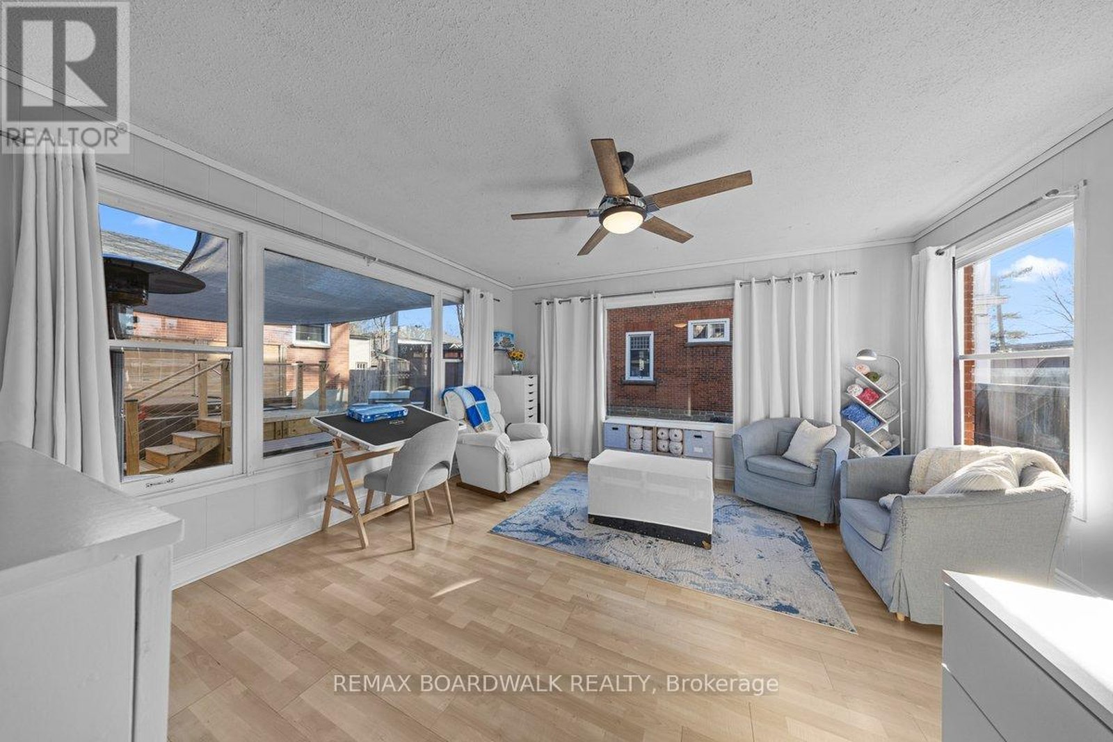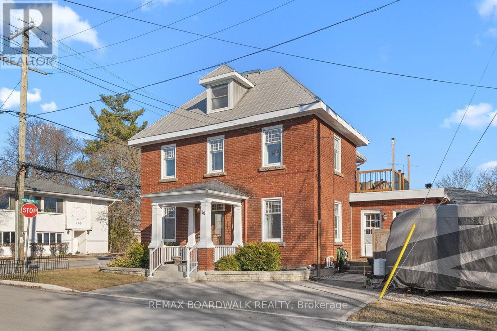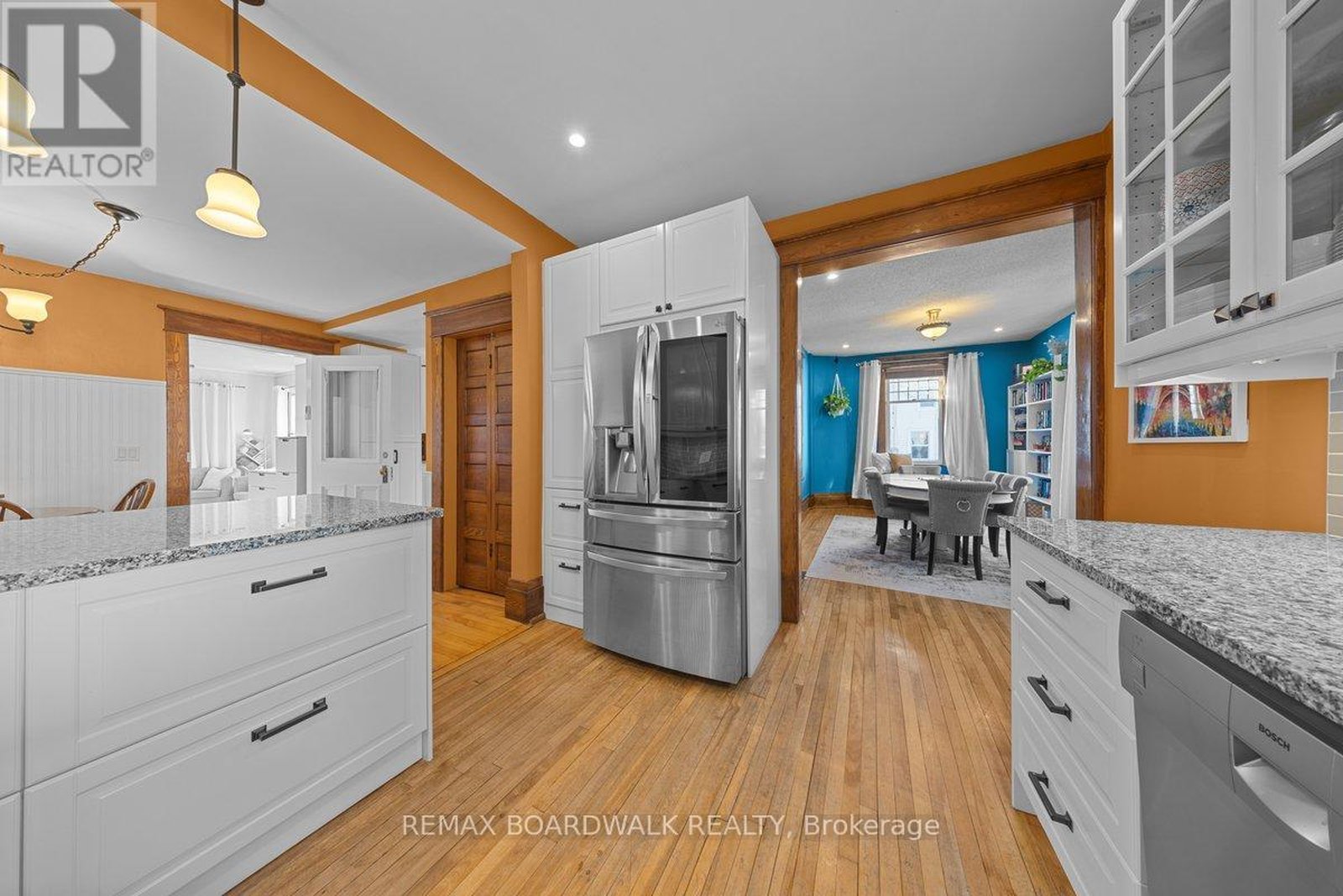 A home with presence, history, and a remarkable sense of permanence. This classic red brick Georgian offers the character and symmetry of a bygone era, thoughtfully paired with modern updates that make everyday living feel effortless. Solidly built and meticulously maintained, this is a home you can feel confident in from the moment you walk through the door. The main level is bright and spacious, anchored by a beautifully updated kitchen featuring quartz countertops, a breakfast bar, and lovely, modern, stainless steel appliances. A bonus family room/sunroom adds flexibility for both quiet evenings and lively gatherings, while the overall flow of the home feels both functional and inviting. Upstairs, the primary suite is a true retreat-generous in scale and finished with care. The ensuite is elegantly appointed with a glass shower, double vanity with granite, and a separate soaker tub, creating a space that feels calm, refined, and quietly indulgent. Three additional bedrooms and a full bath complete the second level. (One of the bedrooms is so large, it could be split back into 2 rooms, bringing the total up to 5 beds if so desired.) Outside, the property continues to impress. A large fenced yard offers space to relax, play, and entertain, complemented by a rebuilt rear deck and rebuilt second-storey deck-perfect for enjoying the seasons. Thoughtful upgrades include interlock landscaping, a newly built RV parking area complete with a 30-amp plug, and a brand new shed (2025). All details have been considered, with updated hot tub steps (2024) and a metal roof in excellent condition. Comfort and efficiency have not been overlooked. A new heat pump in the primary suite comes with a 10-year warranty, offering peace of mind for years to come. From its enduring construction to its long list of improvements, this home has been exceptionally well cared for. There is nothing to do here but move in... and enjoy.