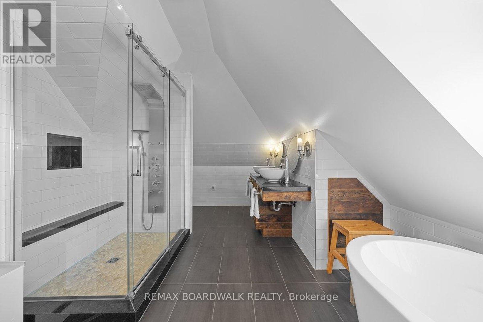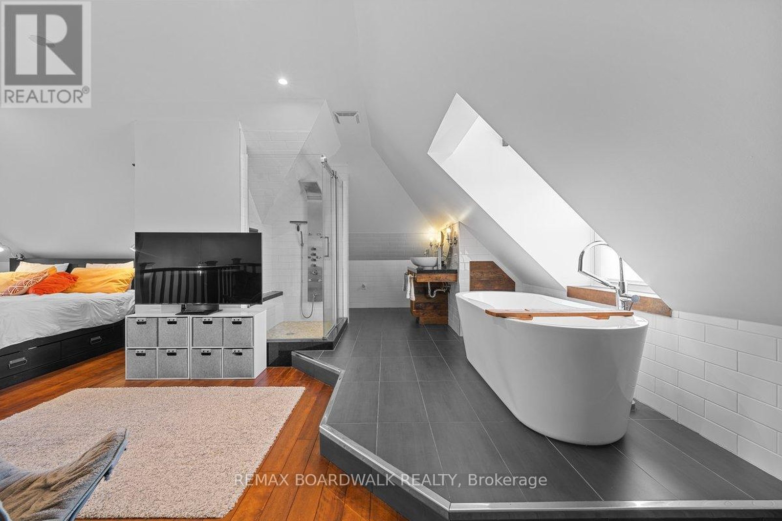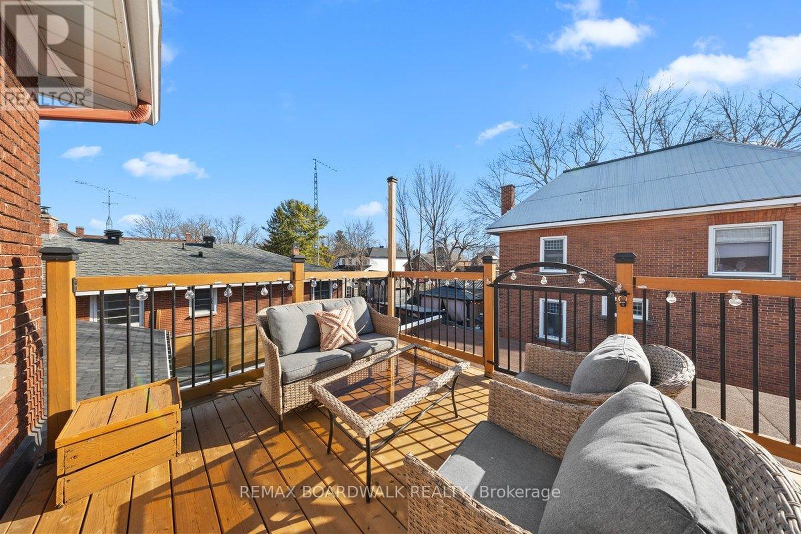 A home with presence, history, and a remarkable sense of permanence. This classic red brick Georgian offers the character and symmetry of a bygone era, thoughtfully paired with modern updates that make everyday living feel effortless. Solidly built and meticulously maintained, this is a home you can feel confident in from the moment you walk through the door. The main level is bright and spacious, anchored by a beautifully updated kitchen featuring quartz countertops, a breakfast bar, and lovely, modern, stainless steel appliances. A bonus family room/sunroom adds flexibility for both quiet evenings and lively gatherings, while the overall flow of the home feels both functional and inviting. Upstairs, the primary suite is a true retreat-generous in scale and finished with care. The ensuite is elegantly appointed with a glass shower, double vanity with granite, and a separate soaker tub, creating a space that feels calm, refined, and quietly indulgent. Three additional bedrooms and a full bath complete the second level. (One of the bedrooms is so large, it could be split back into 2 rooms, bringing the total up to 5 beds if so desired.) Outside, the property continues to impress. A large fenced yard offers space to relax, play, and entertain, complemented by a rebuilt rear deck and rebuilt second-storey deck-perfect for enjoying the seasons. Thoughtful upgrades include interlock landscaping, a newly built RV parking area complete with a 30-amp plug, and a brand new shed (2025). All details have been considered, with updated hot tub steps (2024) and a metal roof in excellent condition. Comfort and efficiency have not been overlooked. A new heat pump in the primary suite comes with a 10-year warranty, offering peace of mind for years to come. From its enduring construction to its long list of improvements, this home has been exceptionally well cared for. There is nothing to do here but move in... and enjoy.
