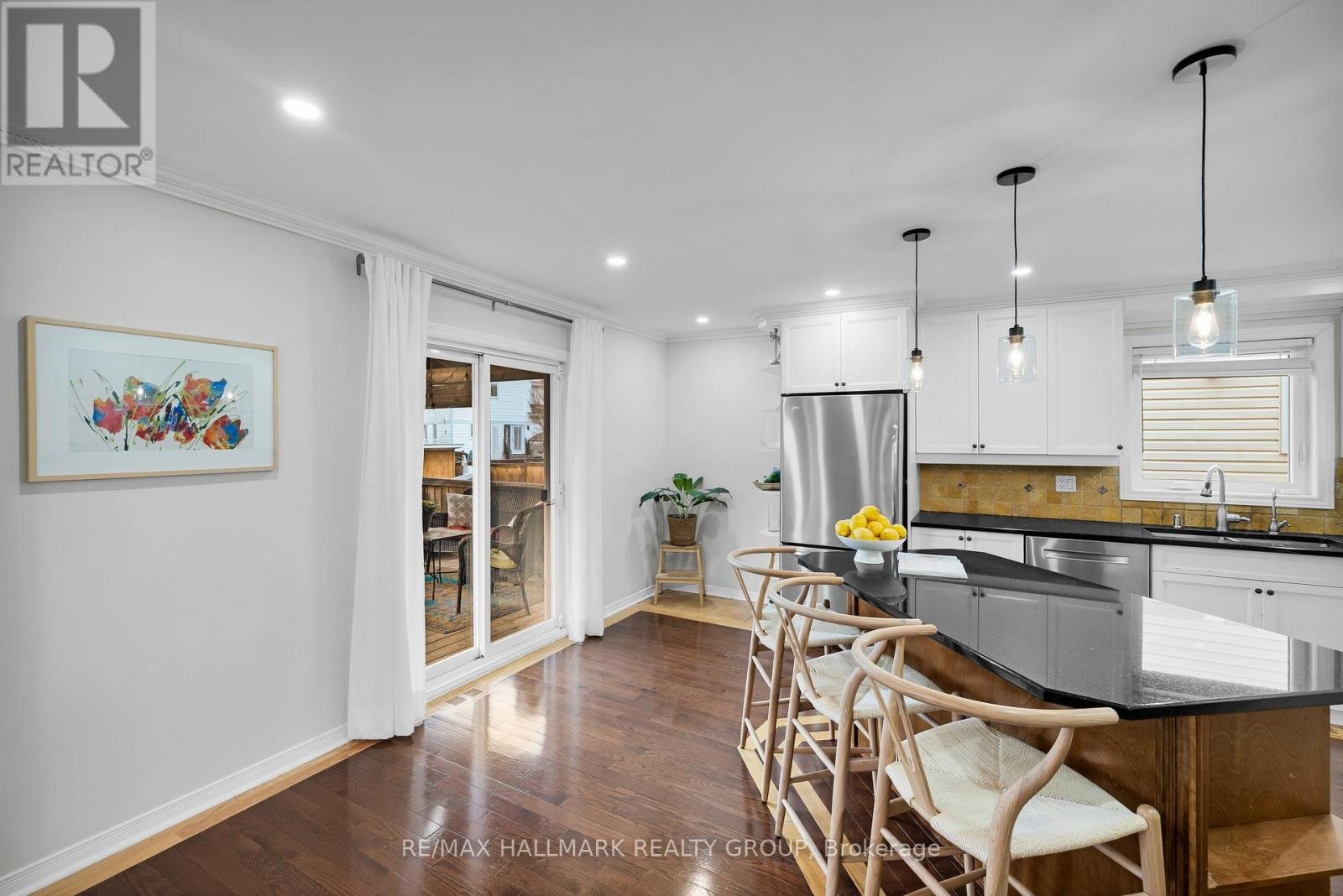 Well-maintained 3+2 bedroom, 3.5 bathroom detached home with 2,282 sq ft plus finished basement, double garage, and bright corner lot with landscaped yard and screened-in porch in Hunt Club Park/Greenboro. Hardwood throughout main and upper levels. Functional layout with spacious living and dining areas and updated kitchen featuring stainless steel appliances, black quartz counters, white cabinetry, and large island. Extra-large family room with gas fireplace. Upper level offers 3 bedrooms including a generous primary suite with walk-in closet and oversized ensuite with separate tub and enclosed shower. Finished basement includes 2 additional rooms, rec room, and full bath. Well maintained and updated throughout. Close to parks, schools, transit, South Keys, and amenities.