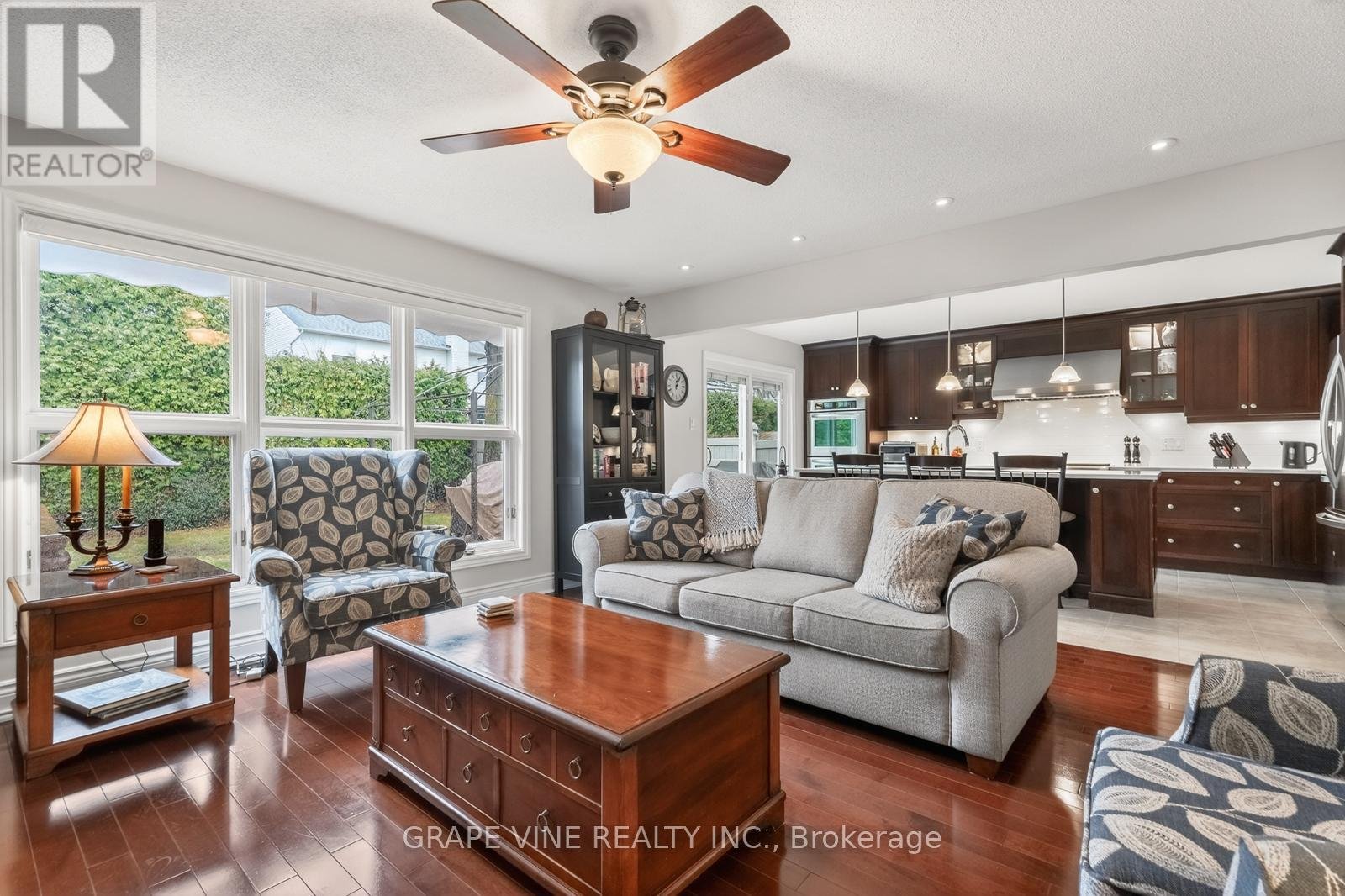 Deceptively large at approx. 3,500 sq. ft. of finished space, and one of the nicest bungalows you will find in Stittsville and beyond. Extremely well maintained. 2+2 bedrooms (3rd bedroom on main was converted into a gorgeous walk-in closet off the primary). Three full baths, beautiful kitchen incl. custom cherry cabinets, quartz countertops, high-end appliances, new patio door to fenced and landscaped lot with excellent privacy. Main floor has maple hardwood, pot lights, living, dining, family rooms, large entrance area, gas fireplace, mud room with laundry hook-ups, primary with full ensuite, and a 2nd bedroom and 2nd full bath. Lower level is finished with 2 additional bedrooms, 4 piece bath, home theatre, large finished laundry room, workshop, storage, utility room. Roof 2012 with 35 yr. shingles, High efficiency furnace 2014 and cold climate heat pump 2024.