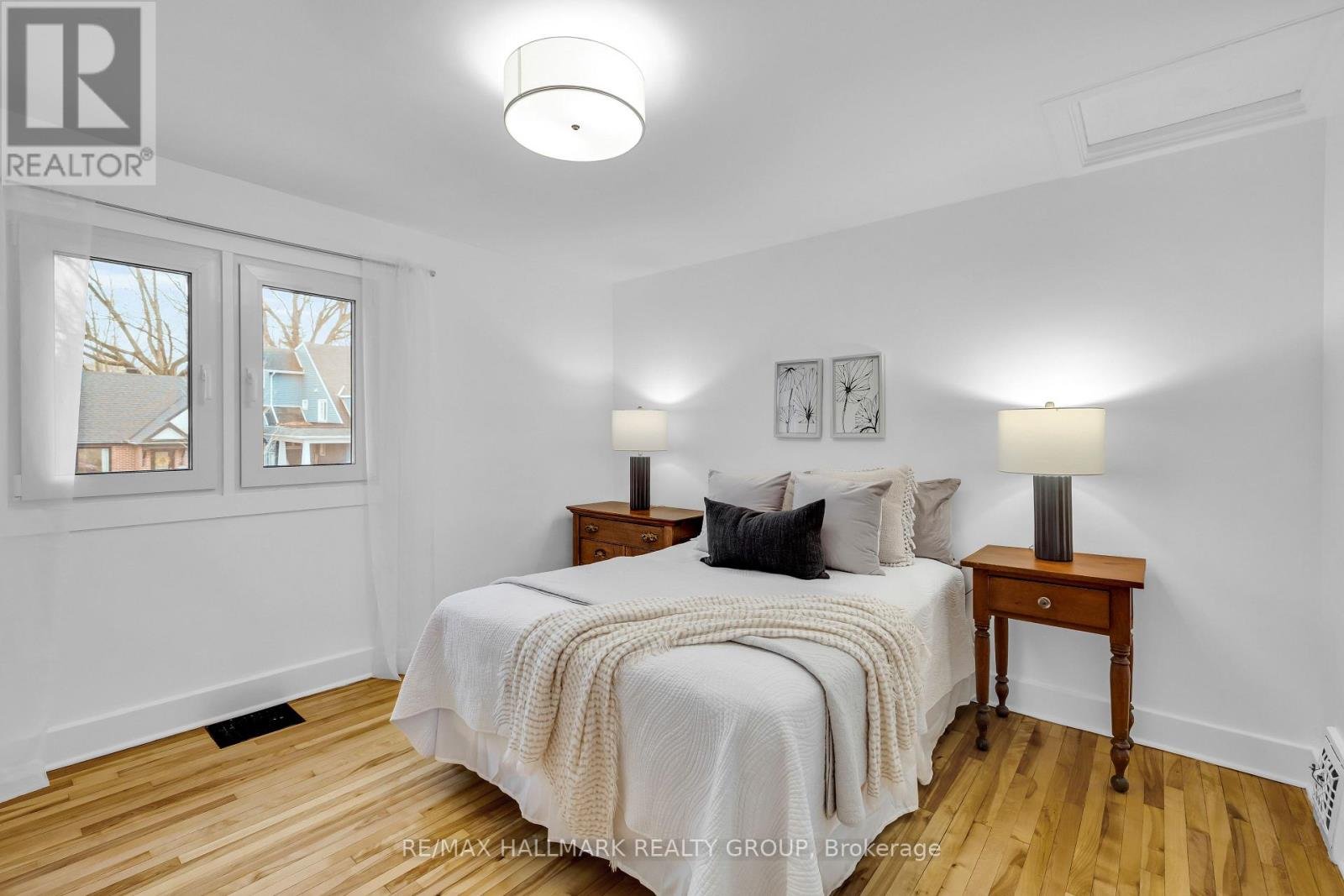 Beautifully renovated 3-bedroom, 3 bathroom 2-storey home set on a generous lot in the sought-after Kingsview Park neighbourhood. Step inside to the large foyer and convenient main floor powder room. With a list of thoughtful upgrades, including hardwood floors throughout, this home offers a comfortable, easy flow for everyday living. Spacious living room is a great place to unwind, complete with a gas fireplace for added comfort and opens to the separate dining room with patio doors (2021) leading out to the deck, extending your entertaining area in the summer months. Renovated kitchen (2021) with cork flooring, stainless steel appliances, and a gas stove. A standout feature is the spacious main level primary bedroom retreat, complete with a private 4-piece ensuite featuring a glass shower and soaker tub-perfect for convenient, one-level living and a rare find in this style of home. This home also features greater-than-average insulation, bringing it to slightly above (better than) the level of a new build, along with tilt-and-turn triple-glazed windows (2020) that enhance the home's "greenness," improve comfort year-round, and contribute to lower operating costs through increased energy efficiency. On the second floor, you'll find two well-sized bedrooms with ample closet space and a renovated 4-piece bathroom. Private driveway with single detached garage and large backyard fully enclosed with a new wood fence (2020). Major updates provide peace of mind, including a new roof (2020), new front door and metal siding (2020), and a furnace and heat pump (2023), along with an ERV system (2023). Solar panels were added in 2024, further improving energy efficiency and long-term savings. Located in a family-friendly area steps to the walking trails along the Rideau River, parks, and everyday amenities.48 hour irrevocable on all offers as per form 244.