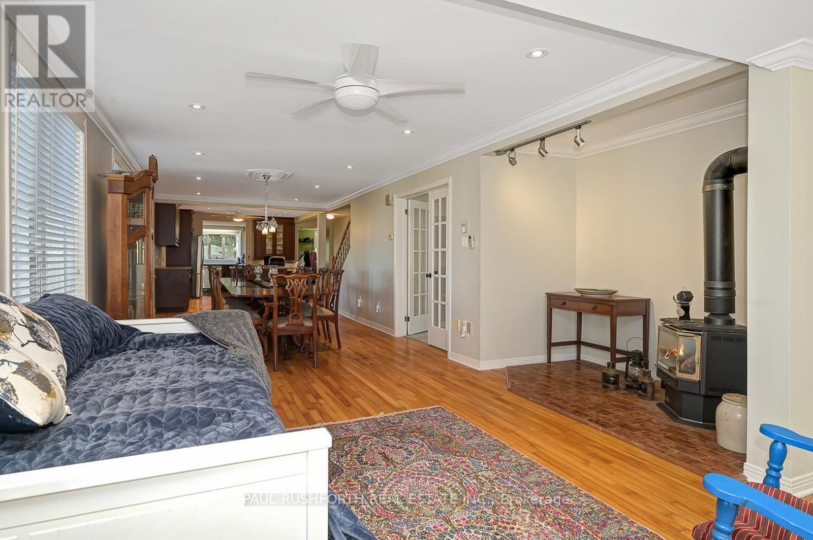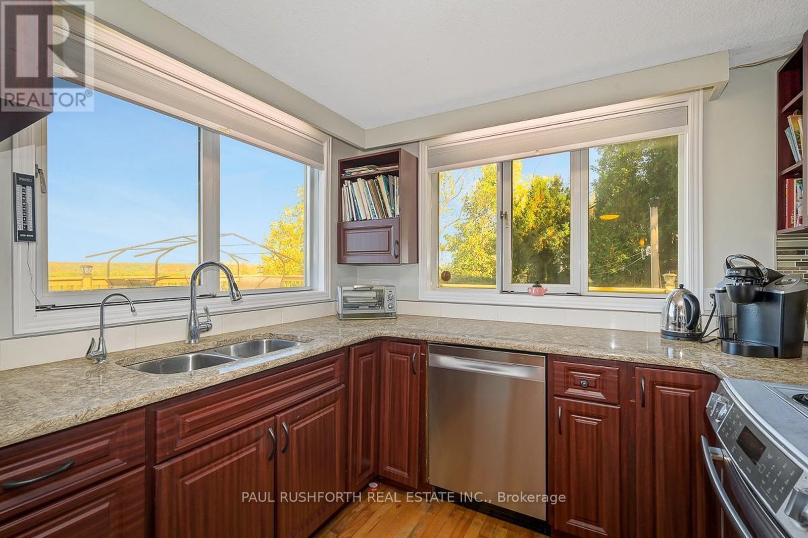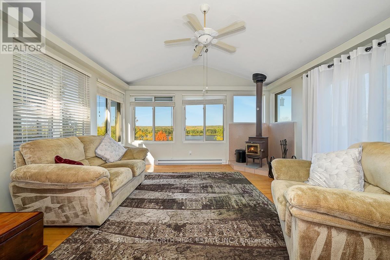 Absolutely one of a kind property on a 1.73 acre lot with unbelievable views of the Ottawa river and Gatineau hills. This unique home offers an open layout with a loads of function including a kitchen that offers lots of cabinet and counter space with a handy breakfast bar, quartz counters and stainless appliances overlooking the expansive living and dining room that can accommodate any sized table and features a gas fireplace, a sunroom with wood burning stove and incredible views, a family room, a den/library, a newly renovated full bath and laundry room. The upper level boasts three large bedrooms, a large foyer and a stunning brand new full bath with walk in glass shower, dual sinks with lighted/fog free mirrors and a giant soaker tub. With mostly hardwood throughout the house, brand new fridge, dishwasher and microwave, ultra quiet windows, fresh paint and new carpets and boasting a large deck on the east side and a deck with gazebo on the west side, two storage sheds, an oversized detached insulated and heated garage all on a huge private lot with a park nearby and just minutes to town this is one of those homes you just have to see to believe. Some photos have been virtually staged.