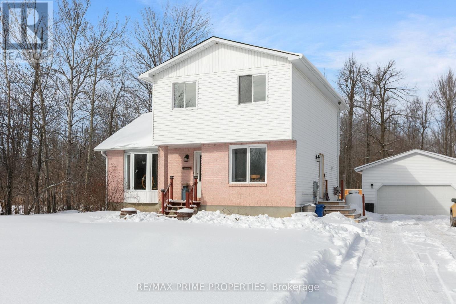 Welcome home to this charming 4-bedroom, 2-bathroom country retreat, perfectly situated on a quiet road with approximately 0.5 acres to call your own. Offering a thoughtful layout and inviting living spaces, this home features an open-concept kitchen and dining area, along with a separate living room ideal for relaxing evenings. The main level also includes an updated powder room, while upstairs you'll find all three bedrooms and a renovated 3-piece bathroom. The fully finished lower level adds valuable additional living space and includes a dedicated office, perfect for working from home or creating a hobby area. Step outside to enjoy a spacious wrap-around back deck with two separate sliding doors leading to the backyard, making indoor-outdoor living effortless. A detached 26' x 21' garage provides ample room for parking, storage, or workshop space. Recent updates include a propane furnace (2022), central air (2023), new back deck, fresh paint throughout (2026), new living room flooring, some new drywall in the kitchen, and a new hood fan for the stove. Conveniently located approximately 40 minutes to Ottawa's south end and just 20 minutes to Highway 417, with both Winchester and Chesterville less than 10 minutes away offering shopping, schools, and recreation. A wonderful opportunity to enjoy peaceful country living without sacrificing accessibility.