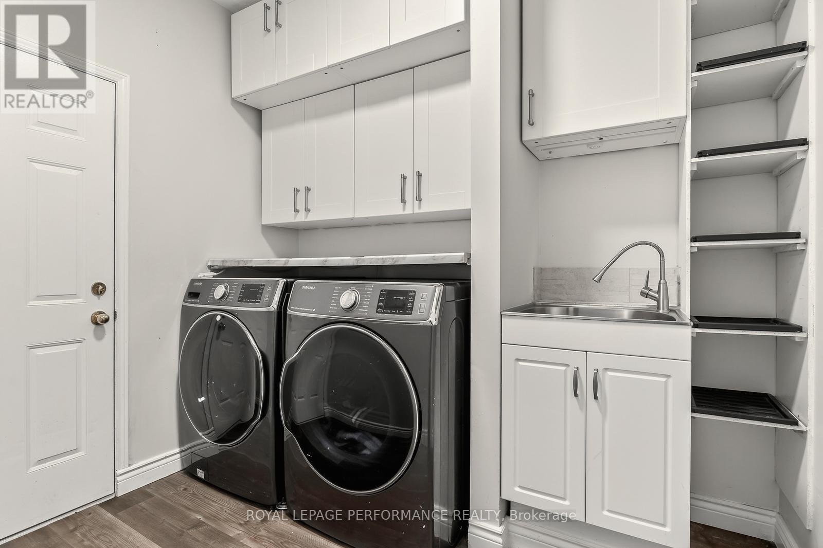 Set on a quiet street with minimal traffic, this beautifully maintained 6-bed, 4-bath home with a 2-car attached garage offers 2,352 sq ft above grade (as per MPAC) plus a fully finished basement, with 4 bedrooms upstairs and 2 more in the basement. With many young families already on the street, a true sense of community is built right in. The surrounding area is hard to beat. Parks, a running track, baseball fields, a soccer pitch, an outdoor rink, walking paths, and playgrounds are all close by, along with schools across four different boards covering both elementary and high school. Shops and restaurants are just minutes away, and the Trim Park & Ride is nearby with the LRT extension on its way. Inside, the main floor has separate living and dining rooms, a dedicated office, a mudroom, and a powder room. The renovated kitchen features quartz countertops, an undermount double sink, pot drawers, a pantry, in-cabinet lighting, and stainless steel appliances, including a double2 oven and French door fridge. An added breakfast bar adds casual dining space, and direct access to the backyard makes summer entertaining effortless. The adjacent family room is anchored by a natural gas fireplace and is the perfect place for winding down to watch your favourite TV show, sporting event or kids' show. Upstairs, the primary suite has a large walk-in closet and a 5-piece ensuite with a soaker tub, stand-up shower and double sinks. The three additional bedrooms are all comfortably sized and share a full 4-piece bathroom. The fully finished basement has a large rec room with pot lights, two additional bedrooms, a half bath, a utility room, and ample storage. Out back, the fully fenced and landscaped yard includes two gazebos, a hot tub, and a storage shed.