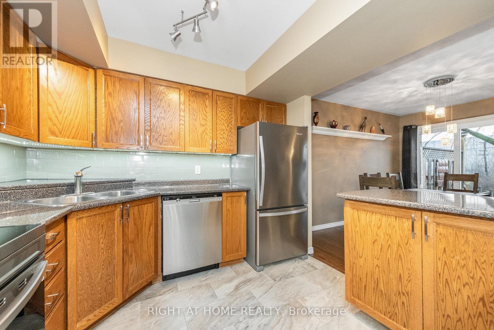 Ideally located just minutes from downtown Ottawa, this immaculate freehold townhouse offers the perfect blend of comfort, style, and convenience. With easy access to the Queensway, shopping, and public transit, it's an ideal choice for busy professionals and families alike. Enjoy being just moments from St. Laurent Shopping Centre, Trainyards Shopping Centre, and situated between the Tremblay and St. Laurent O-Train Station for easy commuting across the city. Beautifully maintained and thoughtfully updated, this home features a bright open-concept main level with rich dark hardwood flooring in the living and dining areas. The recently updated kitchen is both stylish and functional, showcasing stainless steel appliances, new countertops, ceramic tile backsplash and ample workspace. Patio doors lead to a private, fully fenced backyard with a deck, perfect for entertaining, and no rear neighbours for added privacy. Upstairs, you'll find a spacious primary bedroom along with a generously sized second bedroom. The updated bathroom is a true highlight, complete with elegant finishes and a relaxing whirlpool bathtub.The fully finished lower level expands your living space with a cozy family room, a convenient 2-piece bathroom, and plenty of storage. Additional features include central air conditioning and furnace (2017), new patio door, and two parking spaces including a new automatic garage opener. Smoke-free and pet-free, this turnkey home is move-in ready and offers exceptional value in a sought-after location. Don't miss this fantastic opportunity!