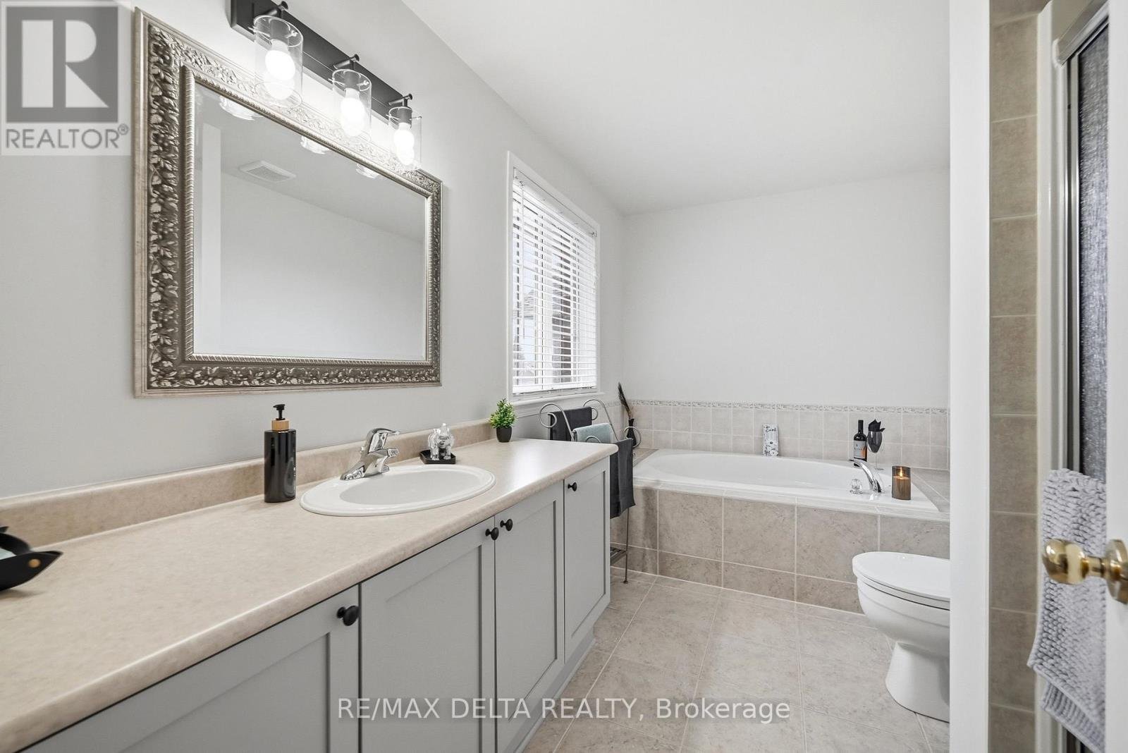 Don't miss this incredible opportunity! This stunning Rockland home offers a rare 3-car garage, a large private lot, and a quiet neighborhood setting. Step inside to find hardwood and ceramic floors, spacious living and dining rooms, and an open-concept kitchen with a bright breakfast nook and patio doors leading to a show-stopping backyard patio. The soaring cathedral ceilings in the family room and the natural gas fireplace make this space truly special. The second level features three large bedrooms, a stylish main bath, and a luxurious ensuite with a soaker tub and separate shower. The fully finished lower level adds amazing value with a gym/music room, an additional family room, a fourth bedroom, and a full bathroom - perfect for guests or extended family. This home is spotless, well maintained, and ready for its next owners. Have a look at the URL video for additional pictures.
