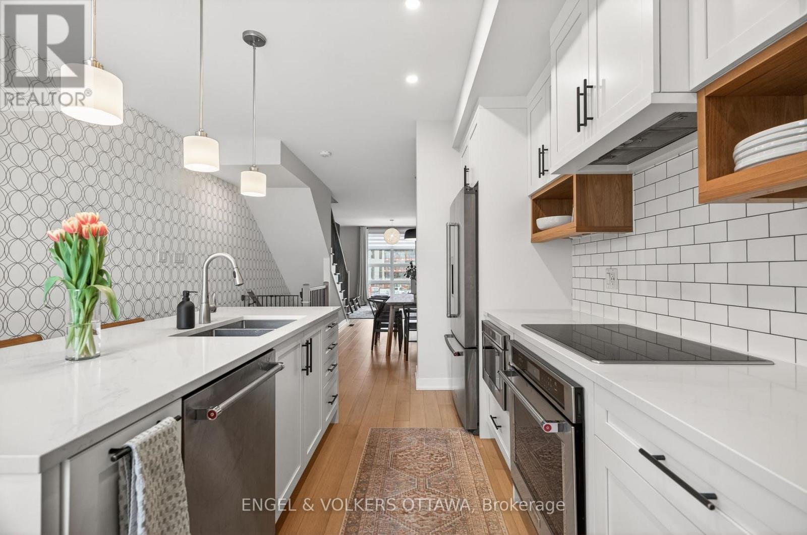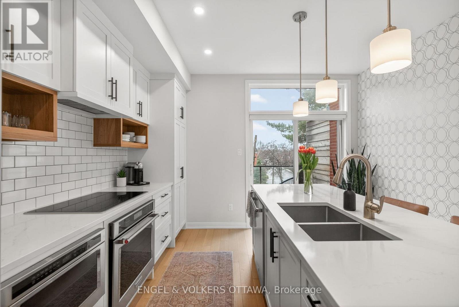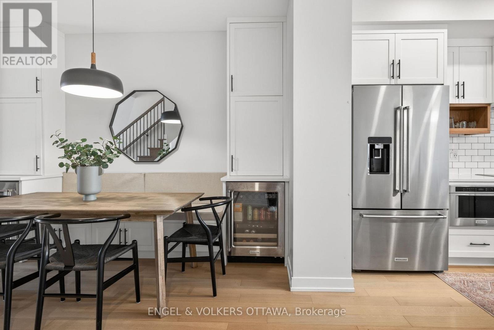 Welcome to 55 Oblats Avenue in the heart of Greystone Village, Old Ottawa East - where modern design meets an exceptional riverside lifestyle. This beautifully upgraded home offers a bright, open-concept layout with clean lines and large windows that fill the space with natural light. The main living area flows seamlessly into a thoughtfully enhanced dining space featuring custom cabinetry, a built-in bistro-style banquette, dual beverage fridges, and a statement light fixture, perfect for both everyday living and entertaining.The contemporary kitchen is designed with both style and function in mind, offering sleek finishes and ample storage while connecting effortlessly to the living and dining areas. Sliding patio door leads to private balcony with BBQ line and space for al fresco dining. The spacious primary bedroom features a full wall of custom built-in closets and a well-appointed ensuite with an extended vanity and walk-in glass shower. A second bedroom includes integrated wardrobe storage and a built-in desk, ideal for guests or a home office. The ground level features a spacious den, ideal as a family room, playroom, office, or flexible guest space. A stylish powder room is conveniently positioned near the attached garage, alongside a custom mudroom closet. The foyer also includes a built-in entry closet for added convenience. The finished basement offers valuable additional living space, currently set up as a versatile area for a home office, lounge, and compact gym. Set within the award-winning Greystone Village community, this home is steps to the Rideau River, scenic pathways, parks, and just minutes to downtown, the Canal, and all the amenities of Main Street. A perfect blend of design, functionality, and location.