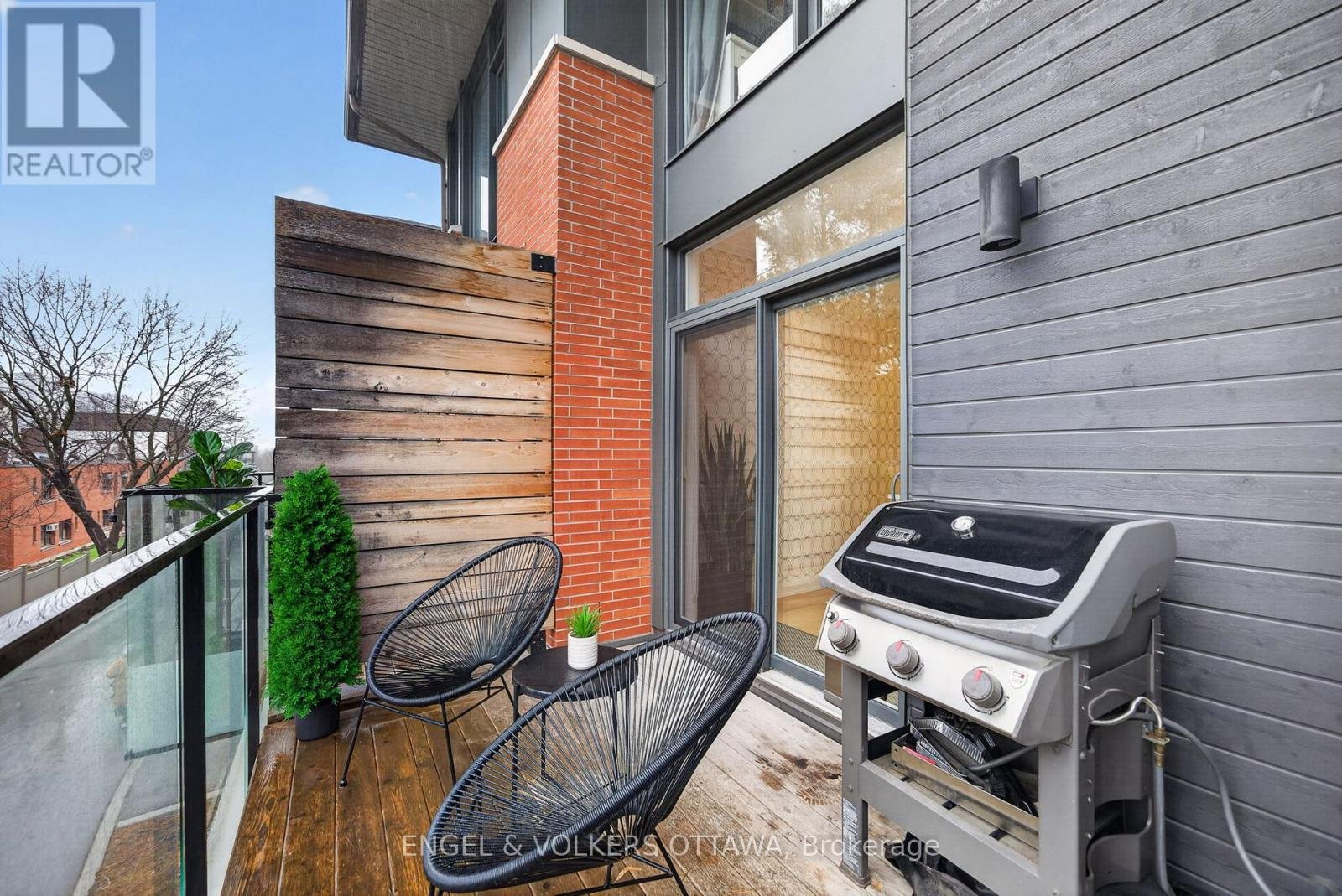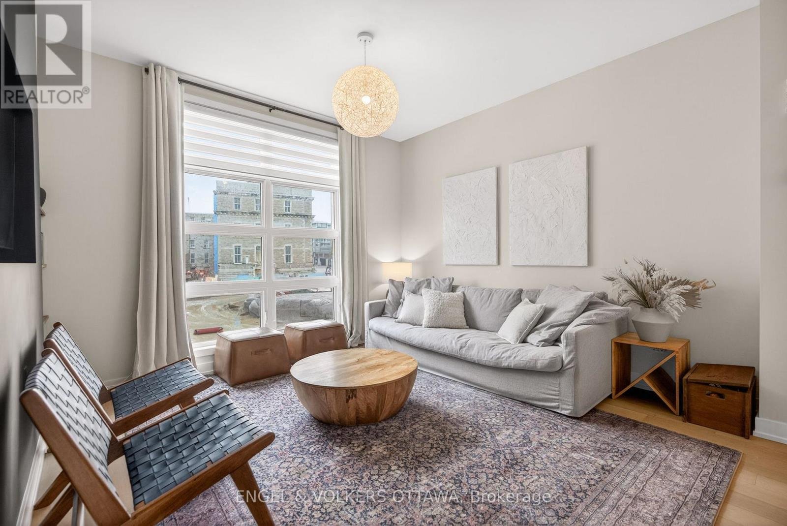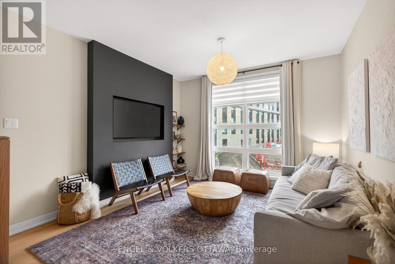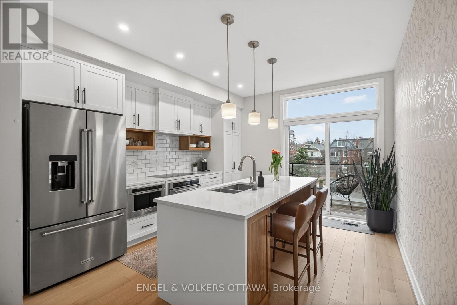 Welcome to 55 Oblats Avenue in the heart of Greystone Village, Old Ottawa East - where modern design meets an exceptional riverside lifestyle. This beautifully upgraded home offers a bright, open-concept layout with clean lines and large windows that fill the space with natural light. The main living area flows seamlessly into a thoughtfully enhanced dining space featuring custom cabinetry, a built-in bistro-style banquette, dual beverage fridges, and a statement light fixture, perfect for both everyday living and entertaining.The contemporary kitchen is designed with both style and function in mind, offering sleek finishes and ample storage while connecting effortlessly to the living and dining areas. Sliding patio door leads to private balcony with BBQ line and space for al fresco dining. The spacious primary bedroom features a full wall of custom built-in closets and a well-appointed ensuite with an extended vanity and walk-in glass shower. A second bedroom includes integrated wardrobe storage and a built-in desk, ideal for guests or a home office. The ground level features a spacious den, ideal as a family room, playroom, office, or flexible guest space. A stylish powder room is conveniently positioned near the attached garage, alongside a custom mudroom closet. The foyer also includes a built-in entry closet for added convenience. The finished basement offers valuable additional living space, currently set up as a versatile area for a home office, lounge, and compact gym. Set within the award-winning Greystone Village community, this home is steps to the Rideau River, scenic pathways, parks, and just minutes to downtown, the Canal, and all the amenities of Main Street. A perfect blend of design, functionality, and location.
