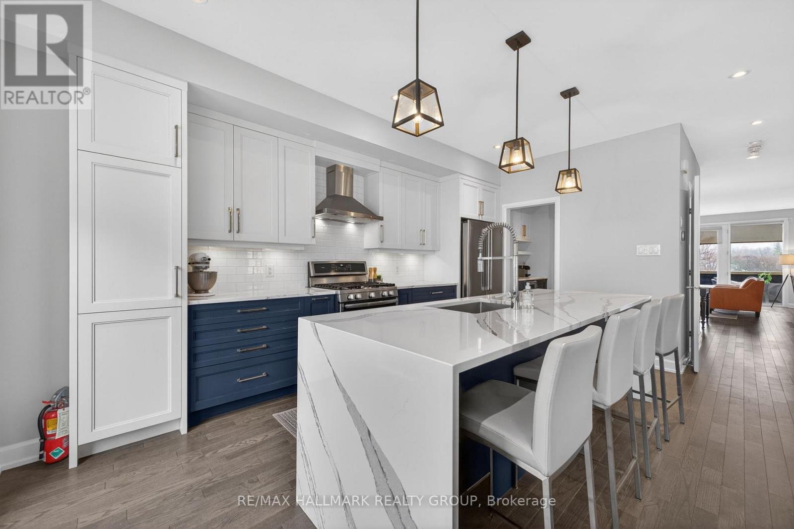 Welcome to 30 Telmon, an exceptional EQ Homes residence in the heart of Greystone Village, thoughtfully designed by acclaimed architect Barry Hobin. This beautifully finished 3-bedroom, 4-bath home blends modern elegance, functional design, and an unbeatable Old Ottawa East lifestyle in one of the city's most desirable master-planned communities .Set on a corner lot, this home enjoys enhanced sun exposure and an abundance of natural light, adding warmth and brightness throughout the living spaces. Inside, the main level offers a sophisticated open-concept design with hardwood flooring, smooth ceilings, a striking fireplace feature wall, and a beautifully appointed kitchen with quartz countertops, upgraded backsplash, upgraded faucet, and gas stove connection. The layout is as stylish as it is practical, ideal for both everyday living and effortless entertaining. Upstairs, the spacious primary retreat features 2 walk-in closets and a luxurious ensuite, while 2 additional bedrooms and a full bath provide flexibility for family, guests, or a home office. The finished basement adds valuable living space with a comfortable family room and additional bath, perfect for movie nights, a playroom, gym, or work-from-home setup. With its attached garage, outdoor terrace/deck space, air conditioning, quality upgrades, and sun-filled corner setting, this is a rare opportunity to own a standout home in a coveted riverfront neighbourhood known for its walkability, architecture, green space, and proximity to Main Street, the Rideau River, the Canal, and downtown Ottawa. A truly special home in an extraordinary community.