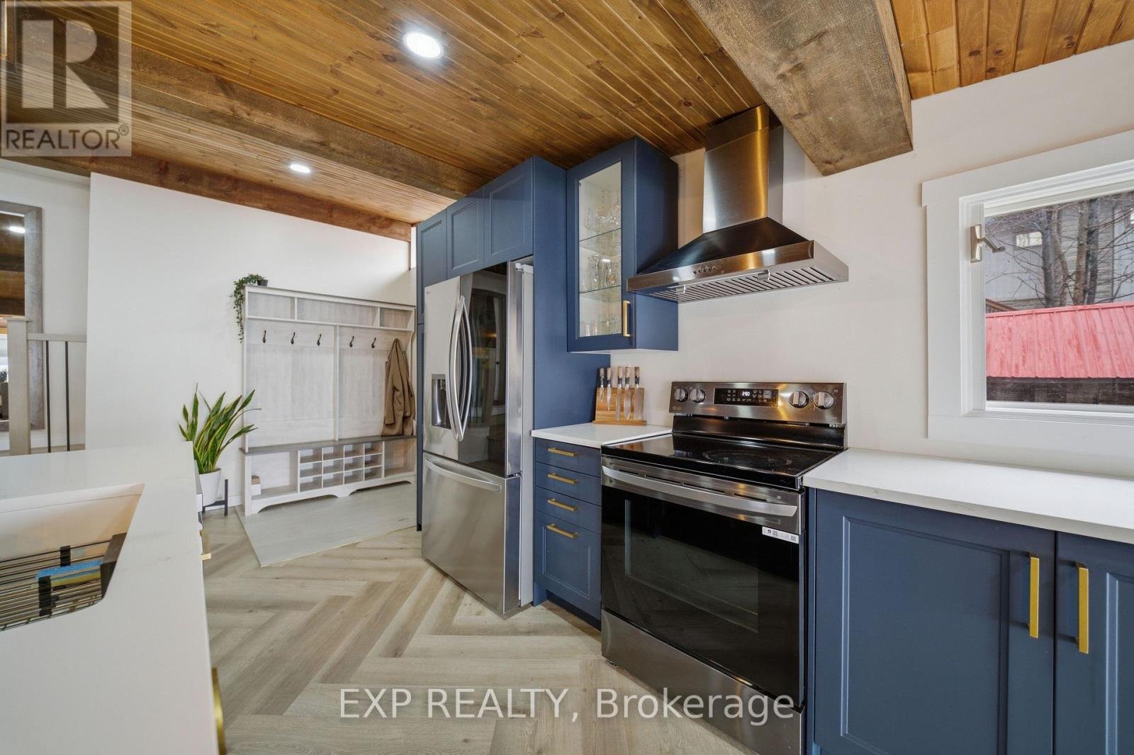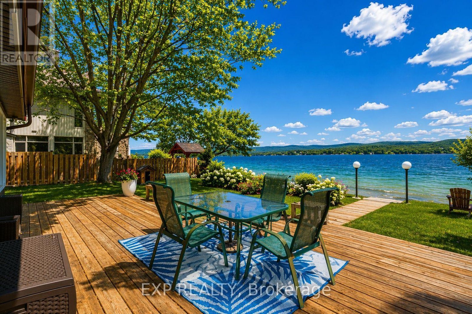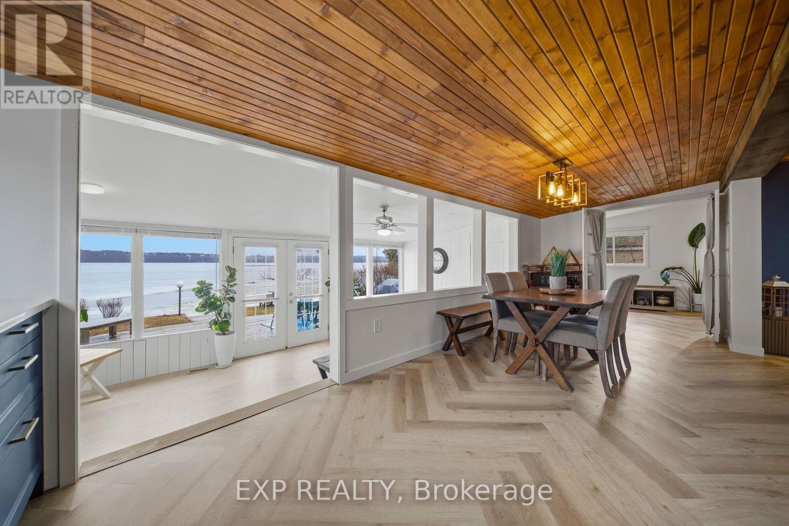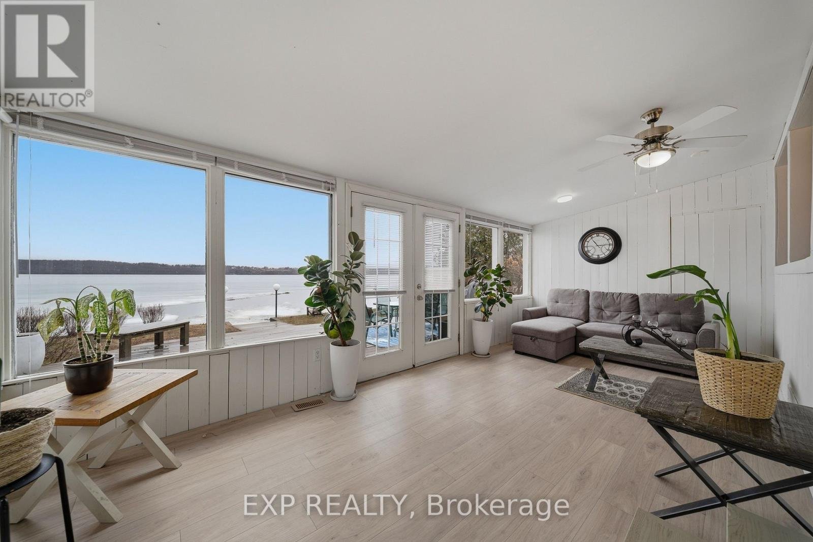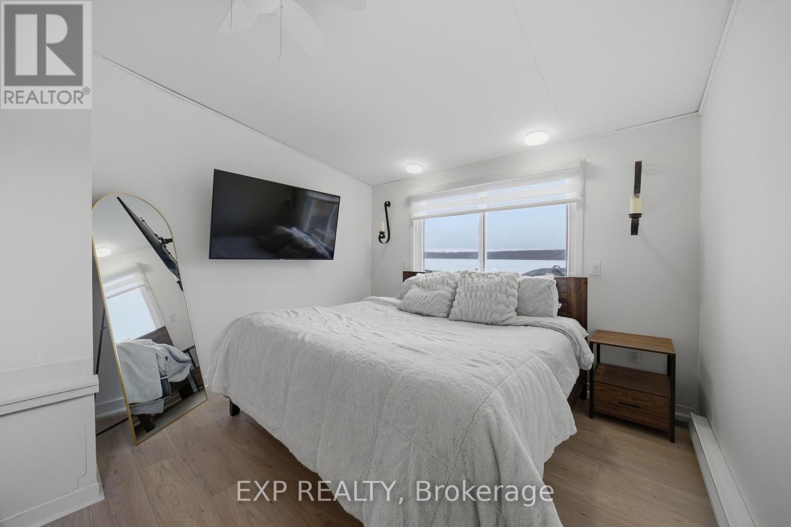 Welcome to 15 Neely Street, a rare waterfront bungalow fully renovated from top to bottom with standout upgrades and features not commonly found. Set along the water with stunning views, this property includes a professionally built retaining wall, making it one of the few insurable homes for flood protection in the area. Inside, a bright open concept main level awaits where modern design meets comfort. The redesigned layout features new flooring, a beautiful kitchen with 2025 appliances, sleek cabinetry, a spacious island, and an electric fireplace flowing into the living and dining areas, all framed by large windows overlooking the water. Warm wood ceilings add character and elevate the space. The main level offers 3 bedrooms including a newly added room, along with a fully updated bathroom completed in 2025. Major system upgrades include all new water and drain lines, a new water softener, and a new hot water tank installed in 2025. The lower level provides additional living space, a second full bathroom, and flexible use options for guests, work, or recreation. Extensive structural improvements include a lifted foundation, updated roof and trusses, and a reinforced cement foundation strip, providing long term stability and peace of mind. Outside, enjoy a private setting with a new shed built in 2025 featuring a sauna. The lot offers direct access to the shoreline, perfect for swimming, boating, or relaxing by the water. Located within the Kanata school board and just a short drive to the city, this property offers a rare combination of waterfront living, modern upgrades, and long term value.