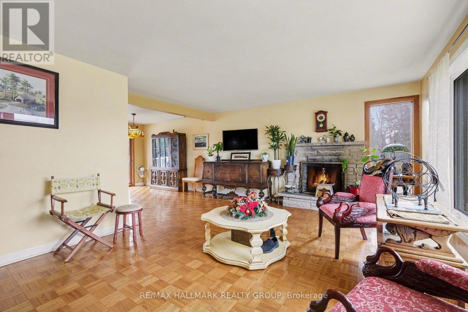 Charming 3-bedroom bungalow with attached garage set on an impressive 100' x 200' lot, offering a true country feel just minutes from the city. The bright L-shaped living and dining room features hardwood floors and a cozy fireplace, creating an inviting space for everyday living and entertaining.The lower level offers a spacious rec room, den, bathroom, and plenty of storage, providing excellent flexibility for family living or a home office. Patio doors lead to a deck overlooking the inground pool-perfect for summer enjoyment.A widened driveway provides ample parking for multiple vehicles. Conveniently located with quick access to Highway 417, making for an easy commute to downtown.
