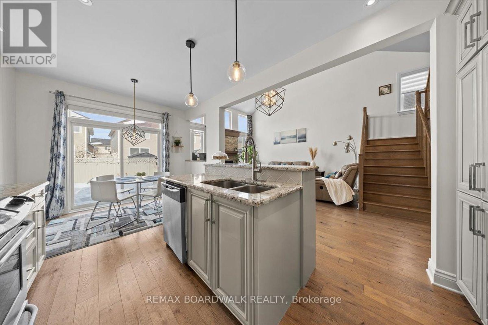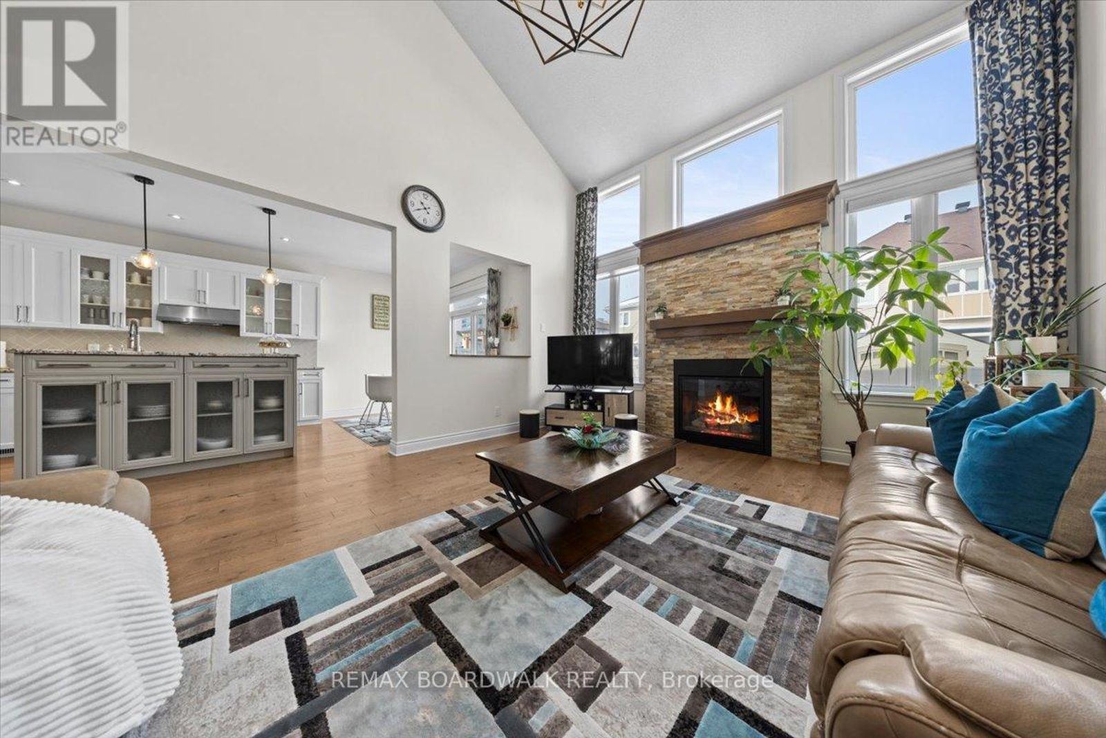 *** OPEN HOUSE SUNDAY APRIL 19 2-4PM.*** Welcome to this stunning family home offering approximately 3,000 sq ft of finished living space in Kanata. Thoughtfully designed for modern family living, this home offers generous living areas, quality finishes, and a layout that flows beautifully from room to room. The main level features rich hardwood flooring and dramatic two-storey vaulted ceilings in the living room, filled with natural light from expansive windows. A gas fireplace anchors the space and creates a warm, inviting setting for relaxing evenings or gathering with friends and family. At the heart of the home is the beautifully renovated kitchen, featuring granite countertops, custom cabinetry, stainless steel appliances, a stylish backsplash, and a large centre island. The kitchen overlooks the dining area, creating an ideal space for everyday living and entertaining. The main floor also includes a large office (or bedroom), perfect for those working from home. Upstairs you will find generously sized bedrooms, including a spacious primary suite with vaulted ceilings, a walk-in closet, and a private ensuite with glass shower and relaxing soaker tub. The fully finished basement adds exceptional living space, including a dedicated home theatre area with projector and screen, a large recreation space, gym area, an additional bedroom, and a full bathroom, offering flexibility for guests, teenagers, or extended family. Step outside to enjoy the private fully fenced backyard, designed for low-maintenance living with full interlock and a storage shed, creating a beautiful space for outdoor entertaining and family gatherings. Interlocking has also been added to the front of the home for added curb appeal, and permanent exterior holiday lighting installed by Celebright provides both convenience and seasonal charm. Within walking distance to local schools and a future neighbourhood park, and just minutes from shopping, dining, and everyday amenities.