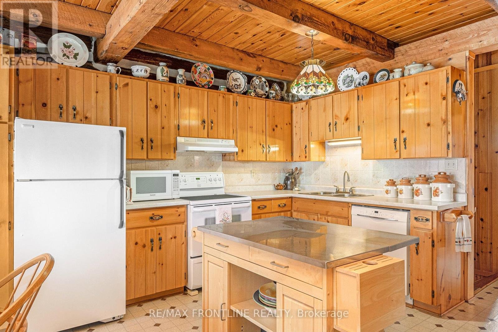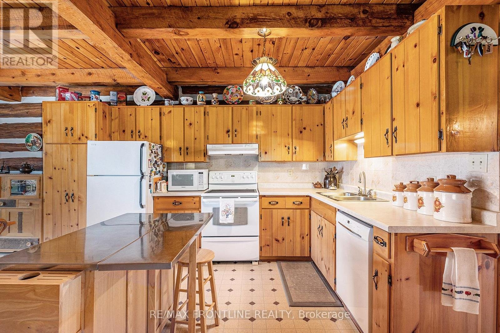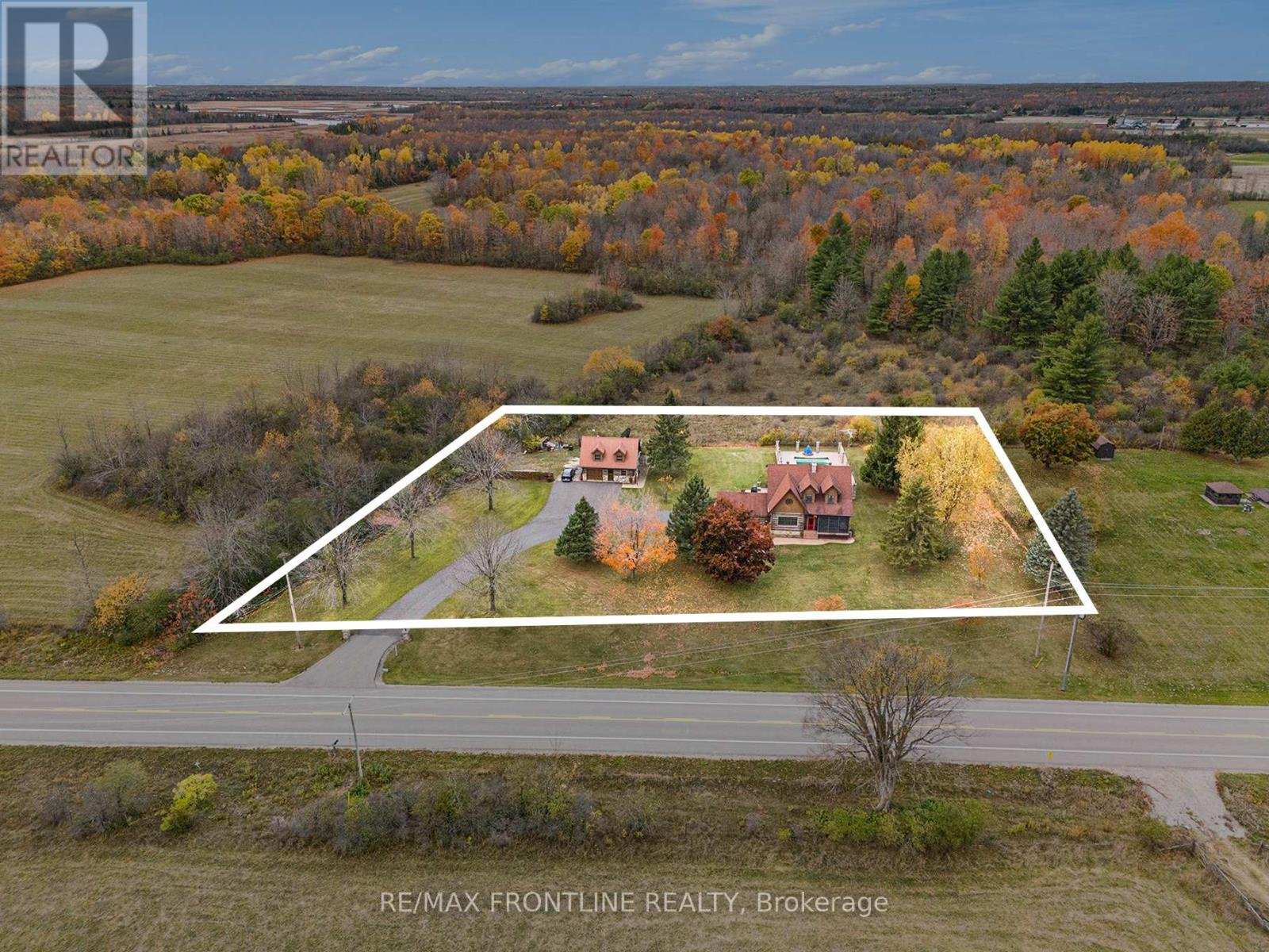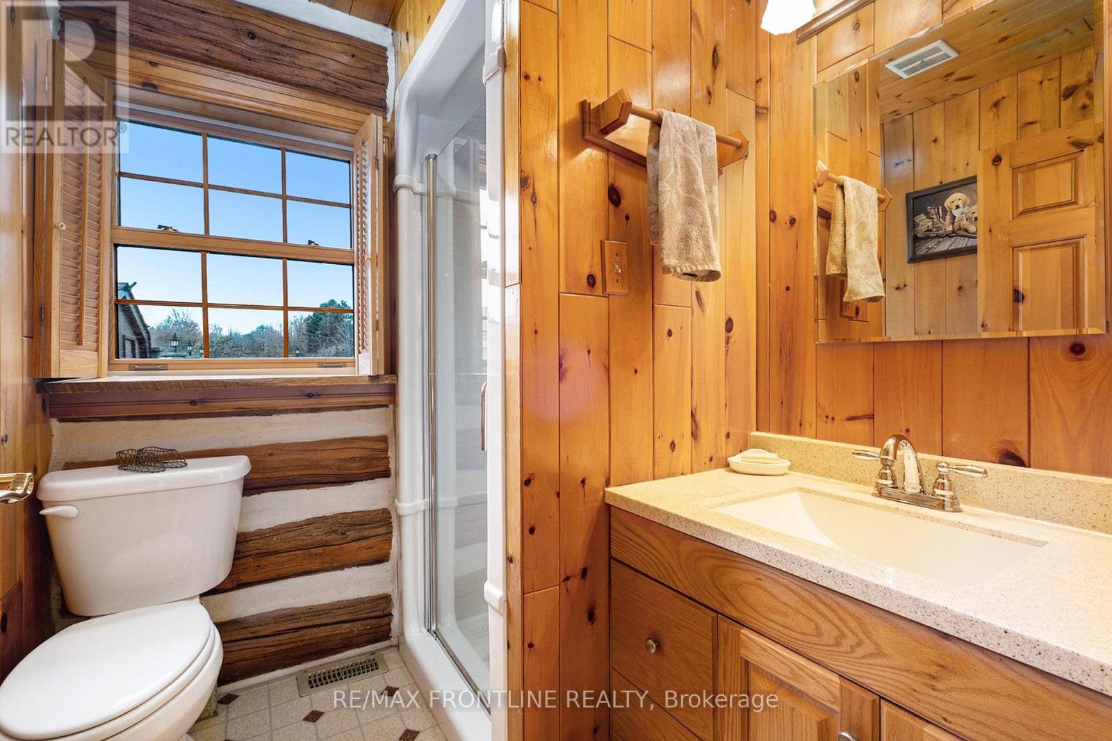 Welcome to one of the area's most admired homes. This stunning, custom-built log residence is a true showpiece, offering timeless character, exceptional craftsmanship, and unmatched charm throughout. Mins. to Upper Beveridges locks boat launch.Featuring 3 spacious bedrooms and 2 charming bathrooms, this home is defined by its incredible attention to detail, highlighted by exquisite, hand-crafted stonework that creates a warm and inviting atmosphere unlike any other. Designed for both everyday living and unforgettable entertaining, the property offers a seamless blend of indoor comfort and outdoor luxury. Enjoy your own private retreat with an in-ground salt water pool, a hot tub, dry or steam sauna, and a sun-filled 3-season solarium-perfect for relaxing in every season. Set on a beautifully maintained lot with a paved laneway, the property also includes a detached garage with exciting future development potential above, ideal for a guest suite, studio, or additional living space.Located in a highly desirable area, this is a rare opportunity to own a truly special home that is both well-known and deeply admired within the community. A one-of-a-kind property where craftsmanship, character, and lifestyle come together. This home is a must see!!