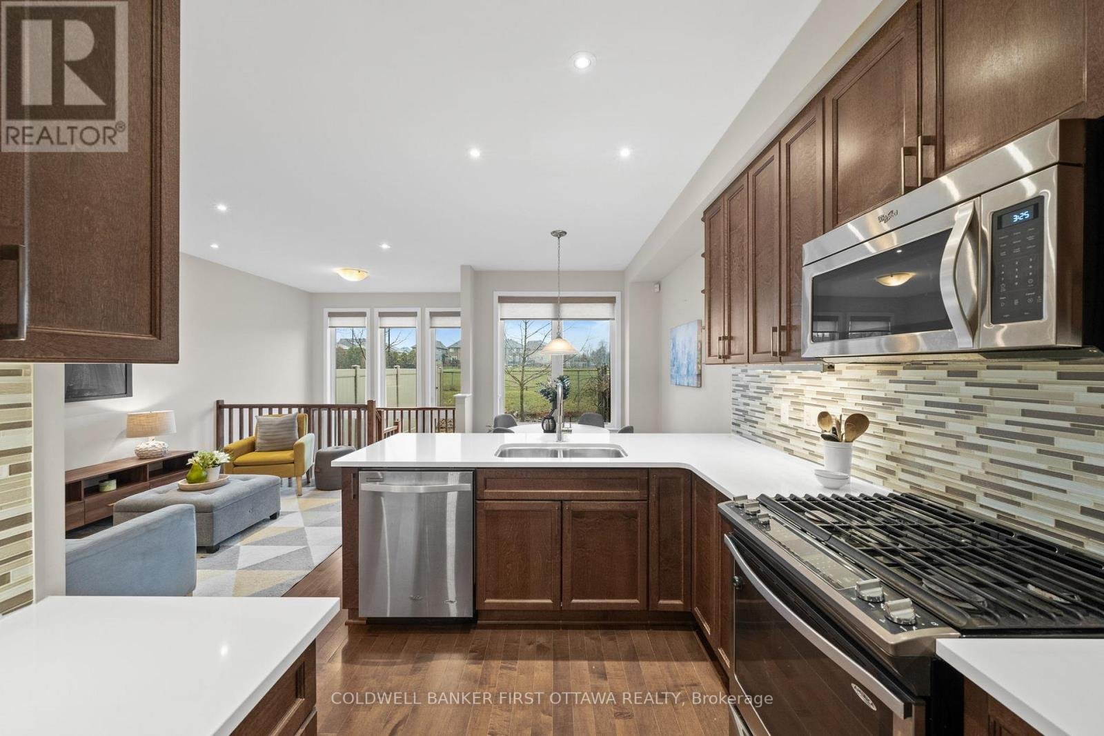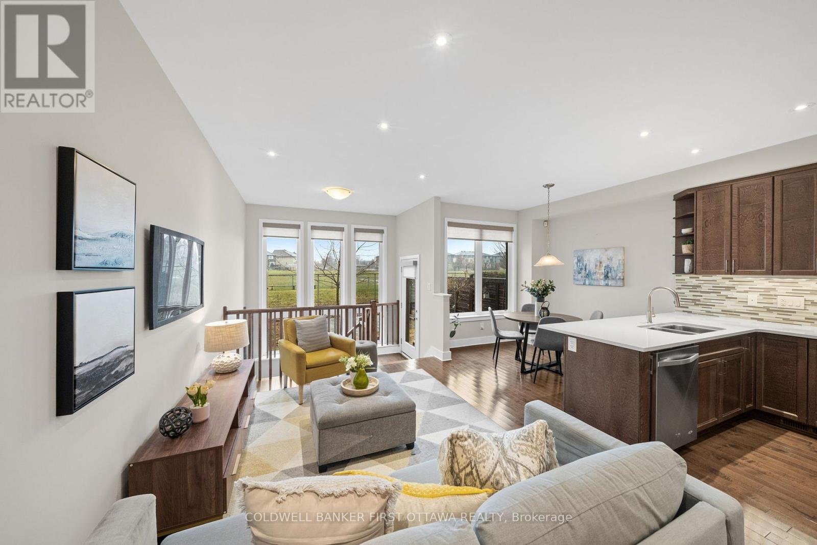 **OPEN HOUSE SUNDAY APRIL 19 2-4PM** DEFINITELY NOT YOUR AVERAGE TOWNHOME! Incomparable quality in this 3 bed, 3 bath Tartan built townhome in a central Barrhaven location. A rare floorplan offering separate living & dining rooms plus a breakfast area all on the main floor. The sunken foyer leads to bright open living areas all dressed in hardwood floors and featuring a wall of windows at the rear of the home. The kitchen provides plenty of space for the chef to work plus a convenient breakfast bar for additional seating. Upstairs, find 3 large bedrooms and 2 full bathrooms including a primary suite with hardwood floors, his & her closets and a spacious ensuite. The fully finished lower level features an open staircase, cozy gas fireplace and large family room. A fully fenced yard, with patio and NO REAR NEIGHBORS sets this home apart! Ideal location close to schools, parks and the 416. Don't settle for less!