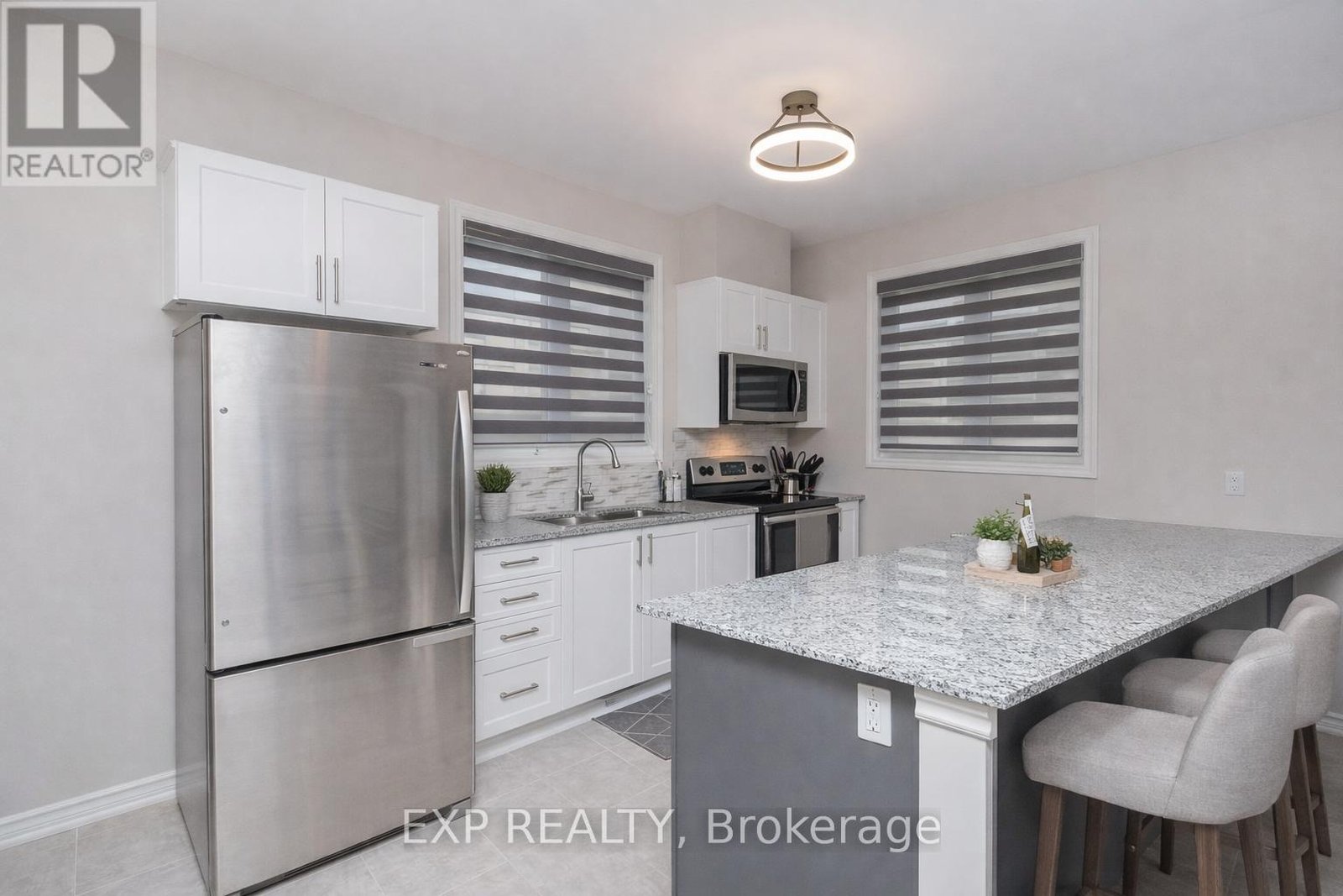 Welcome to Loury Row in the heart of Orleans Village, where modern design, quality craftsmanship, and thoughtful upgrades come together in this 2020-built, 3-bedroom home offering 3 full bathrooms plus a convenient main-floor powder room. Designed for both comfort and functionality, the open-concept main level features a well-appointed kitchen with stainless steel appliances, granite countertops, upgraded ceramic tile backsplash, breakfast bar, and direct access to the backyard, making it ideal for everyday living and entertaining. Hardwood flooring and a hardwood staircase, paired with 9' ceilings, large windows, and custom modern window blinds, create a bright and inviting atmosphere throughout the living and dining areas. The second level offers three generously sized bedrooms, a convenient upper-level laundry room, and two full bathrooms, including a spacious primary bedroom with ensuite privileges. The fully finished lower level adds valuable living space with a large family room and an additional full bathroom, offering excellent flexibility for a home office, guest suite, gym, or recreation area. Finished in modern, neutral tones and upgraded directly through the builder, this home includes approximately $40,000 in upgrades, including a full basement bathroom, upgraded upstairs laundry room, hardwood flooring and staircase throughout the main and second floors, enhanced backsplash, and upgraded light fixtures throughout. Ideally located close to schools, parks, shopping, transit, and all amenities Orleans has to offer, this move-in-ready home delivers comfort, style, and long-term value for today's discerning buyer. Currently Tenanted Month to Month @ 2700.00/month, rent increased to $3000.00 July 1st. N12 for 60 Days Buyers Notice for Vacant Possession. Offers to be presented Sunday April 25th @ 5:00pm.