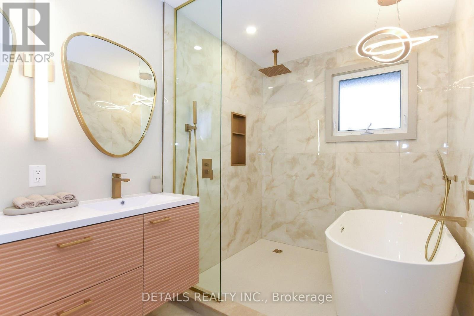 Welcome to your dream home in sought-after Alta Vista/Guildwood Estates - a beautifully reimagined bungalow where timeless mid-century modern design meets today's luxury living. This fully renovated, high-end residence offers an exceptional blend of style, comfort, and functionality. The sun-filled main level features a stunning open-concept layout, seamlessly connecting the living, dining, and kitchen spaces-perfect for both everyday living and entertaining. At the heart of the home is a true chef's kitchen, complete with an impressive double wide quartz island, premium stainless steel appliances, abundant custom cabinetry, and thoughtfully integrated storage throughout. Step directly out to a large private deck off the kitchen, ideal for outdoor dining and summer gatherings. The main floor boasts three spacious bedrooms, including a serene primary retreat with its own private ensuite powder room. The show-stopping 5-piece main bathroom is designed for relaxation, featuring a luxurious wet-room style shower and a deep soaker tub-your personal spa at home. The fully finished lower level expands your living space with an oversized fourth bedroom, a full bathroom, a large family room, and a dedicated laundry area. A striking feature wall with built-in storage and a sleek electric fireplace adds warmth and character, making this level ideal for guests, teens, or multi-generational living. Situated on a private, fully hedged corner lot, this property offers great outdoor space and curb appeal. A detached double car garage combined with a generous driveway provides parking for up to 6 vehicles, a rare and valuable feature in this established neighbourhood. Set in one of Ottawa's most desirable communities, close to parks, schools, hospitals, and amenities, this turnkey home offers the perfect balance of modern elegance and everyday practicality. A rare opportunity to own a thoughtfully designed, move-in ready home where every detail has been elevated.
