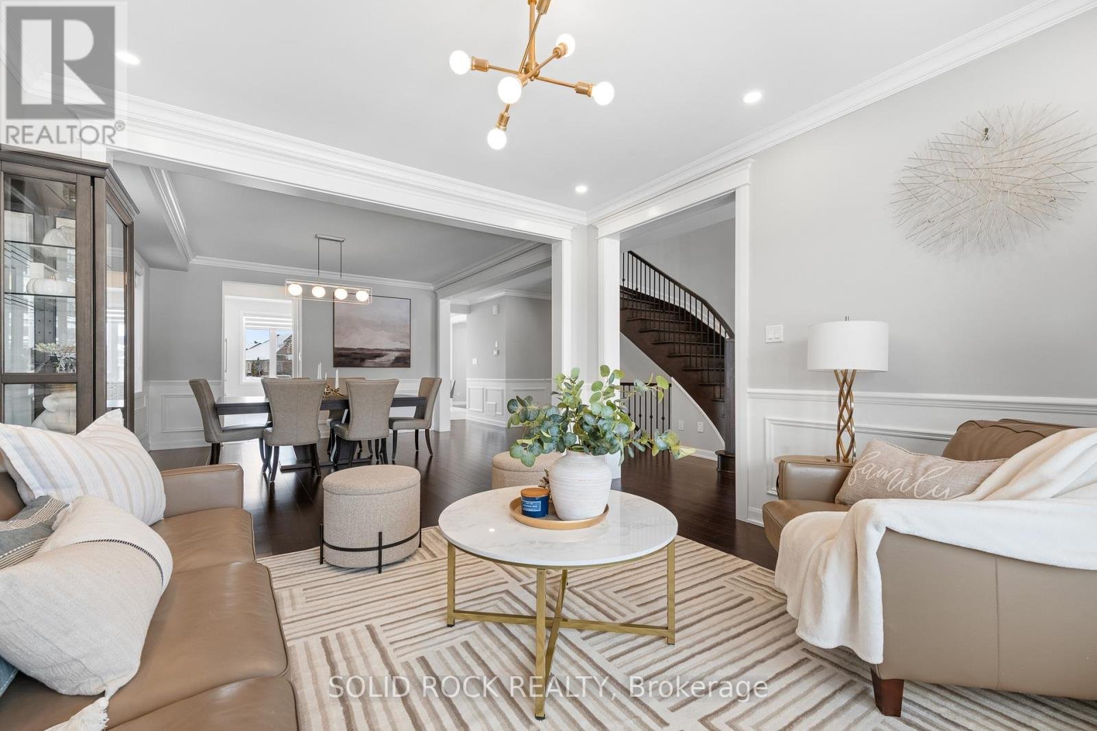 RARE MULTI-GENERATIONAL WALKOUT HOME WITH TWO KITCHENS BACKING ONTO A RAVINE IN MANOTICK'S MAHOGANY COMMUNITY! This impressive Minto Redwood model offers approximately 4,660 sq. ft. of fully finished living space, including 3,550 sq. ft. above grade and a professionally finished 1,110 sq. ft. WALKOUT LOWER LEVEL IN-LAW SUITE (2024). Designed for modern family living, the main level features 10-FT CEILINGS in the kitchen and family room, creating a bright, open layout ideal for everyday living and entertaining. Elegant formal living and dining rooms add sophistication, while the upgraded chef's kitchen anchors the heart of the home. A main-floor bedroom or office with a full bath offers excellent flexibility for guests or main-level living.Upstairs, the primary suite features a spa-inspired ensuite and generous closet space, while additional bedrooms include walk-in closets, a shared sitting area, and a spacious laundry room with walk-in linen storage. The fully finished WALKOUT LOWER LEVEL is designed as a self-contained in-law suite with its own kitchen, private entrance, living areas, bedroom, full bath, and separate laundry, offering true independent living.Set on a premium RAVINE LOT, the home also includes upgraded exterior brickwork and an EV charging outlet. A rare opportunity to enjoy luxury, space, and MULTI-GENERATIONAL flexibility in one of Manotick's most sought-after communities.
