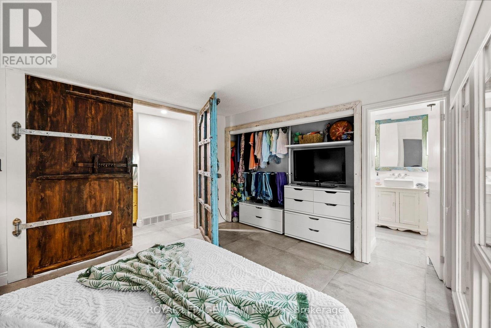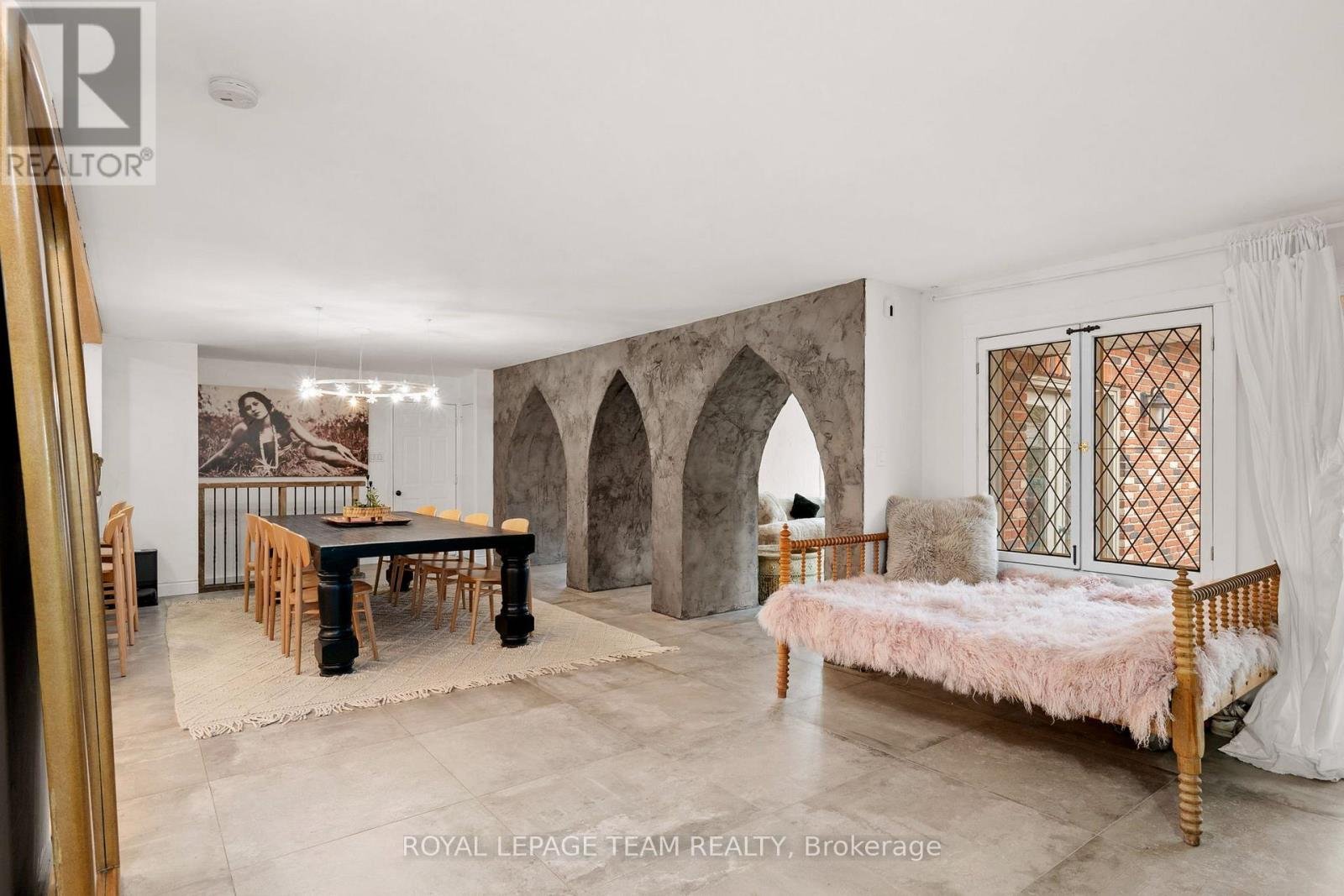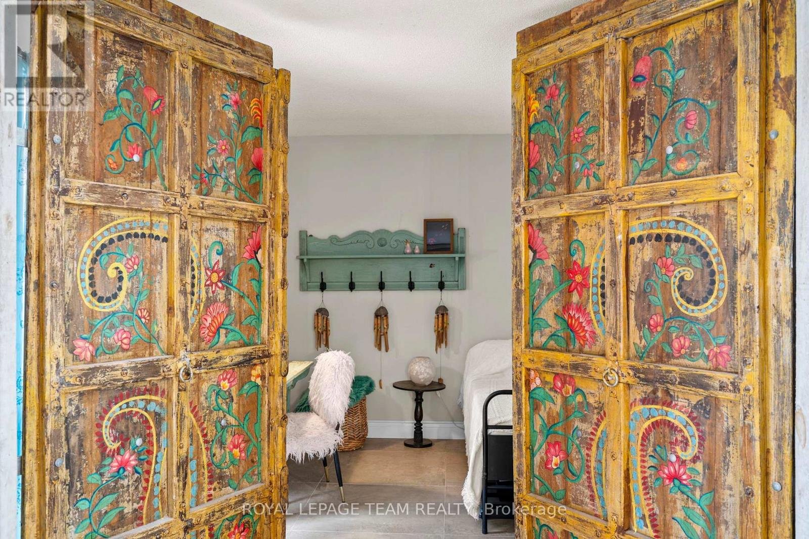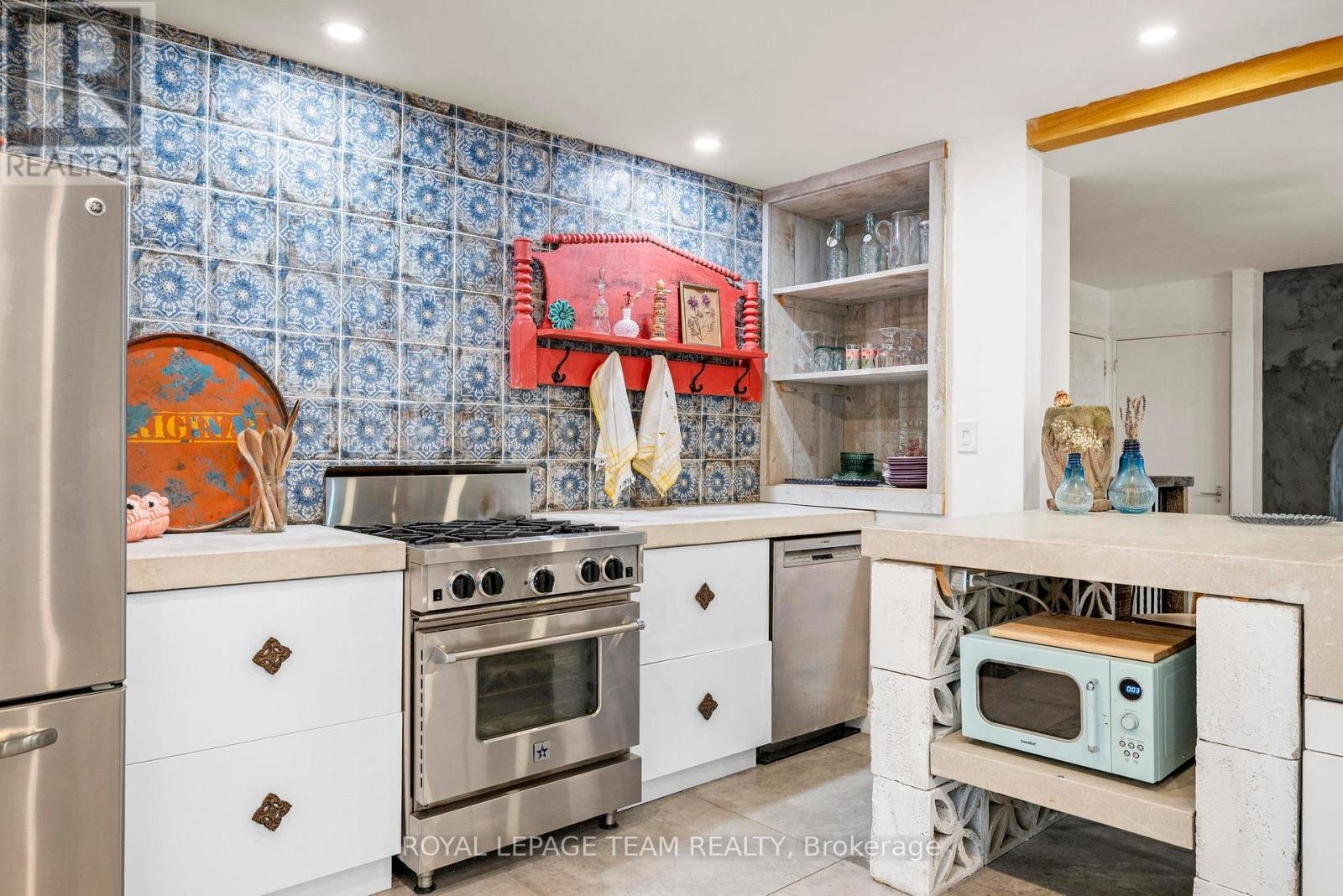 Experience a globally-inspired design with this extraordinary 1800 sq ft, 3-bedroom bungalow, where bohemian elegance meets modern architectural flair. This home is a curated sanctuary, featuring premium finishes including imported French porcelain ceramic flooring that flows seamlessly through the expansive, open-concept layout. Step in to the heart of the home; a sun-drenched great room addition (2010) anchored by a soaring floor-to-ceiling stone gas fireplace and cathedral ceiling with exposed timber beam. Outside this space, the private courtyard patio offers an intimate escape, featuring rugged flagstone and raised garden beds, perfect for morning coffee or relaxation in nature. Dramatic, hand-textured grey archways create a stunning transition from the great room into the formal dining space and gourmet kitchen, which centers around a massive concrete-topped island with intricate geometric breeze-block detailing. Custom Mediterranean-blue cabinetry and a professional-grade stainless steel range make this a true chef's retreat. Dine outside on the deck while your animal companions frolick in the fully fenced back yard. Both main floor bedrooms offer a world-class aesthetic, headlined by breathtaking hand-carved palace doors imported from India. In the primary suite, complete with 2 pce powder room, these masterpieces serve as a functional work of art, opening to a serene space filled with natural light. Expansive windows throughout the home frame the lush, mature greenery outside. The partially finished lower level includes a spacious laundry/storage, and a 3rd bedroom. A garage entrance provides direct basement access, offering potential for a future in-law suite. Book your showing today and step inside a home that truly defies the ordinary.