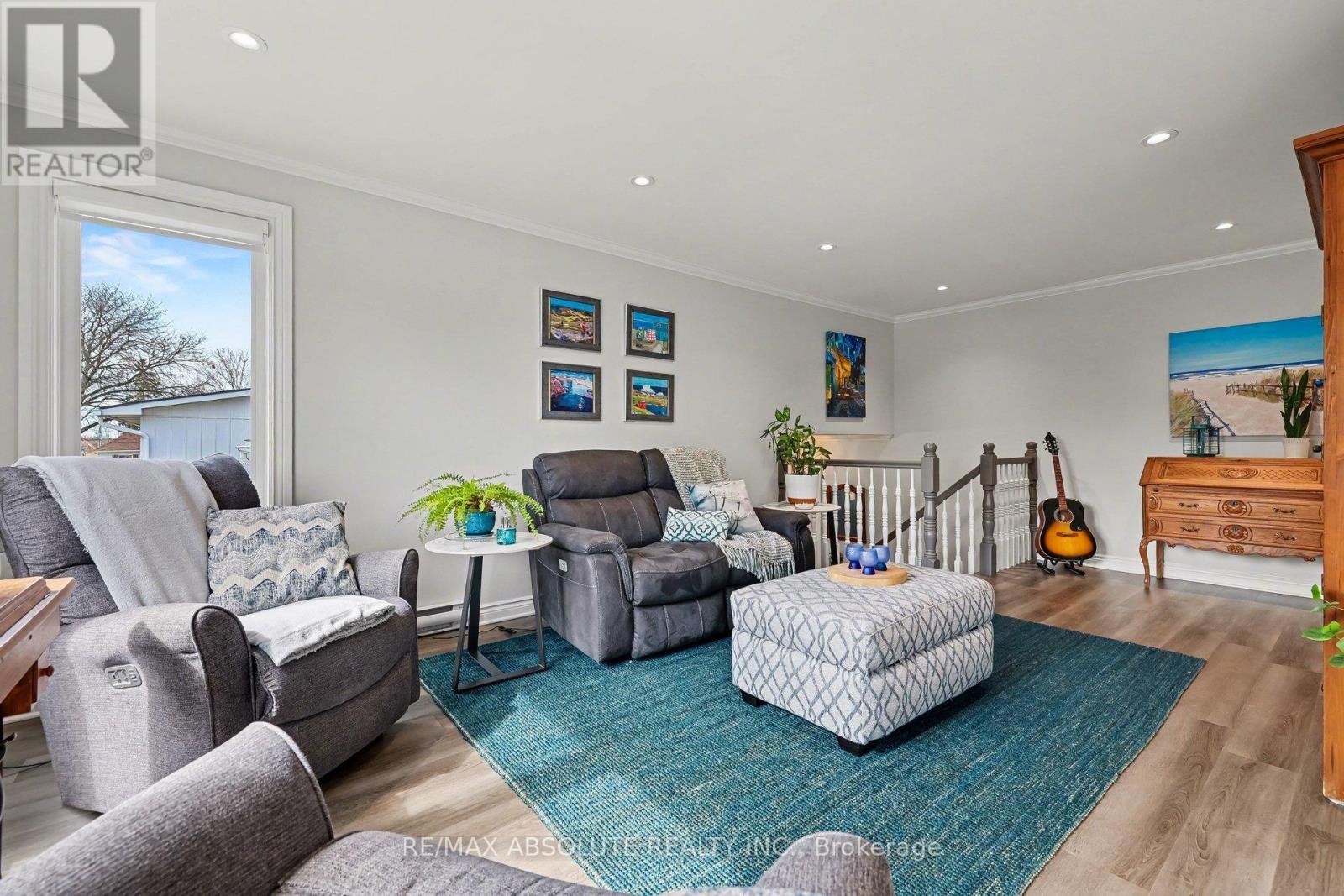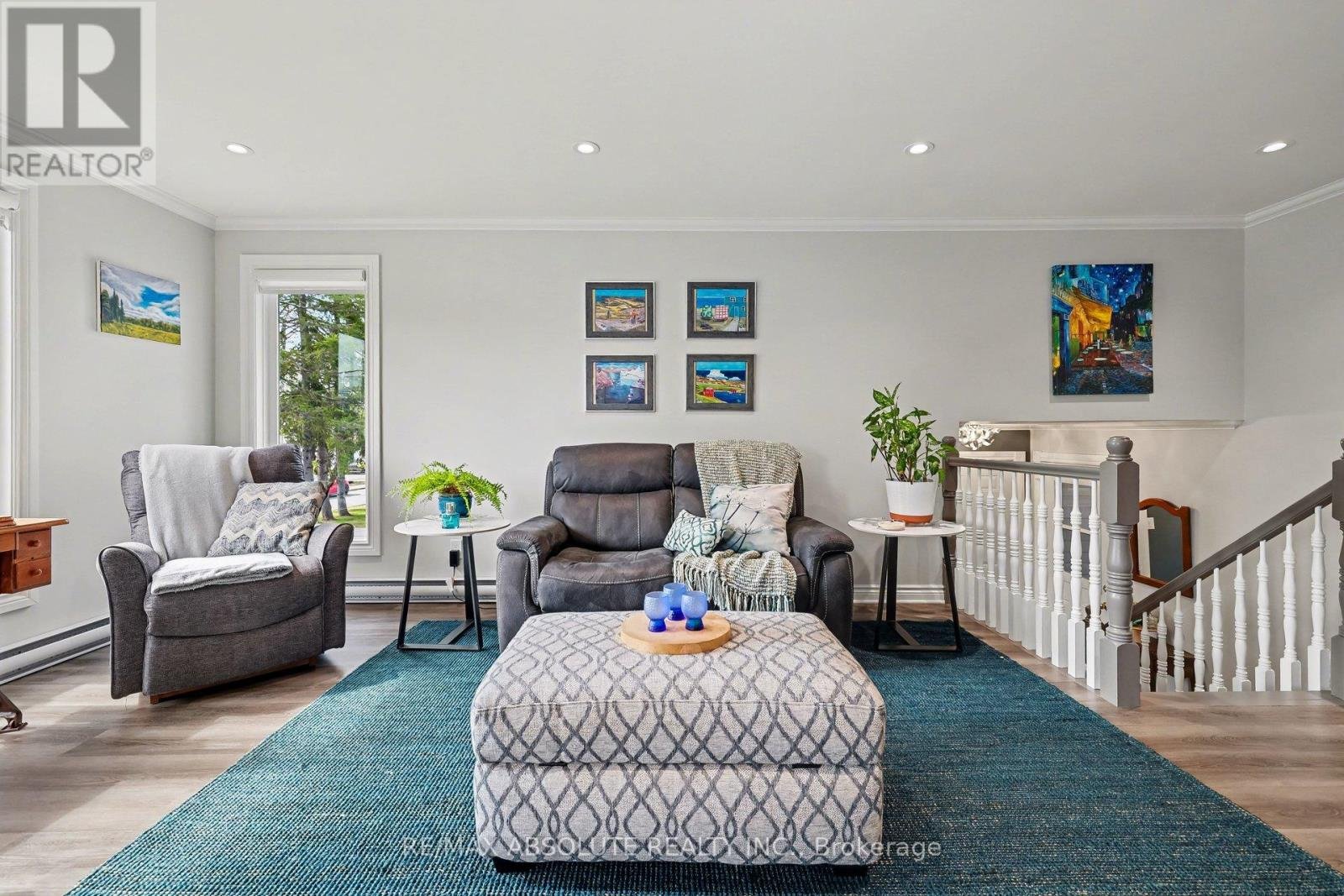 Stunningly renovated high ranch on a quiet dead-end street in sought-after Almonte! This move-in ready home offers the perfect blend of modern upgrades, open-concept living, and thoughtful accessibility features.The 2024 renovated main level showcases a bright, open layout anchored by a beautifully designed kitchen with quartz countertops, custom cabinetry, soft-close drawers, pantry, pull-out lazy Susan, and a full suite of high-end appliances including induction cooktop, wall oven, microwave & dishwasher. The space is finished with crown moulding, new flooring, 20+ pot lights, and custom remote-controlled blinds, creating a warm and inviting atmosphere.Major updates include a 200 AMP electrical panel (2023), updated wiring, and two heat pumps for efficient heating and cooling. Exterior improvements feature a full renovation (2024) with new insulation, vapour barrier & siding, plus roof (2015), garage door & windows (2021), and rebuilt deck with new railings (2024).Both bathrooms have been upgraded, including an upper bath with heated floors and zero-threshold shower, while the lower level offers a fully renovated bath with tub, glass doors & modern finishes. High-efficiency toilets on both levels.Additional features include main floor laundry, custom storage cabinetry, new lighting & ceiling fans in all bedrooms, fresh paint (2024), and accessibility elements such as handrails and comfort-height features.Situated on a generous 59' x 137' lot, within walking distance to schools, parks, grocery store & library, and close to the hospital, arena & Mississippi River. Convenient commute to Carling Campus (37 km) and Dwyer Hill (22 km).